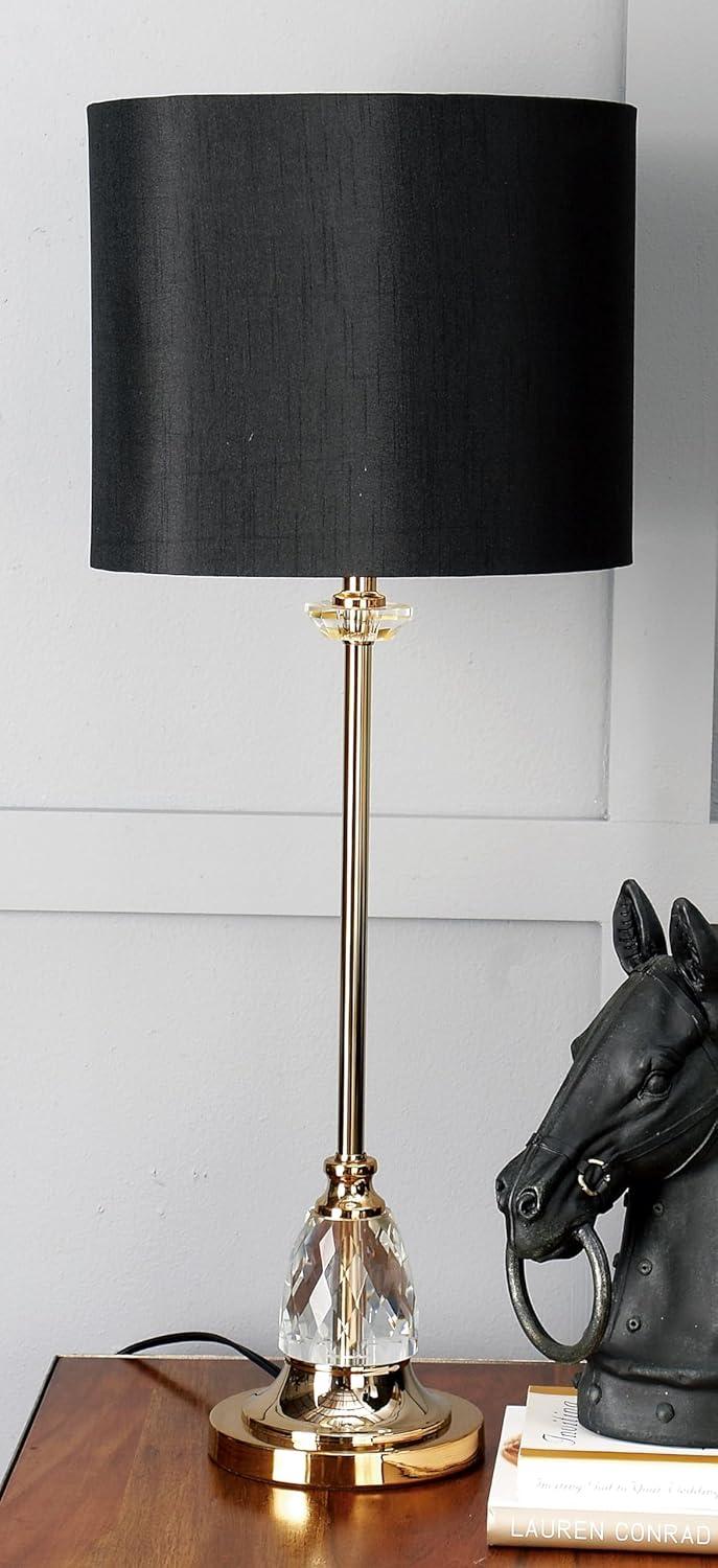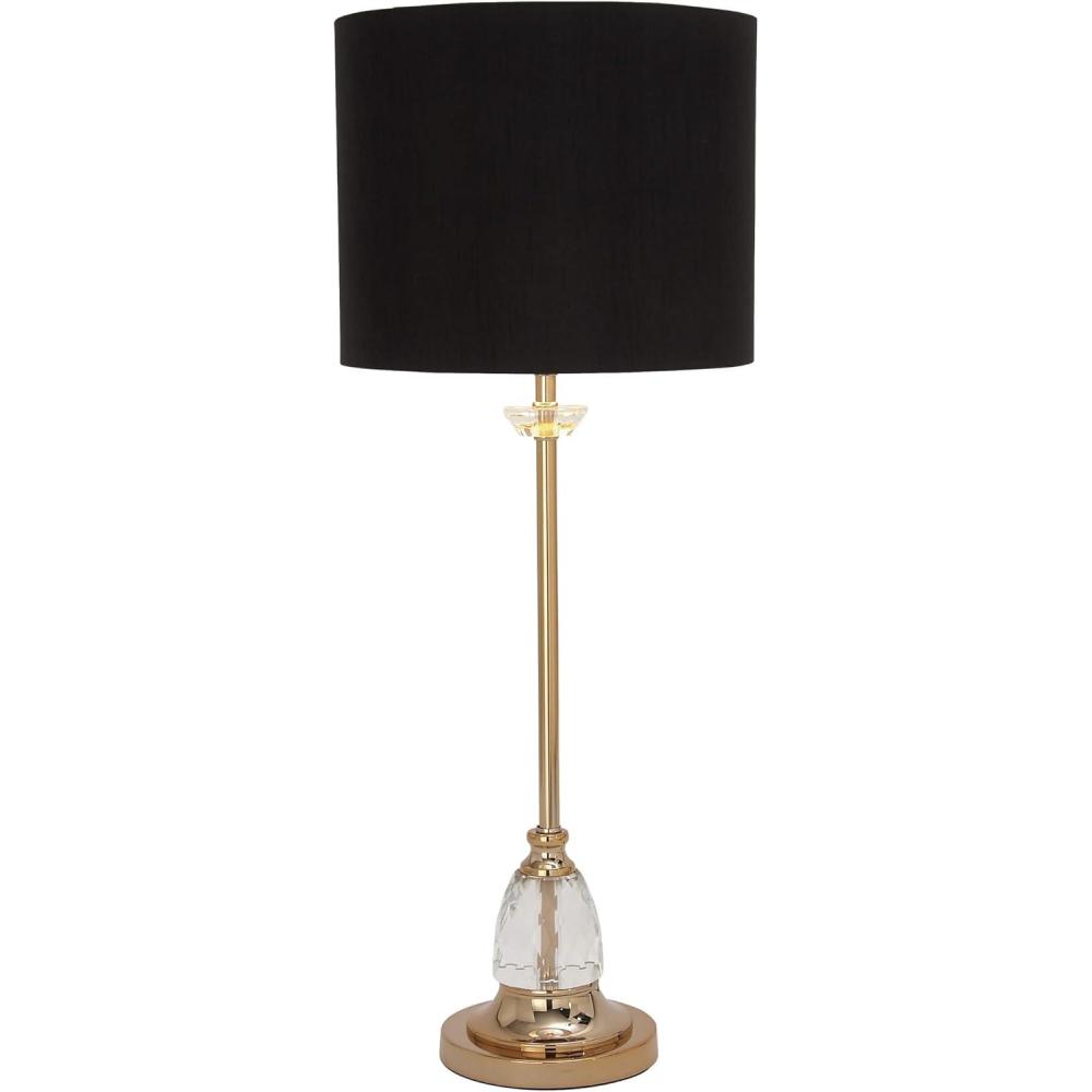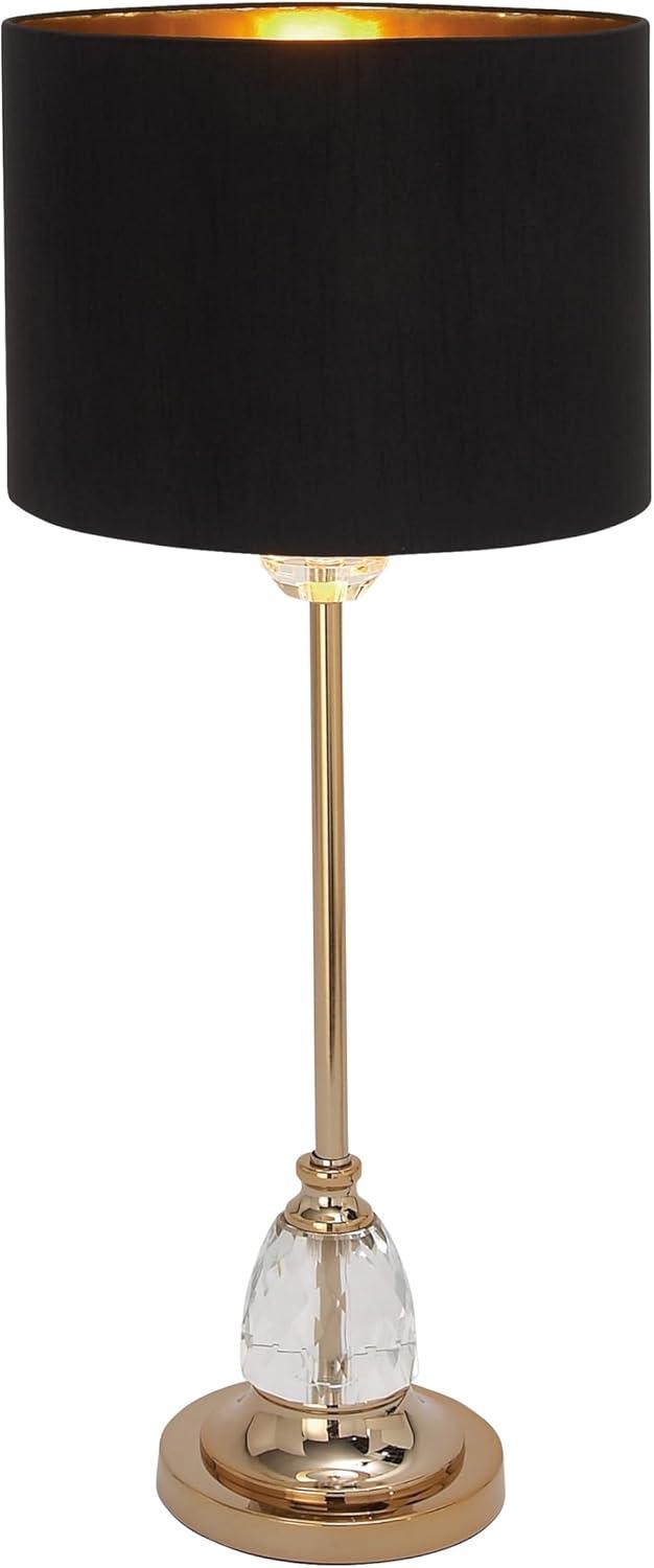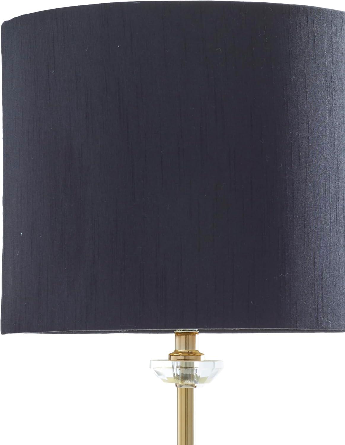 A practical yet stylish upgrade that instantly elevate the look of your room. This eye catching lamp makes a playful addition to your surface space and beautifully illuminate its surrounding area. Style this accent lamp on a console table in the living room for additional lighting, or in your contemporary home office to brighten the space . Requires 1 60W Type A E26/Medium (Standard) bulb. This item ships in 1 carton. Comes with a 62″ cord length. Suitable for indoor use only. This item ships fully assembled in one piece. Buffet lamp comes with a black drum shaped shade that measures 12 x 12 x 10 inches. Includes a rotary switch. This is a single black colored table lamp. Glam style.