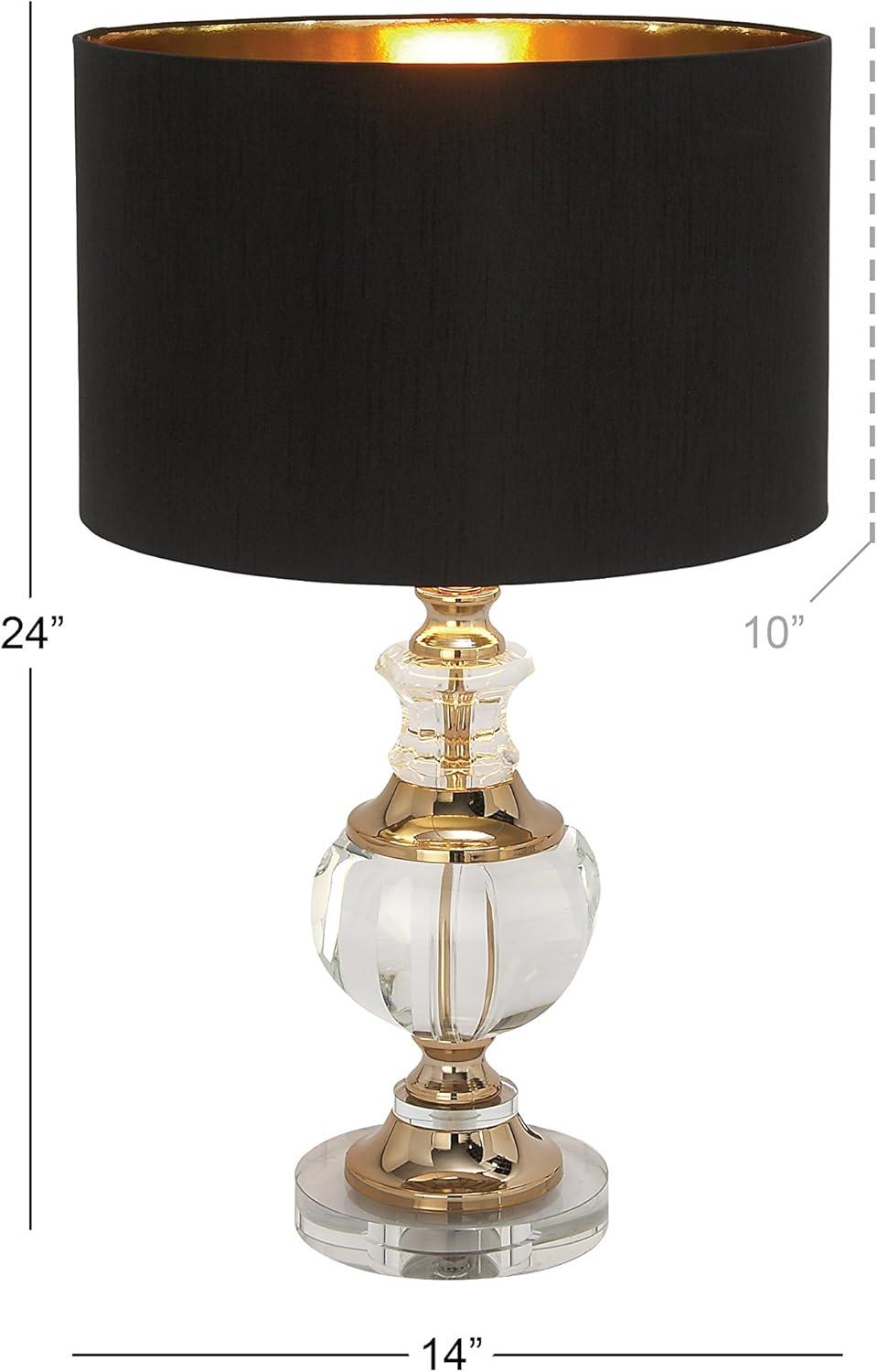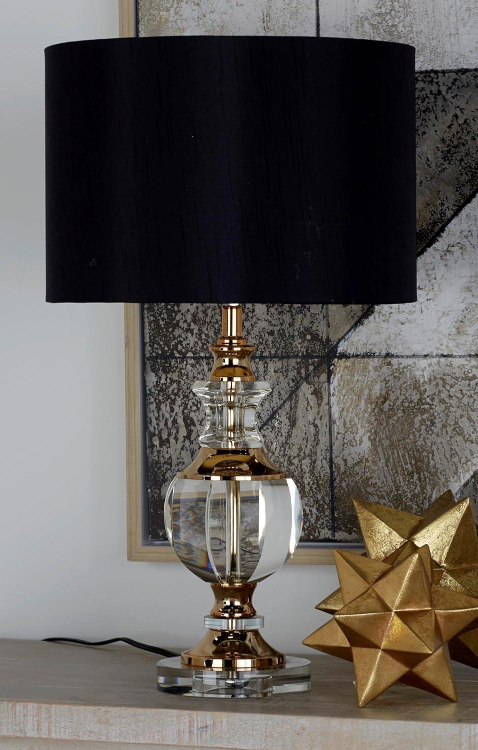 Deco 79 Metal Room Buffet Lamp Table Lamp with Black Shade and Crystal Accent, Lamp 12" x 12" x 31", Gold(14" x 14" x 24")