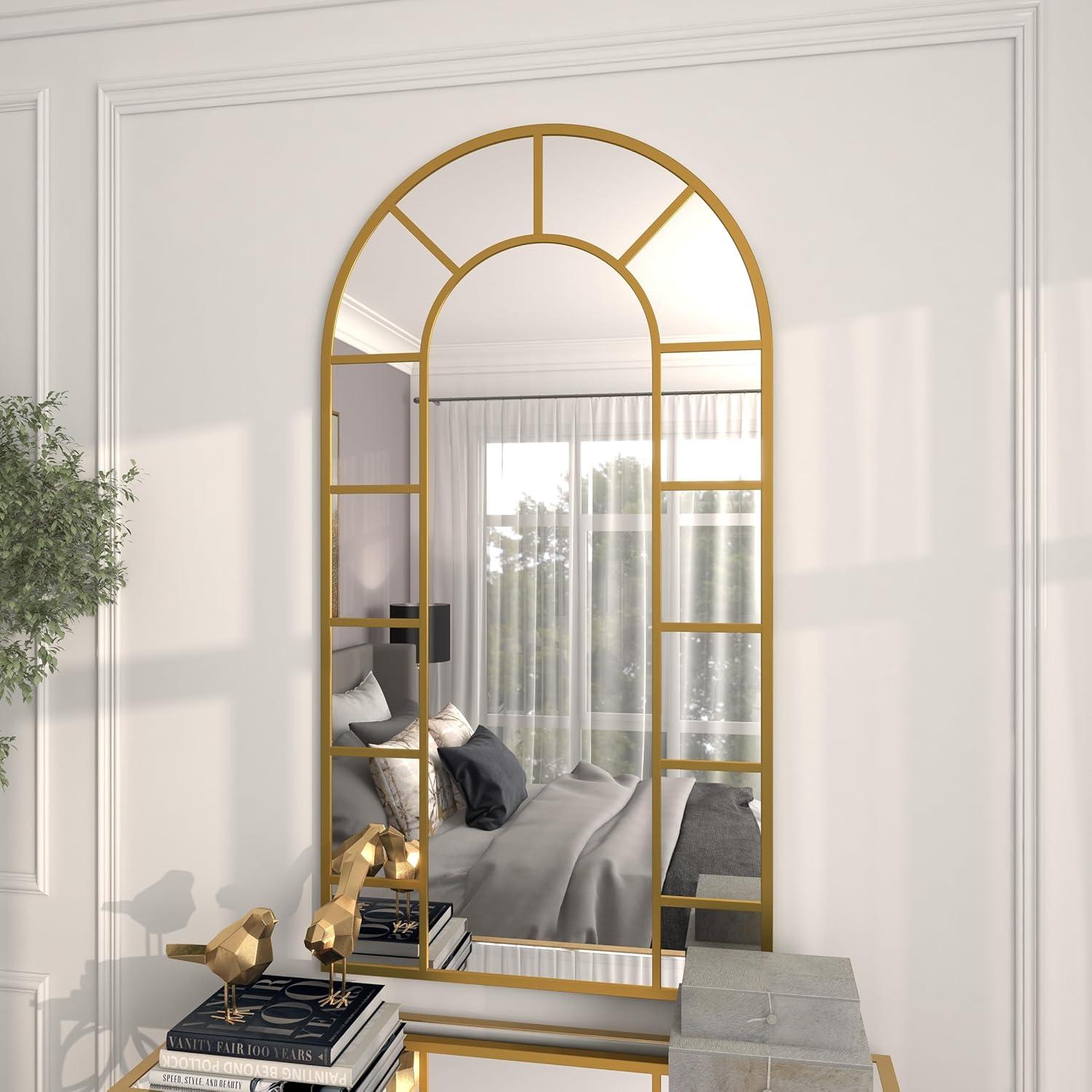 ARCHED ACCENT WALL MIRROR: Features an oversized arched crown shape for a sophisticated window look