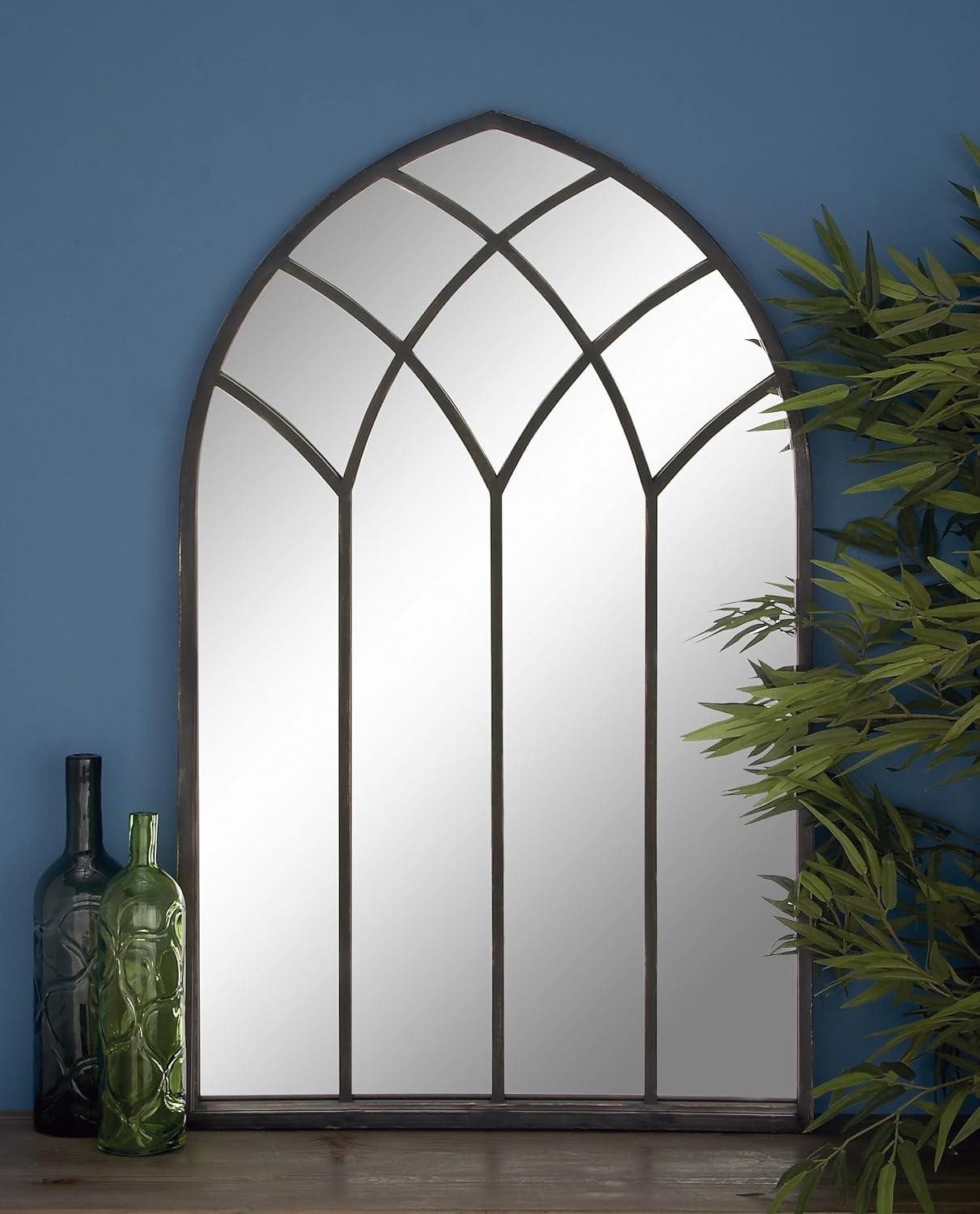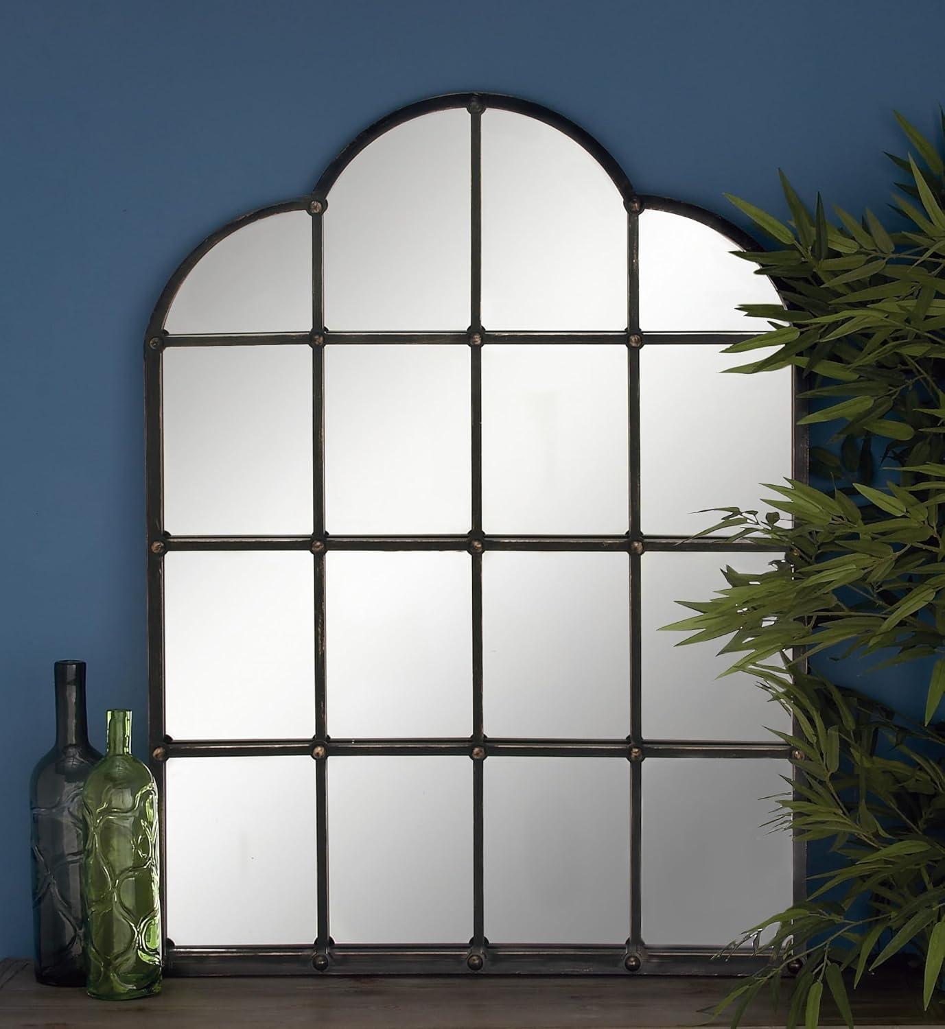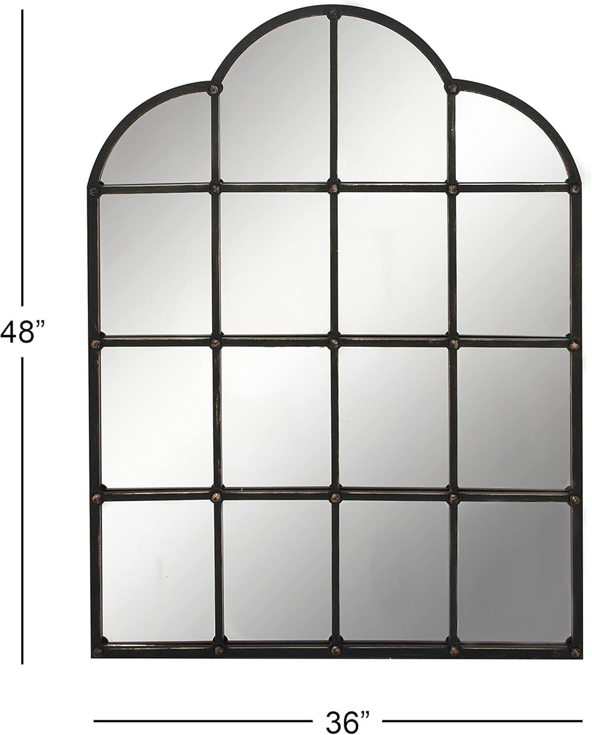 Deco 79 Metal Room Wall Mirror Window Pane Inspired Grid Entryway Mirror, Wall Mounted Mirror 56" x 1" x 44", Brown(Black)