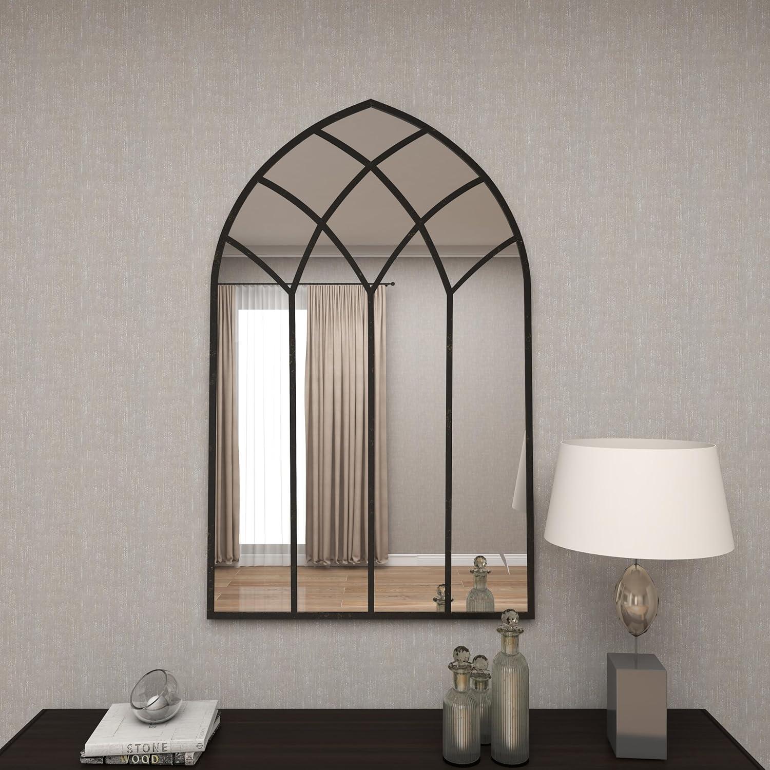 LARGE SIZE MIRROR FOR WALL DÉCOR: The brown metal wall mirror measures 56L x 1.25W x 44.25H inches, and weighs 53.50 lbs