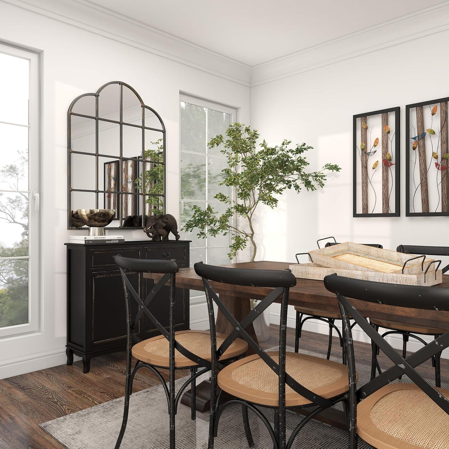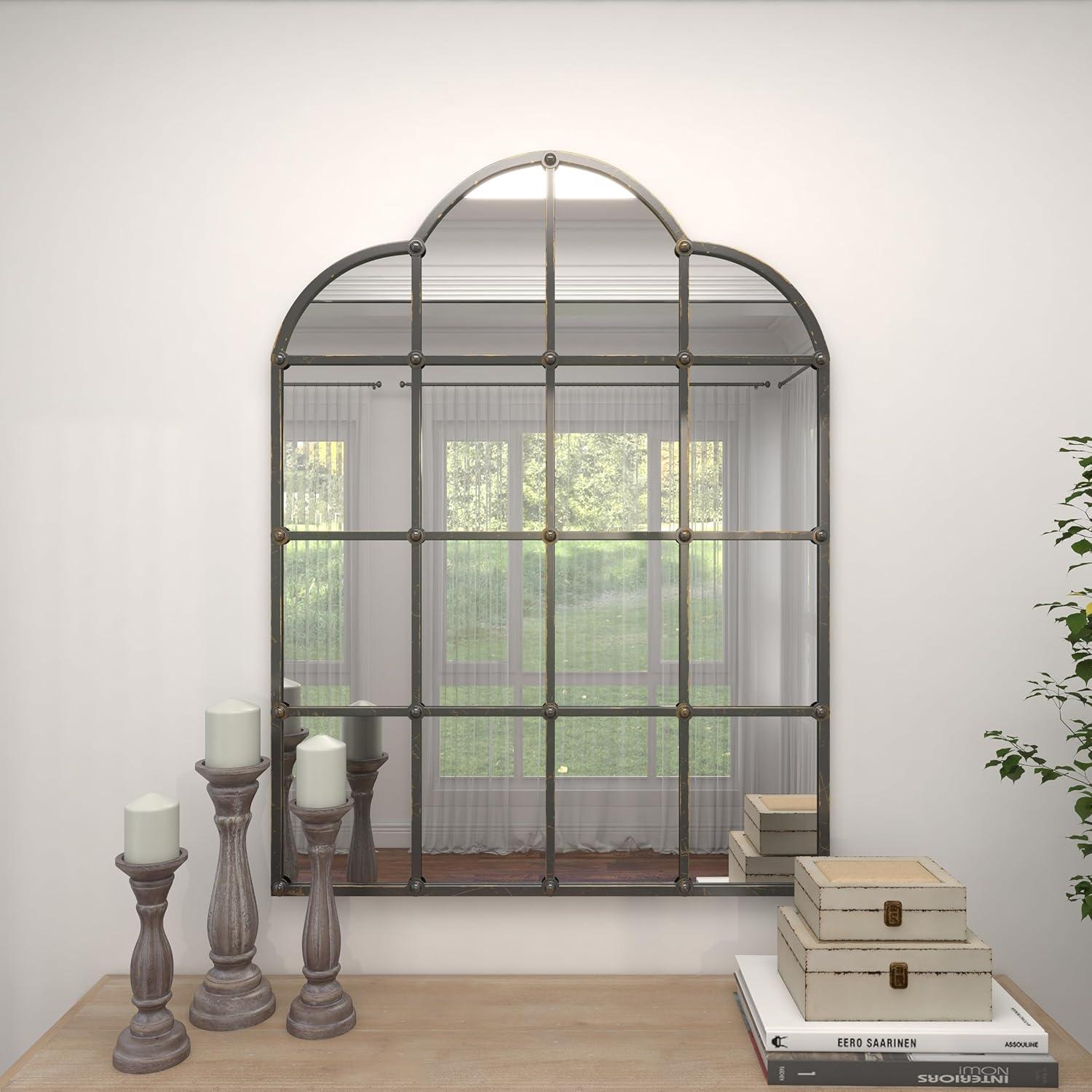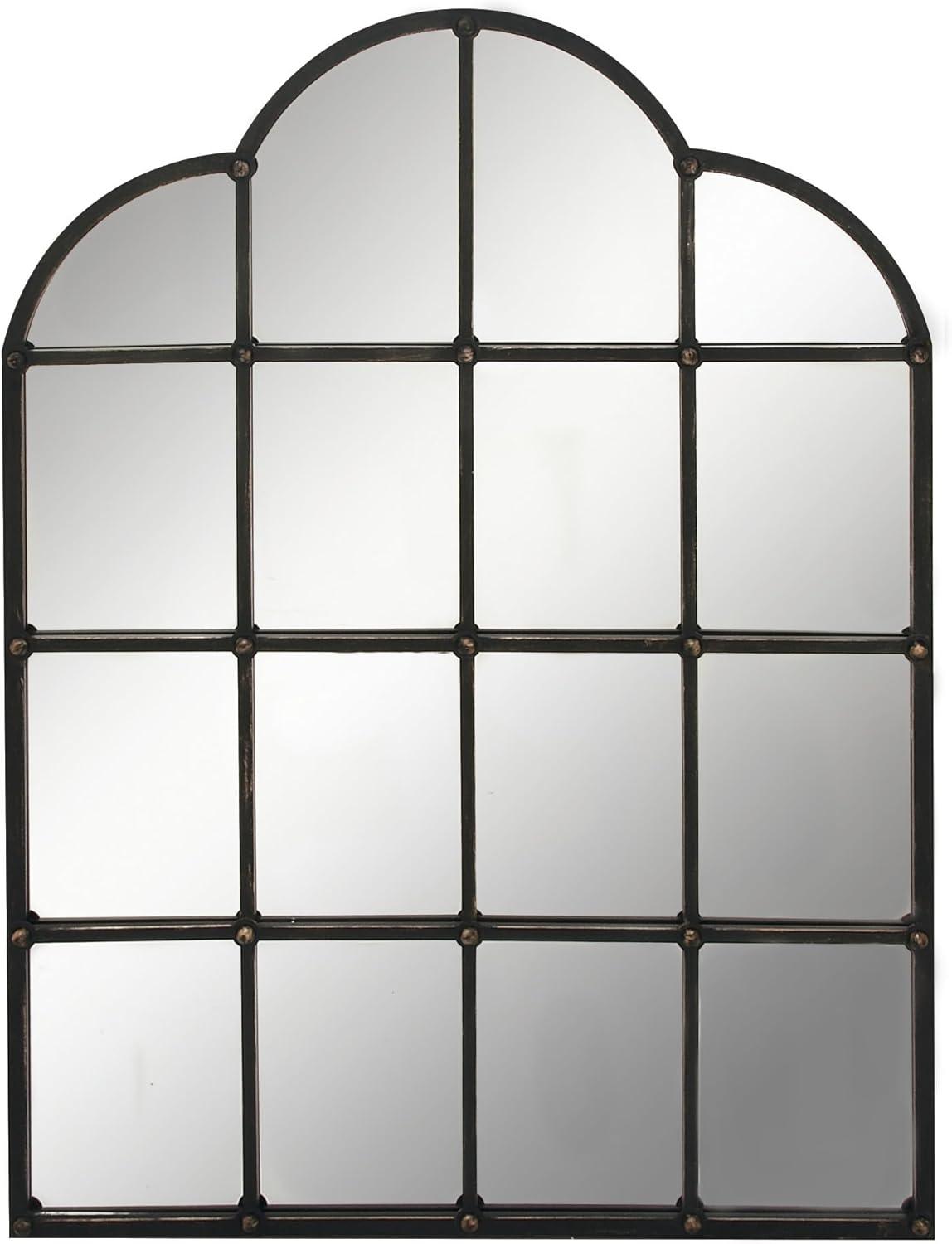 Deco 79 Metal Room Wall Mirror Window Pane Inspired Grid Entryway Mirror, Wall Mounted Mirror 56″ x 1″ x 44″, Brown(Black)