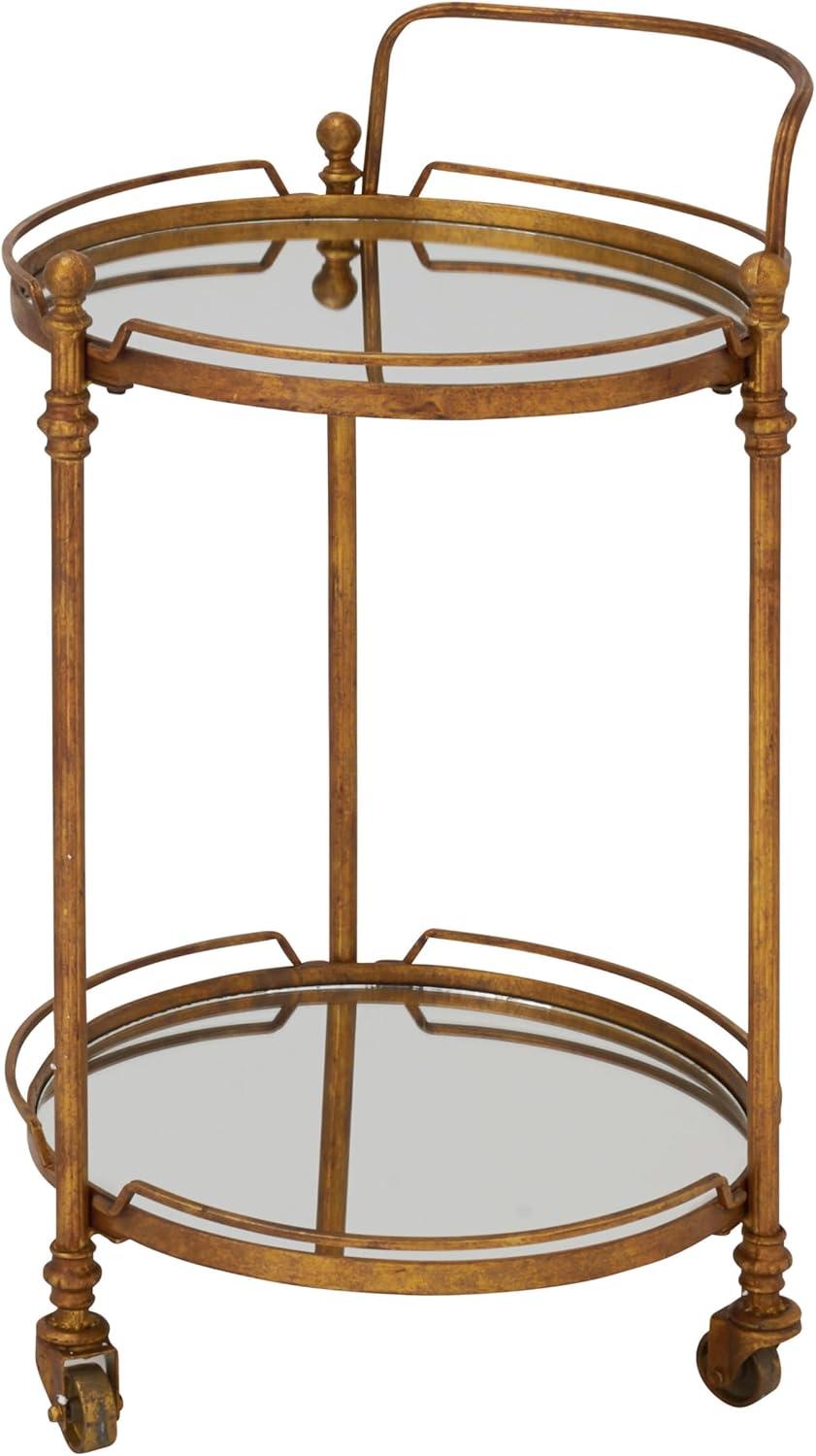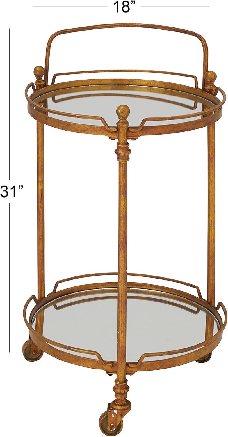 Deco 79 Metal Round Bar Cart with Wheels and Handle, 19" x 18" x 31", Brass(19" x 18" x 31")