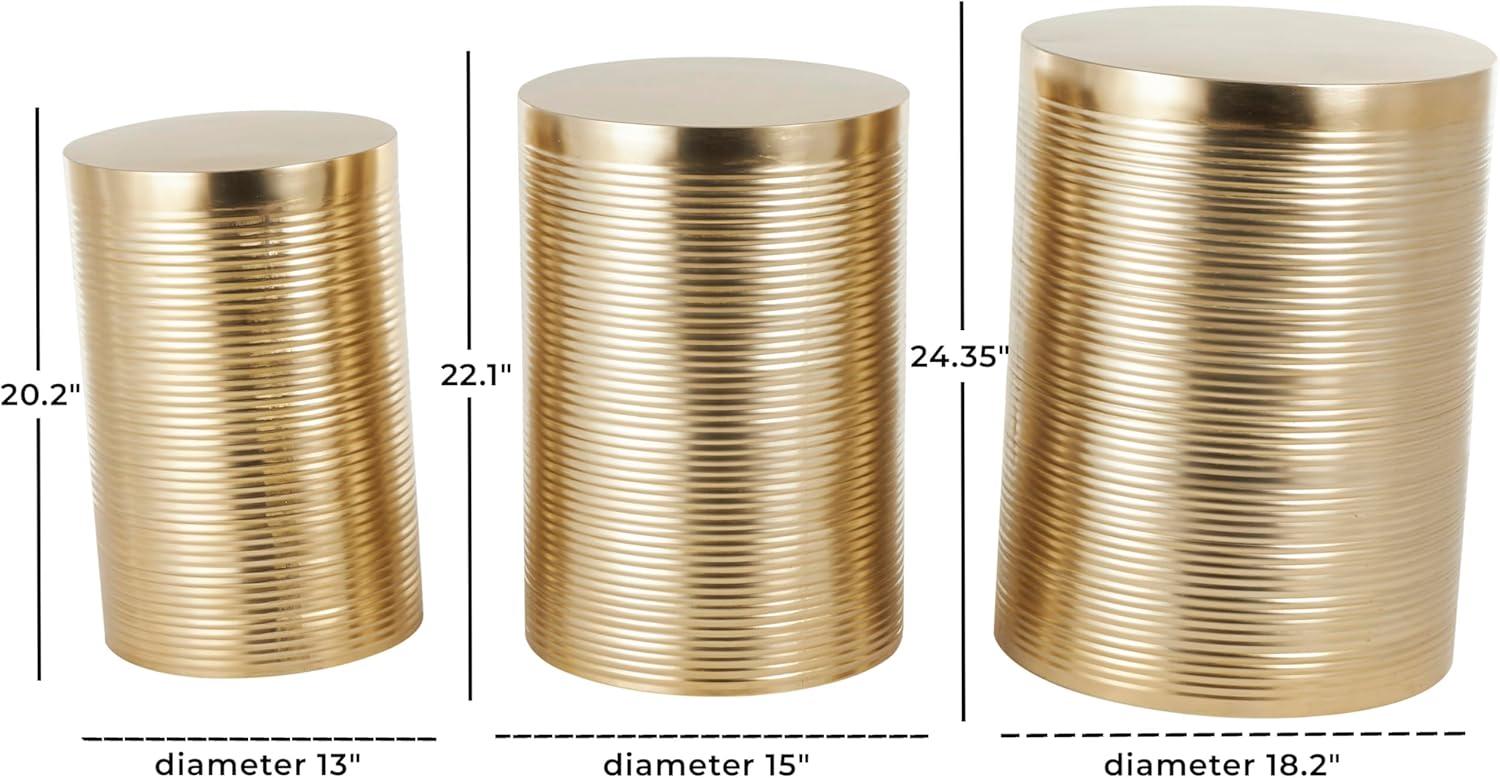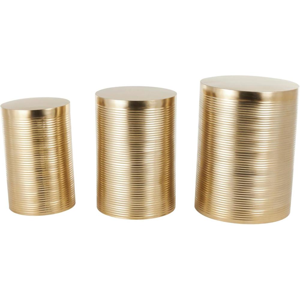 CYLINDER SMALL TABLES: The ribbed design feature of this metal set of 3 accent tables adds depth and texture to the overall look of these pieces