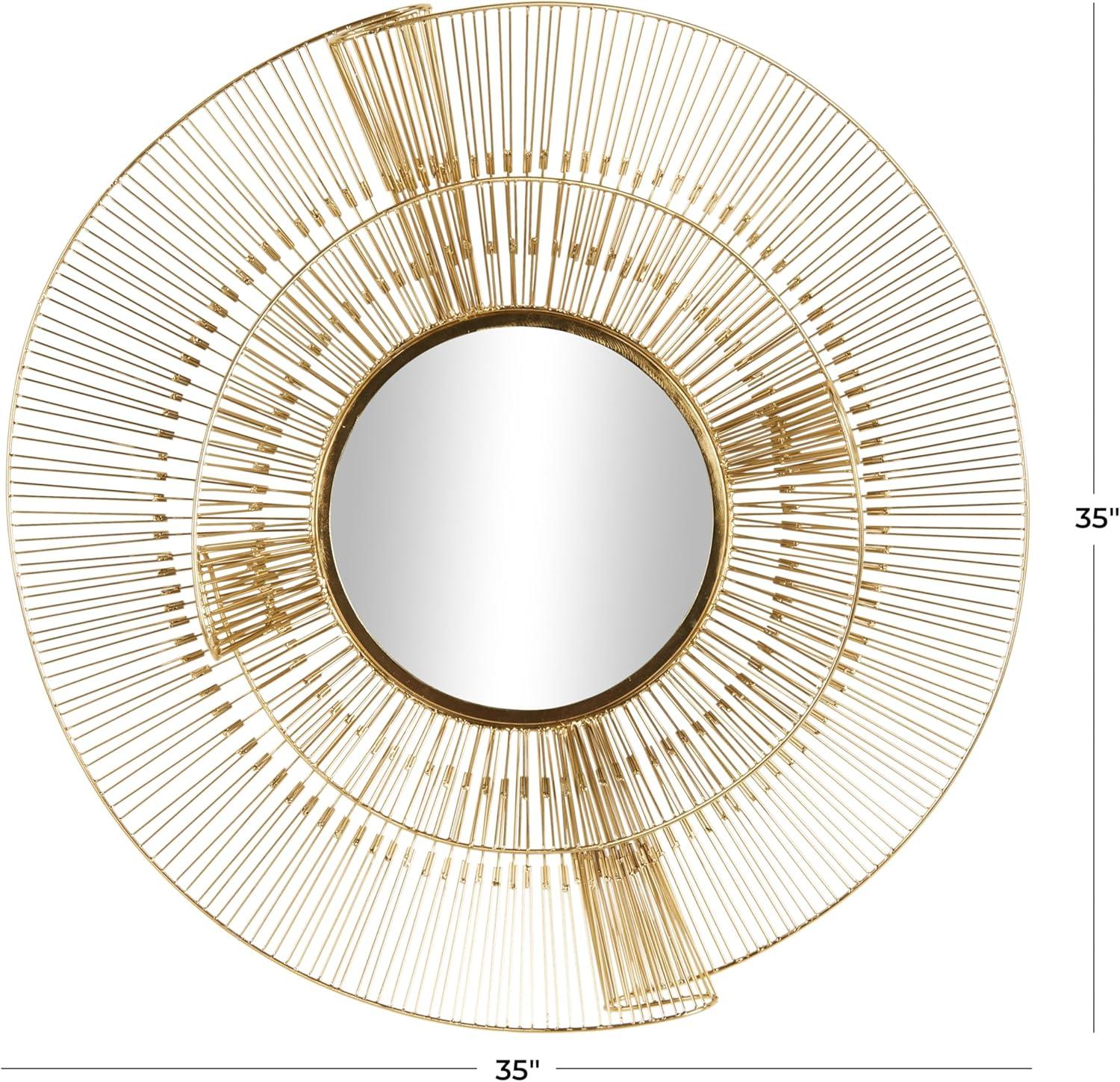 STARBURST ROUND ACCENT WALL MIRROR: Gold wall mirror's distinctive feature is its wire starburst rays, creating a dynamic and visually appealing piece