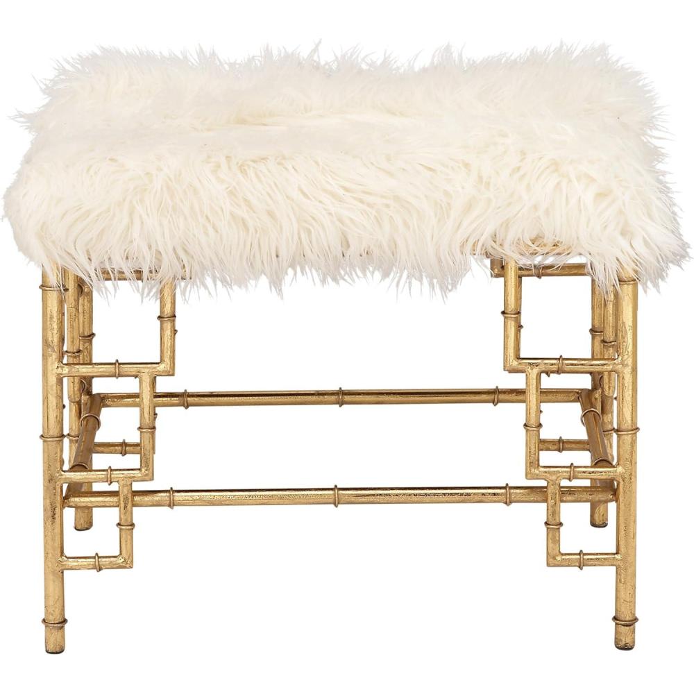 Panning to revamp your home furniture? Check out what we have got for you. This is a modern style stool which will be great addition to nay modern day furnishing. This stool is rectangle shape with body is made from quality metal. The seat is soft faux fur crafted. Inspirited from abstract pipeline pattern the base of the stool is crafted. Dyed in shimmering golden color this stool looks stunning. The seat of this stool is soft to sit for long. Place this metal stool in your living room, bedroom or kitchen area. This stool can be used for sitting purpose or as a decor. This stool looks marvelous and it will certainly seize attention of people visiting your home. Kids will be excited seeing this stool. Regarding maintenance, all you need to do is dust it with dry cloth regularly. This iron stool is comfortable to sit which can be used by small children or adults. Liked it then go get it home!.