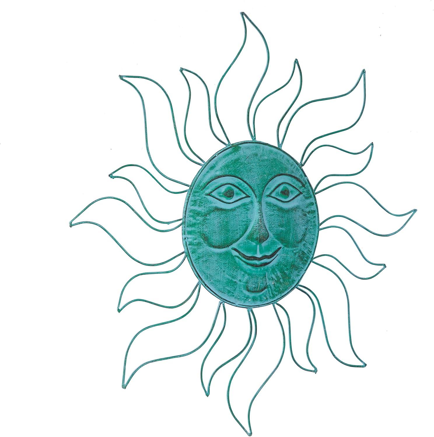 Deco 79 Metal Sun Indoor Outdoor Wall Decor with Wire Frame, 30″ x 1″ x 30″, Teal(Copper)
