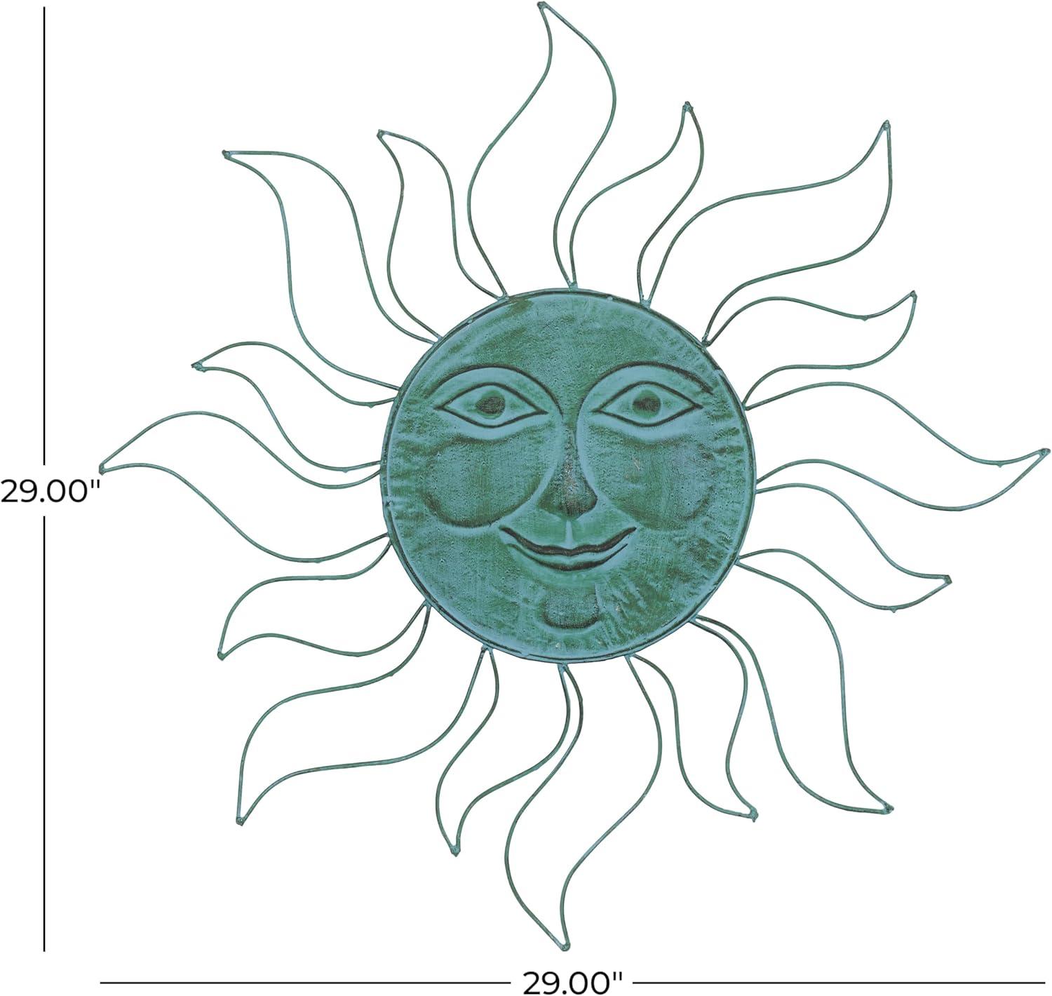 Deco 79 Metal Sun Indoor Outdoor Wall Decor with Wire Frame, 30" x 1" x 30", Teal(Teal)