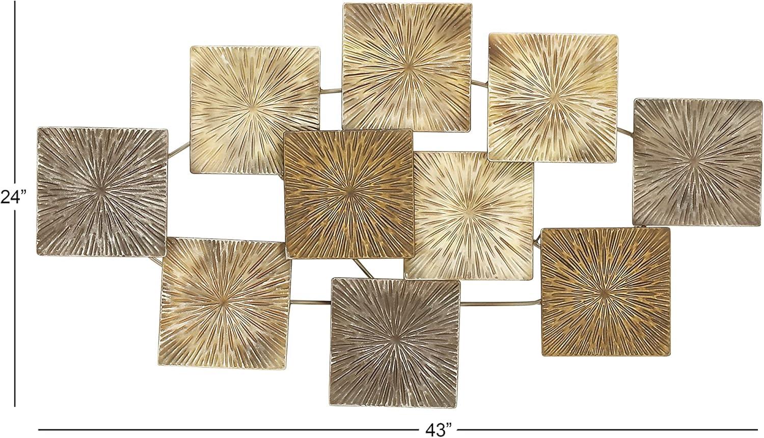 Deco 79 Metal Sunburst Home Wall Decor Carved Overlapping Square Wall Sculpture, Wall Art 43″ x 3″ x 24″, Gold
