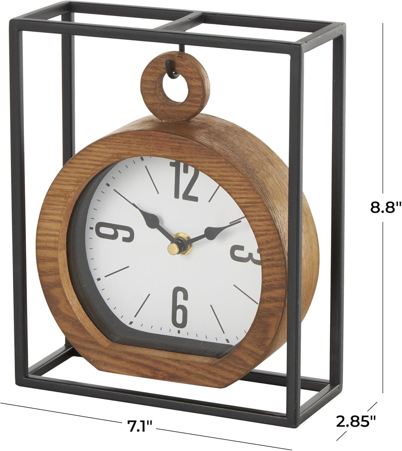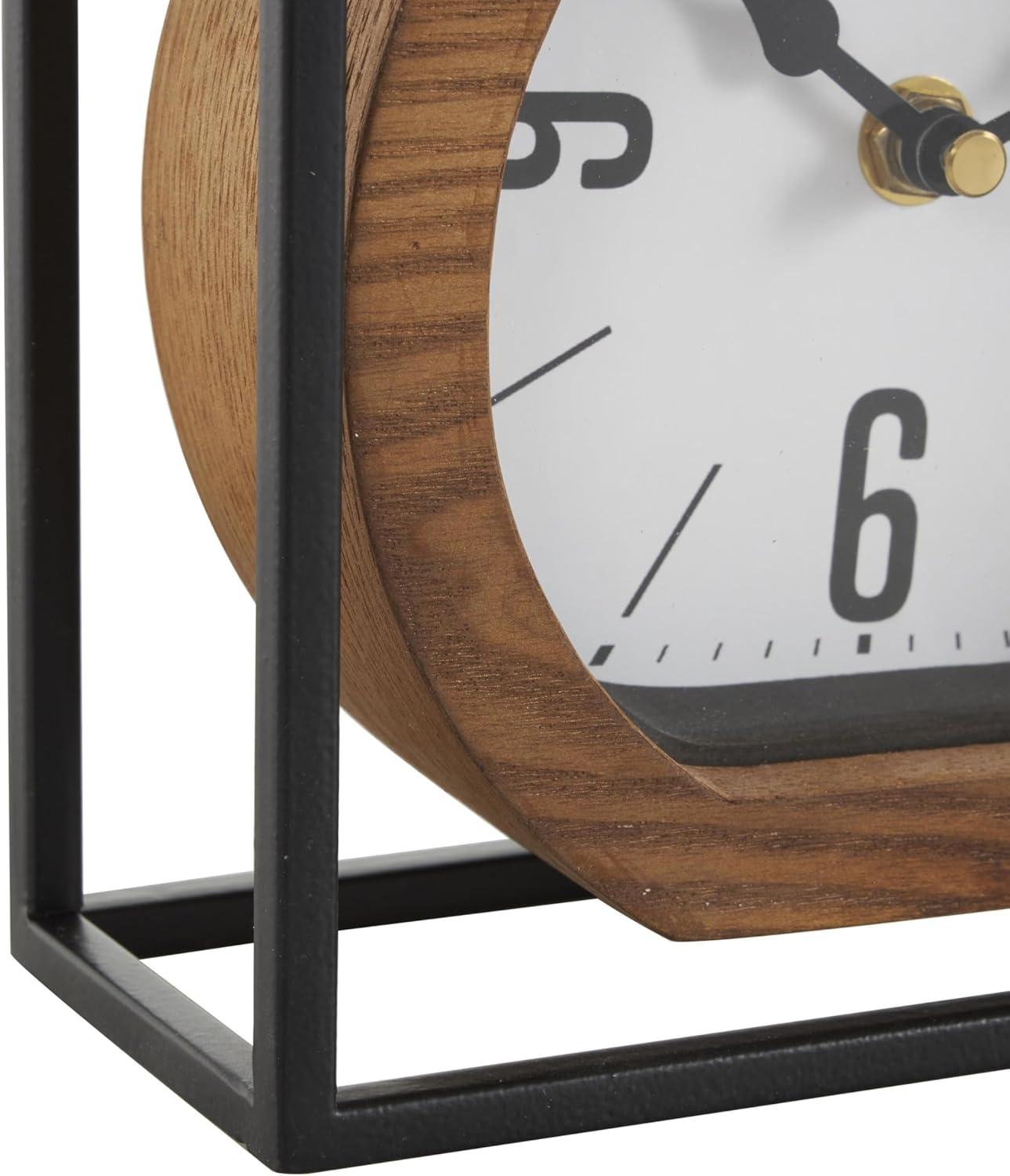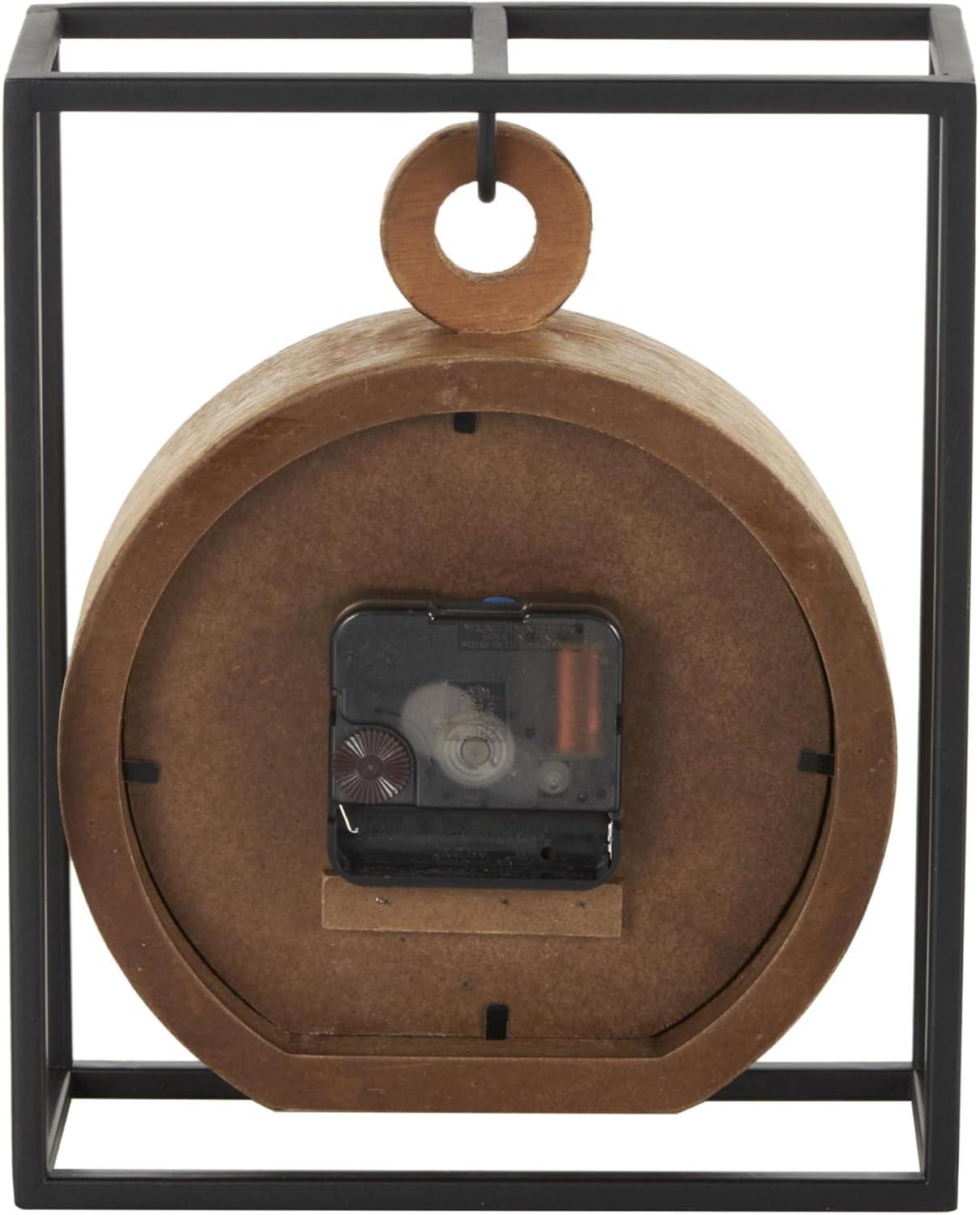 Matte table clock can be used to keep time in your kitchen, office or living room while also serving as a decorative element. Requires 1 AA battery, not included. This item ships in 1 carton. Each hanging clock has a white face, with black Arabic numbers, haskmarks, and hands. The clock mechanism runs silent. Iron clock makes a great gift for any occasion. Suitable for indoor use only. This item ships fully assembled in one piece. This is a single brown colored mantel clock. Industrial style.