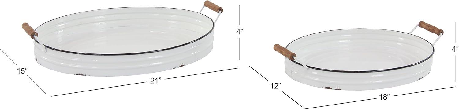 Deco 79 Metal Tray with Wood Handles, Set of 2 21″, 18″W, White