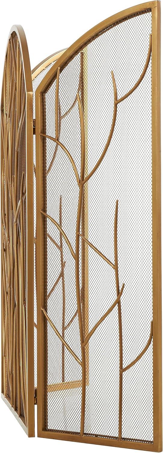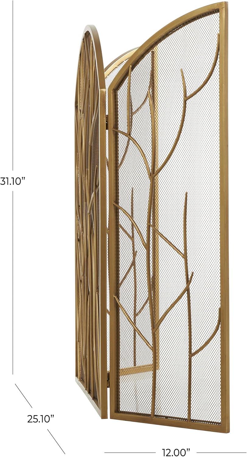 Deco 79 Metal Tree Arched 3 Panel Fireplace Screen with Branch Inspired Design, 25" x 12" x 31", Gold