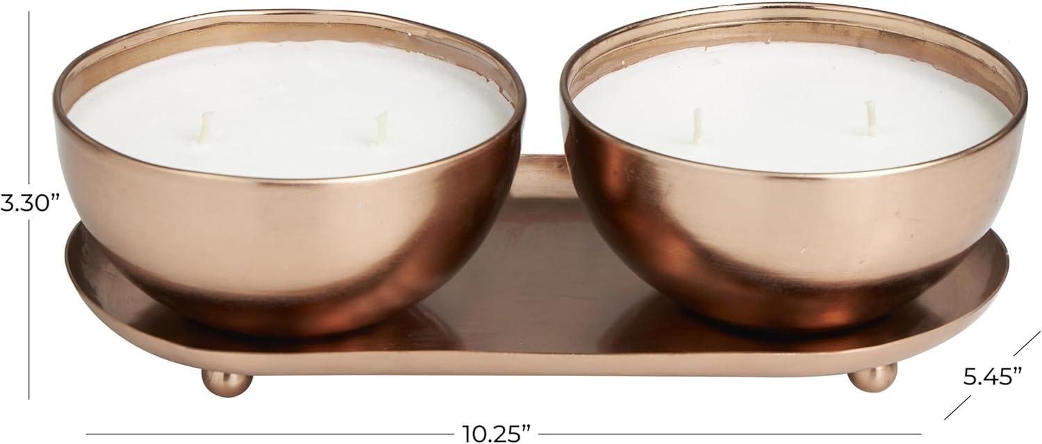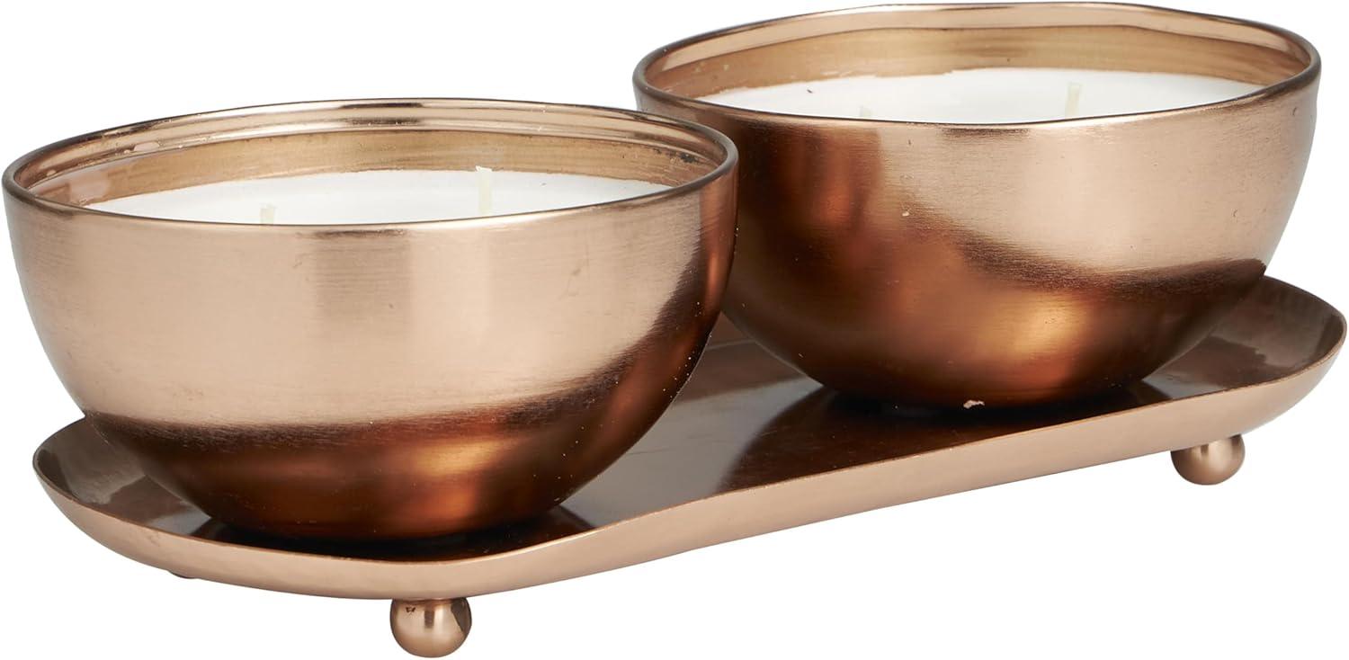 Deco 79 Metal Tropical Breeze Scented Double 12 oz 2 Wick Candle with White Wax and Tray, Set of 2 10" W, 3" H, Copper