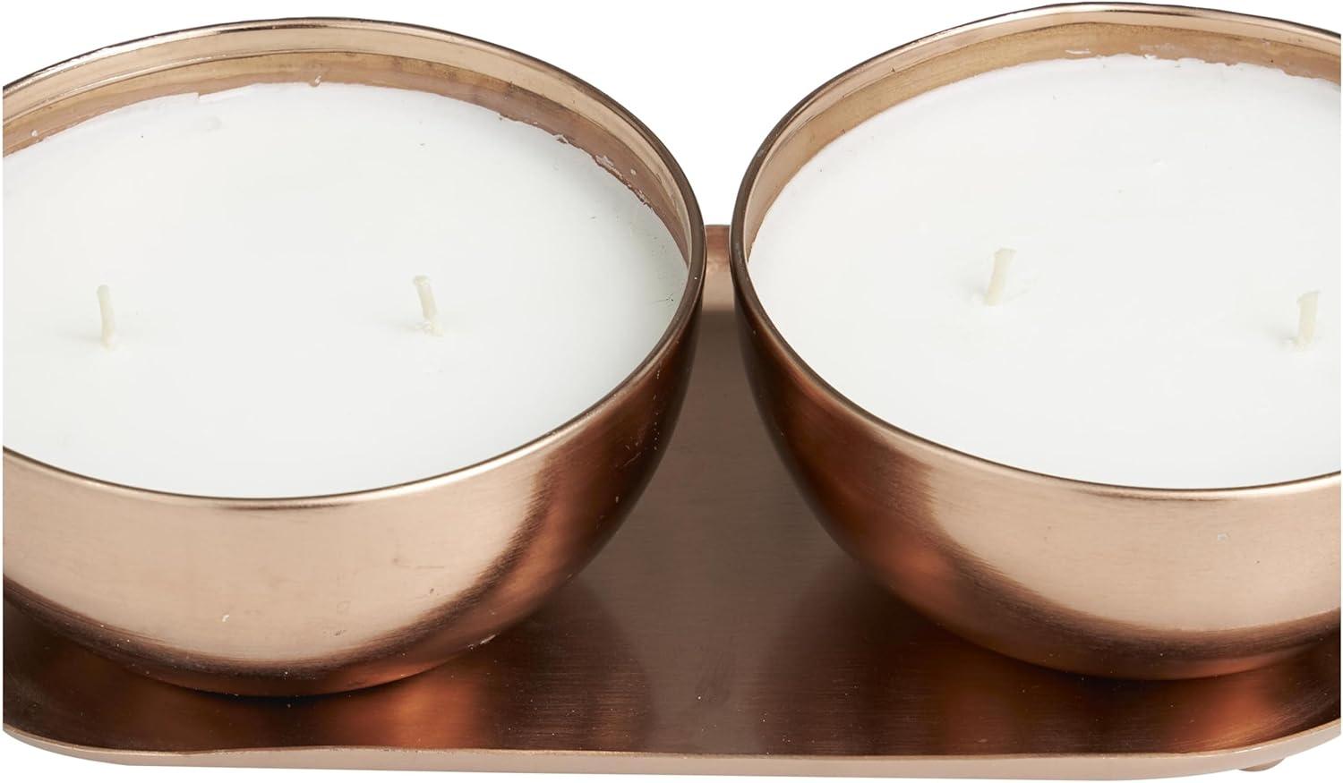 Deco 79 Metal Tropical Breeze Scented Double 12 oz 2 Wick Candle with White Wax and Tray, Set of 2 10″ W, 3″ H, Copper