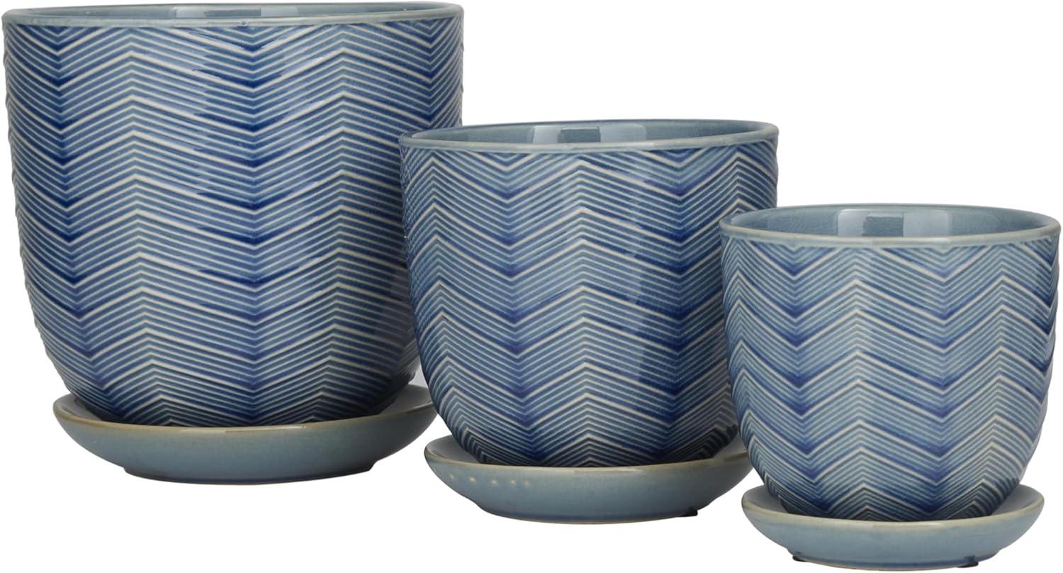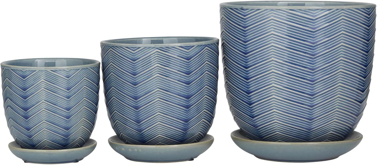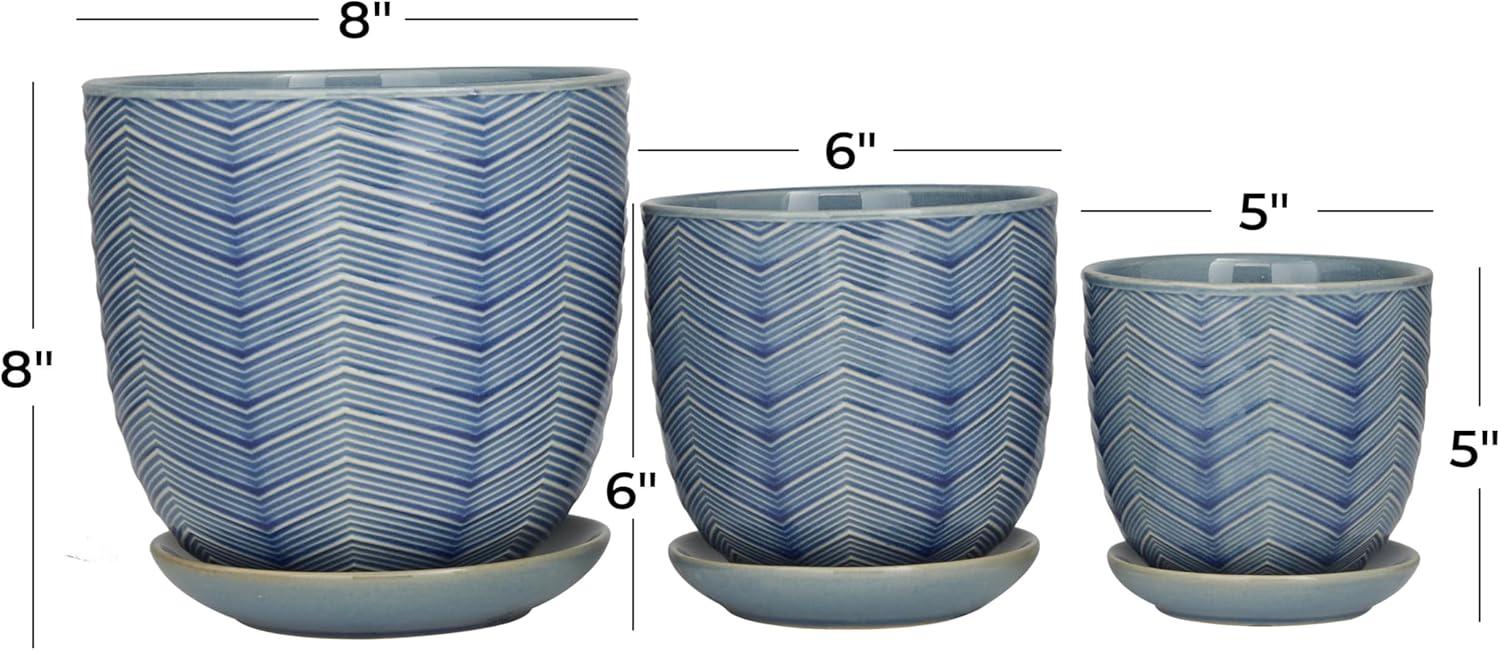 Deco 79 Modern Porcelain, Set of 3 Planters 8", 6", 5"H, Green(Blue)