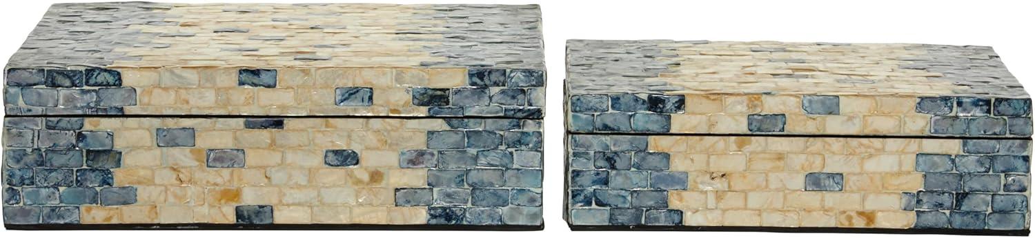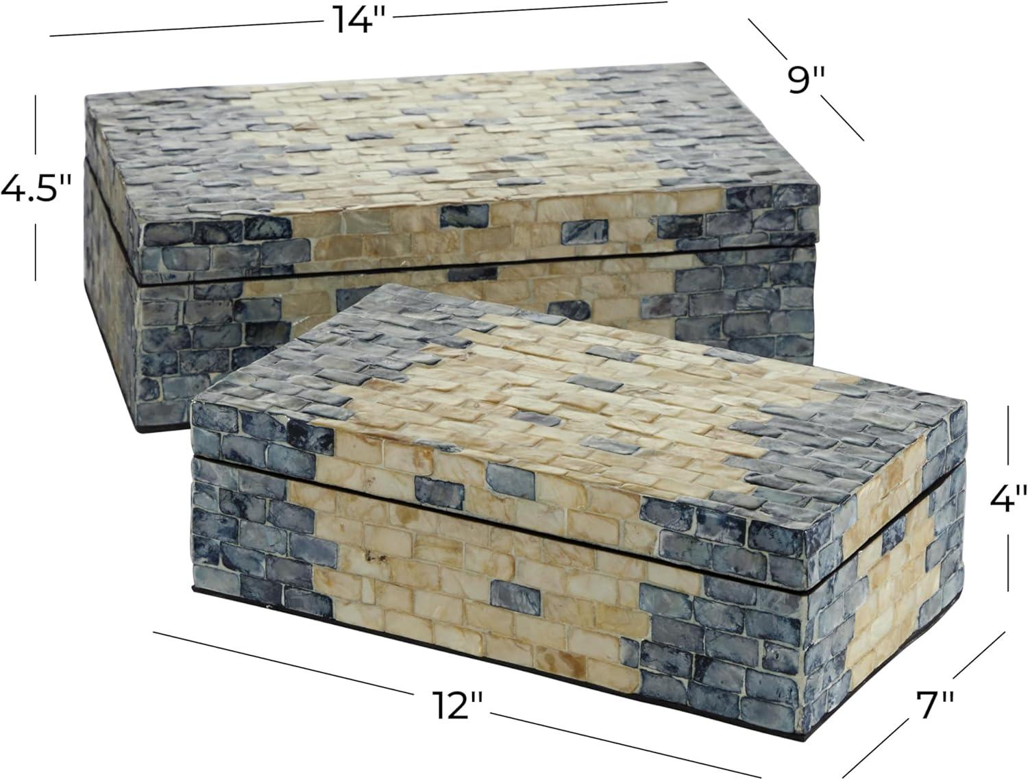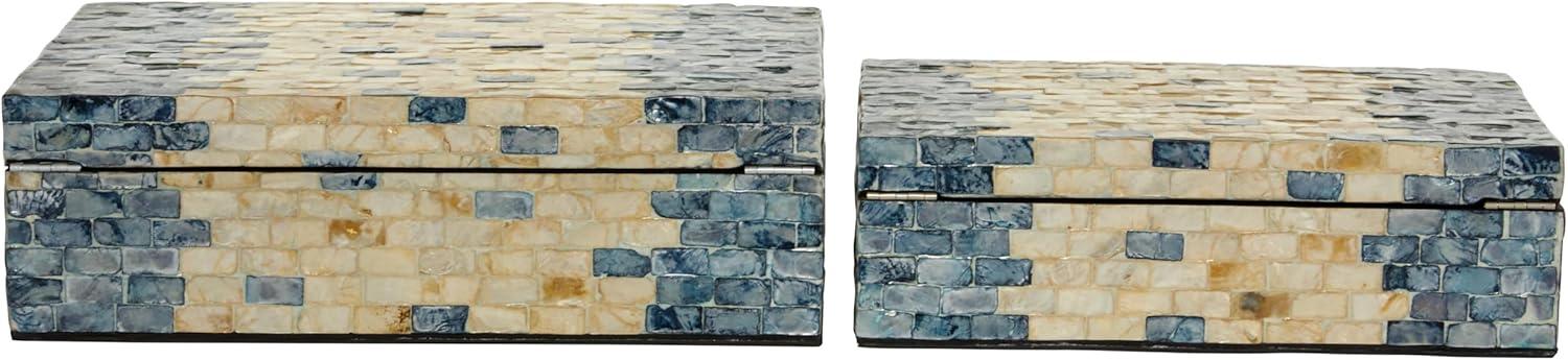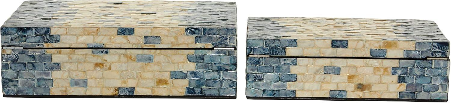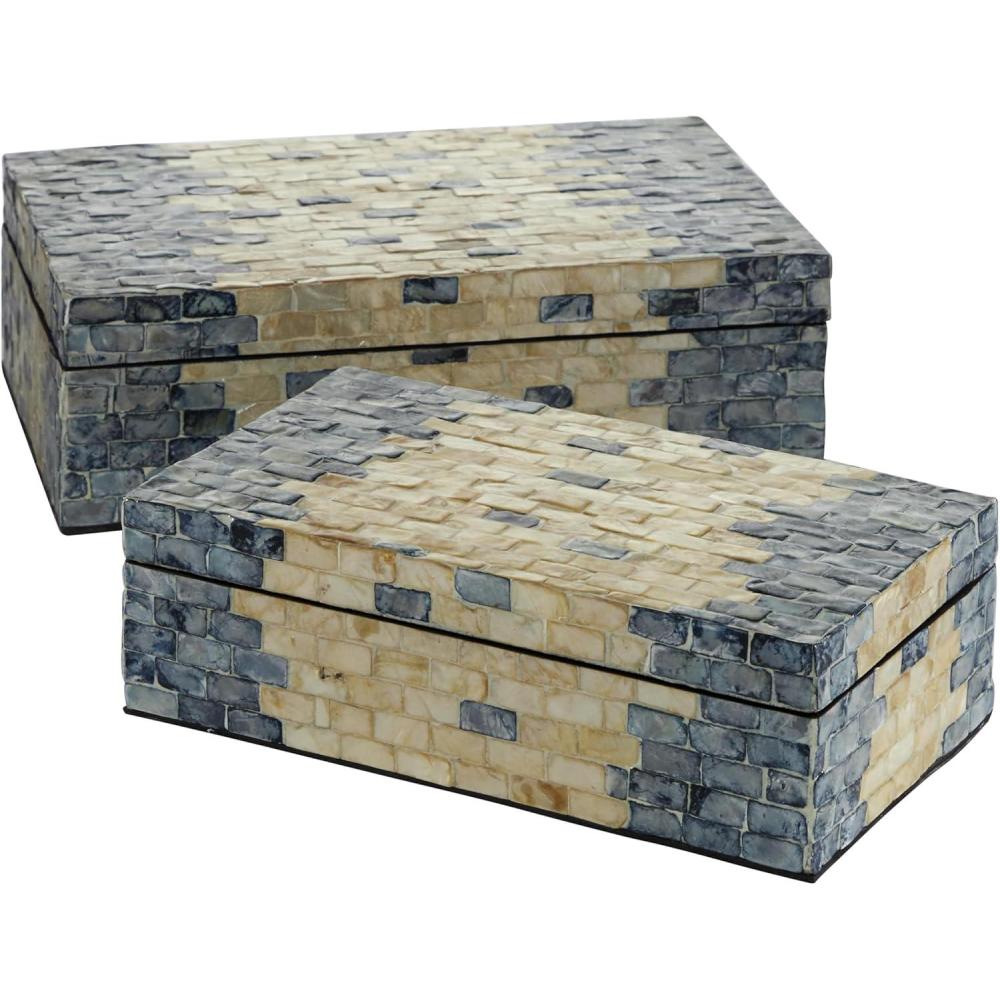 RECTANGLE KEEPSAKE BOXES: Mother of pearl set of 2 boxes features a coastal style inspired design with a unique brick-shaped Capiz shell inlay on both body and lid