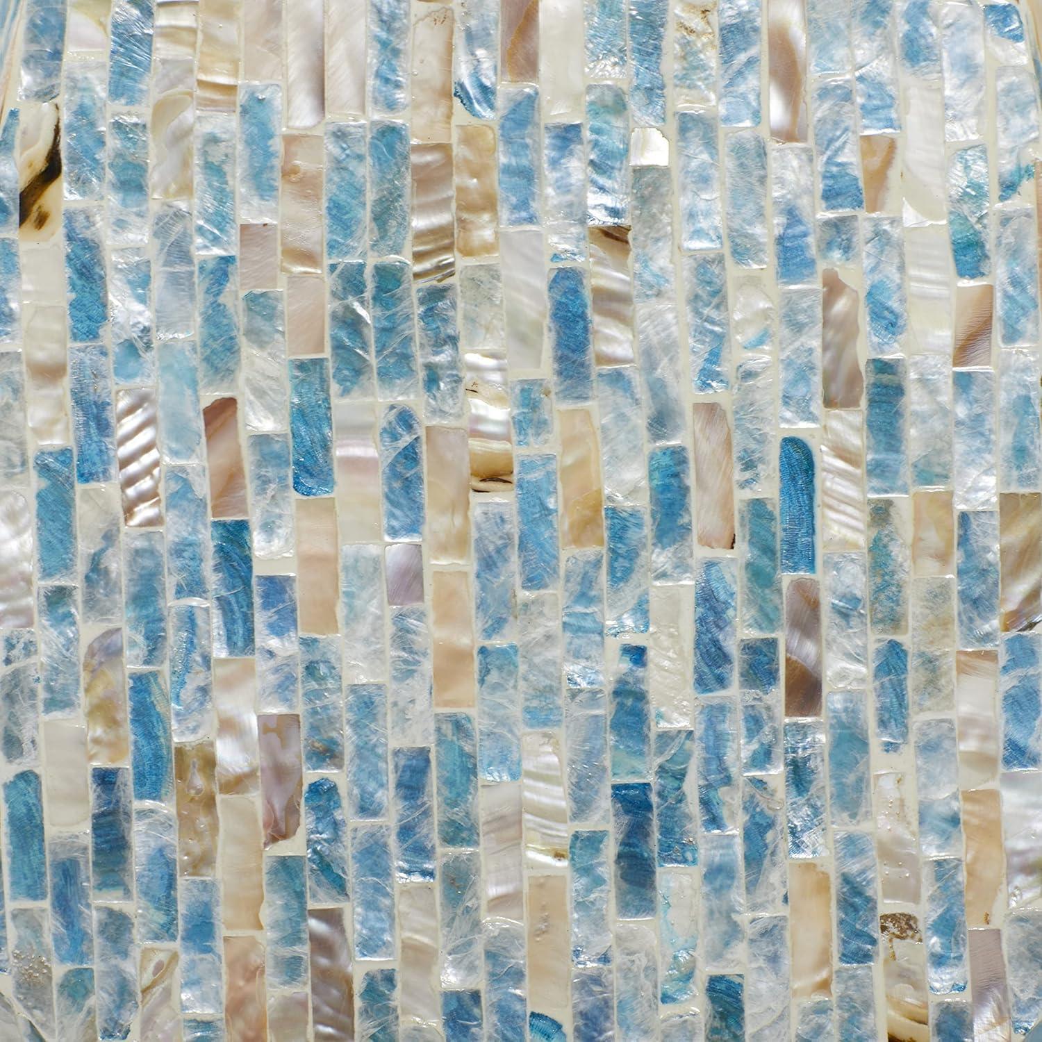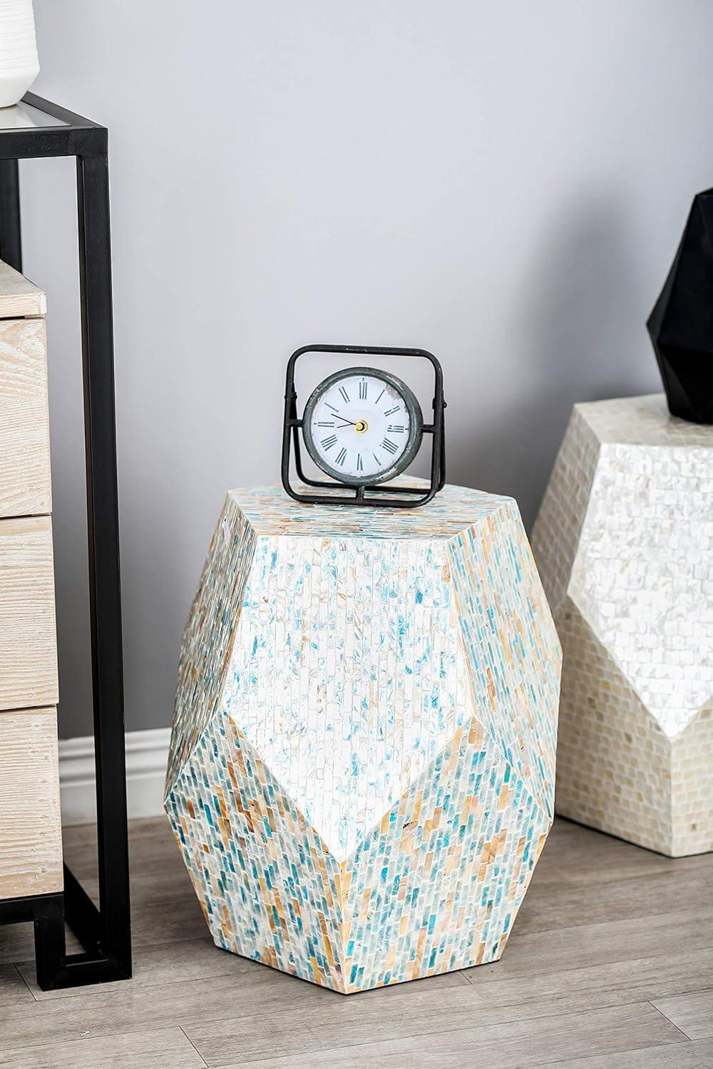 MOTHER OF PEARL SHELL TABLE FOR LIVING ROOM: The multi colored side end accent table is crafted from MDF as its core structure, while the overlay is entirely composed of mother of pearl