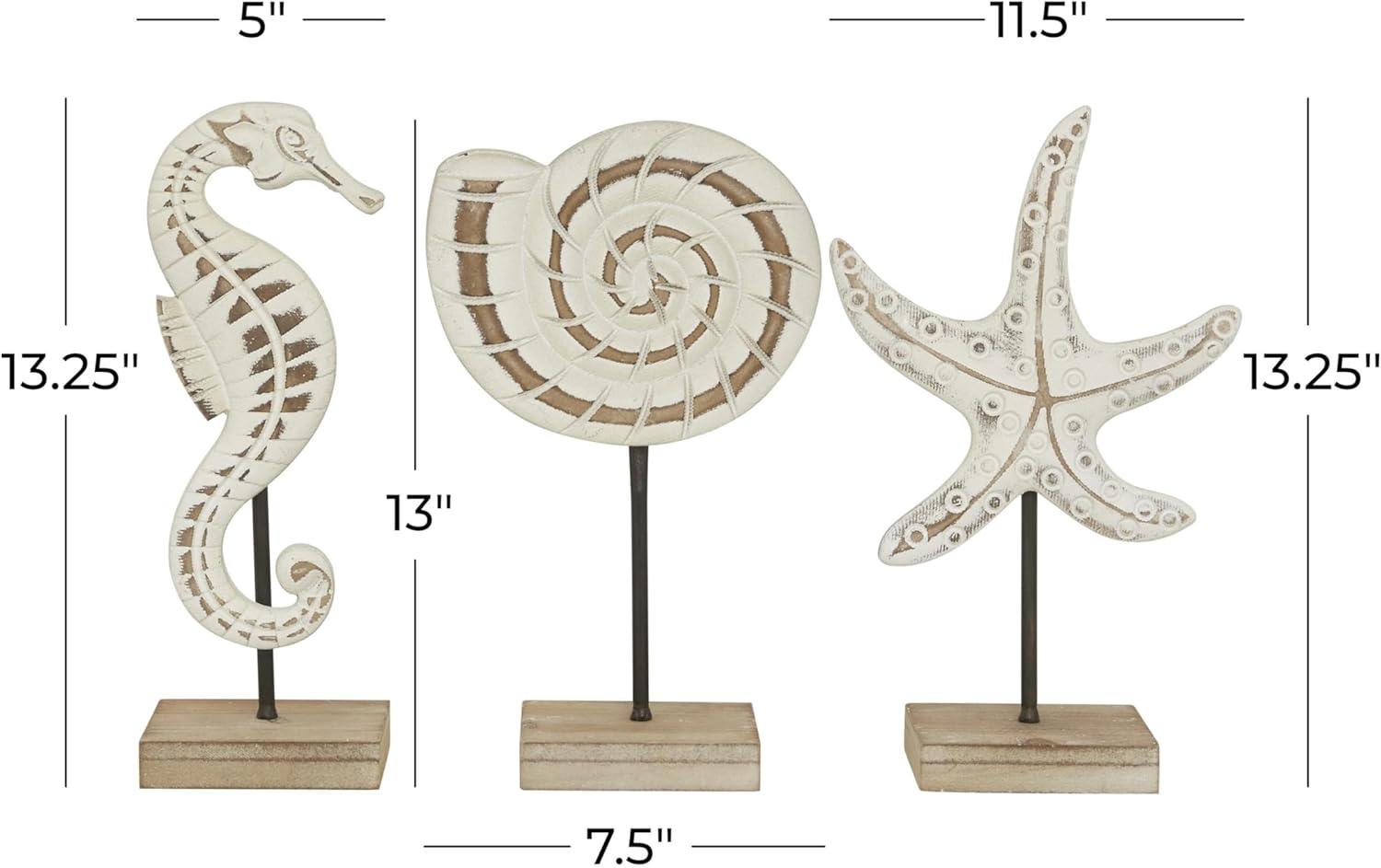 Deco 79 Plastic Sea Life Decorative Sculpture Home Decor Statues, Set of 3 Accent Figurines 13", 13", 13"H, White(White)