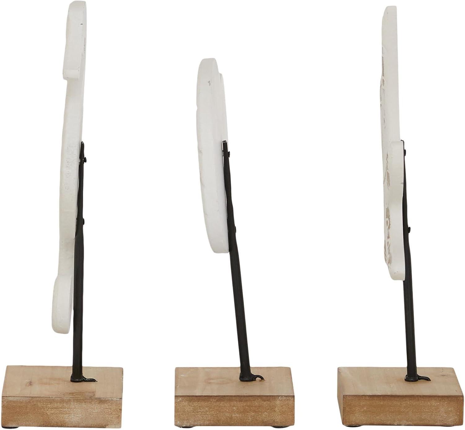 PLASTIC SCULPTURAL ACCENTS: White decorative sculpture set is crafted from wood, MDF, and iron, showcasing creative craftsmanship