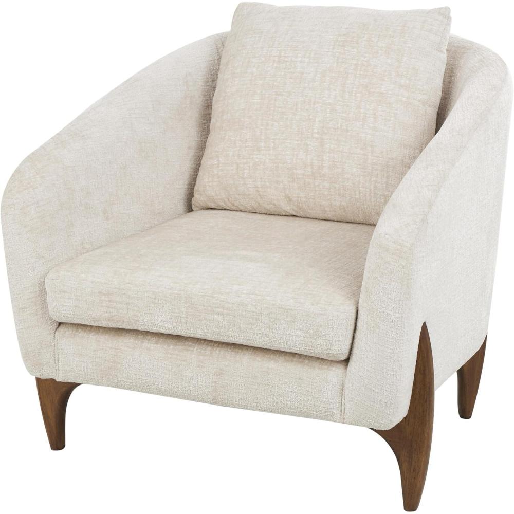 WHITE AND BROWN TEXTURED FINISH: The contemporary accent chair showcases a clean cream white color and dark brown base exuding a fresh and modern aesthetic