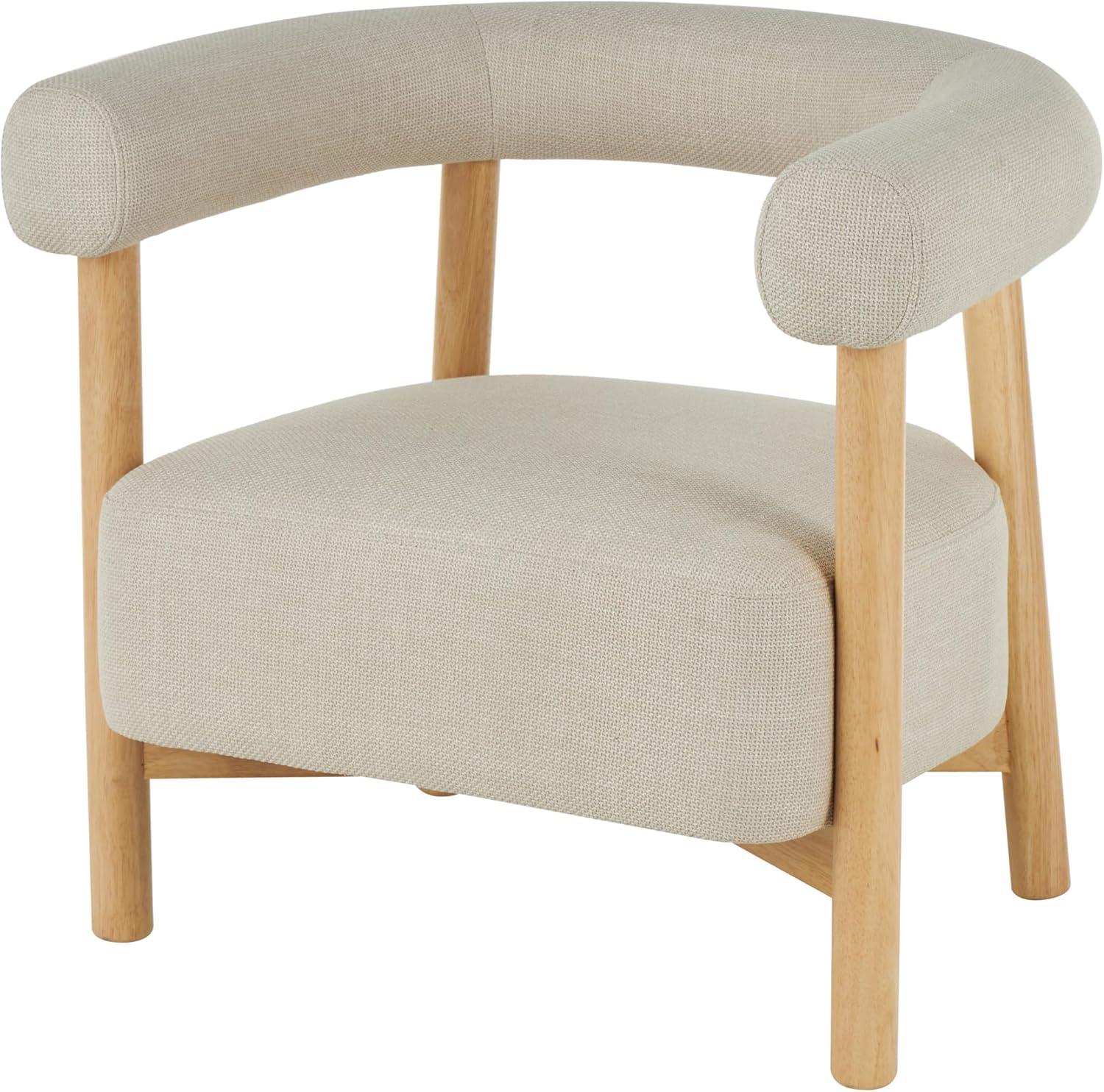 The contemporary small space accent chair is crafted with a light brown wood frame and polyester used for the cushion, ensuring durability and stability. With its arched shape and curved back, this textured white living room chair offers both style and functionality. Wipe clean with a dry cloth. Perfect for any living room, this beige side chair offers both style and comfort. This item ships in 1 carton. Arched chair is fully upholstered in a polyester fabric. Spot clean fabric carefully with water and mild detergent, or have professionally cleaned. Suitable for indoor use only. This item ships fully assembled in one piece. Maximum weight limit is 250 lbs. Can accommodate 1 person. This is a single beige colored side chair. Contemporary style.