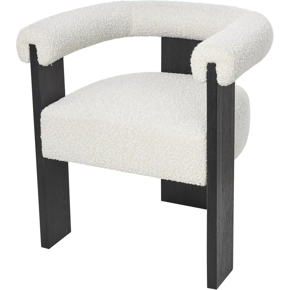 imageDeco 79 Polyester Living Room Accent Chair Curved Back Mid Century Modern Round Boucle Side Chair with Light Brown Wood Frame Corner Chair 32quot x 24quot x 28quot BeigeWhite