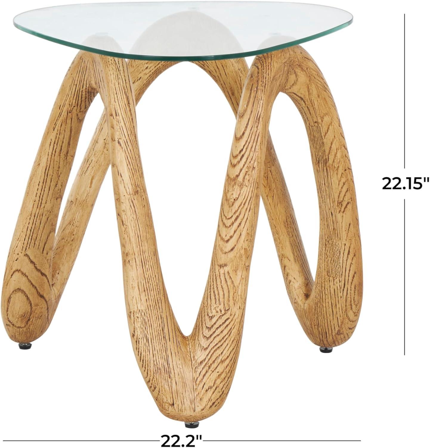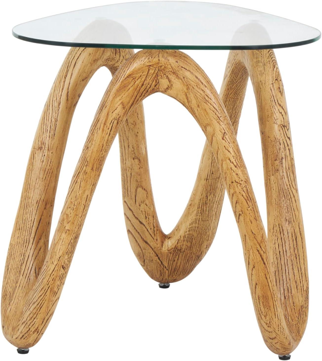 Deco 79 Polystone Abstract Side End Accent Table Wood Inspired Wavy End Table with Glass Tabletop, Side Table 22" x 21" x 22", Light Brown