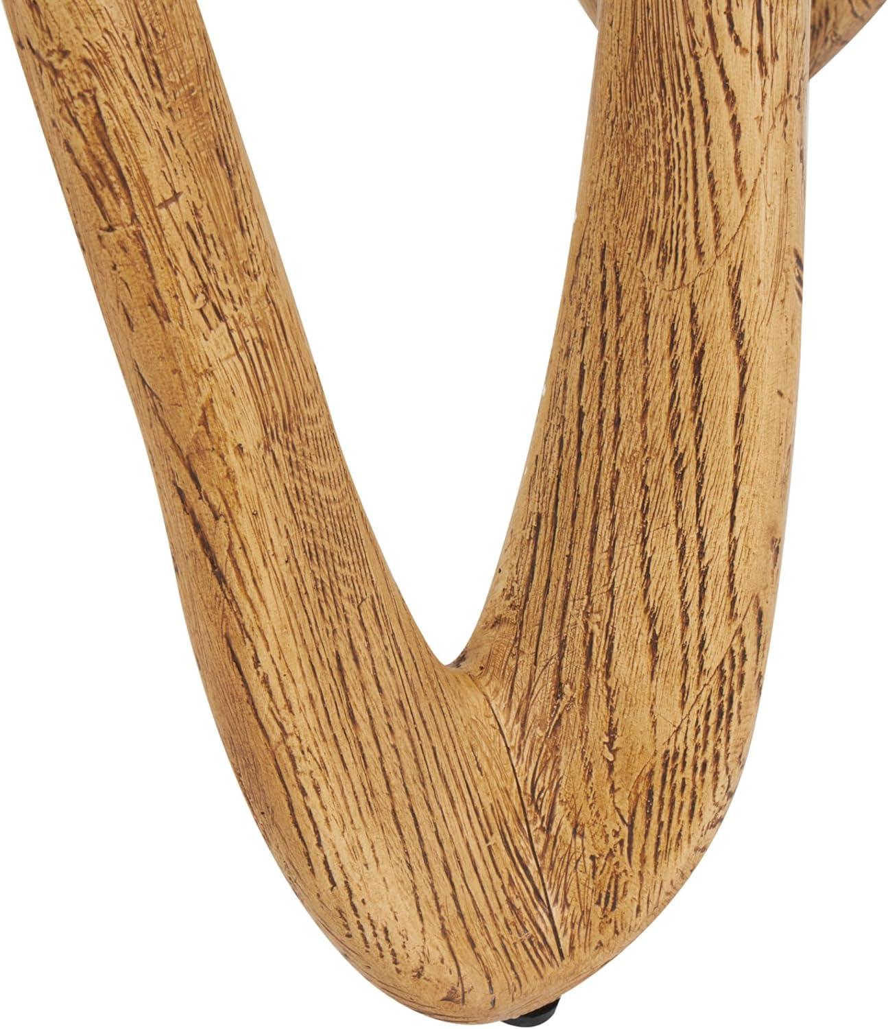 Deco 79 Polystone Abstract Side End Accent Table Wood Inspired Wavy End Table with Glass Tabletop, Side Table 22″ x 21″ x 22″, Light Brown