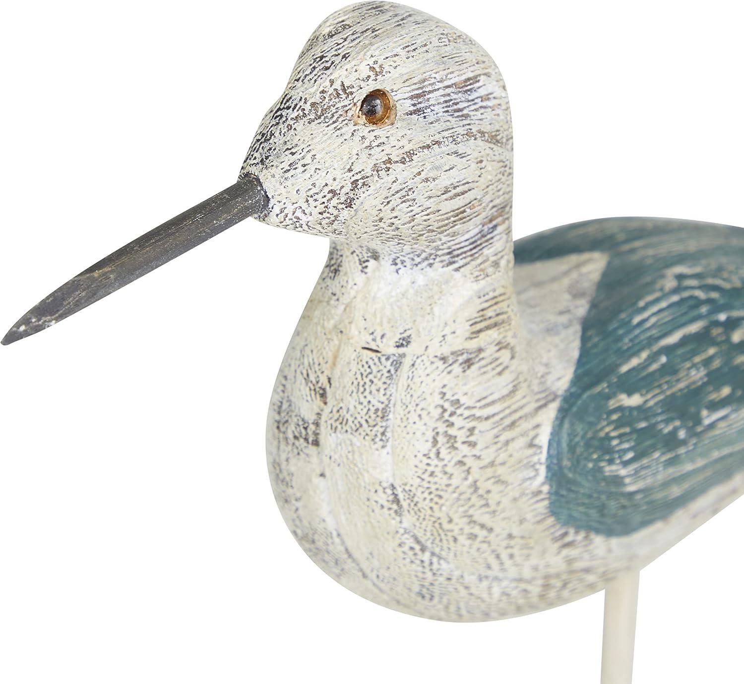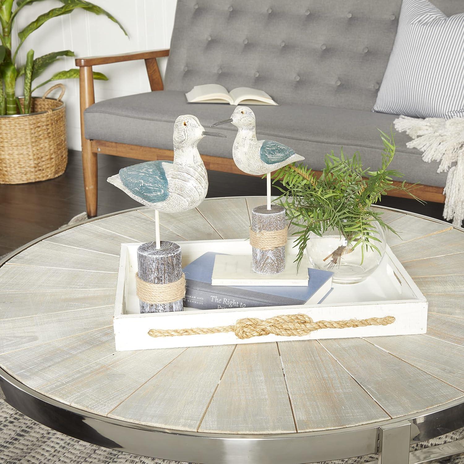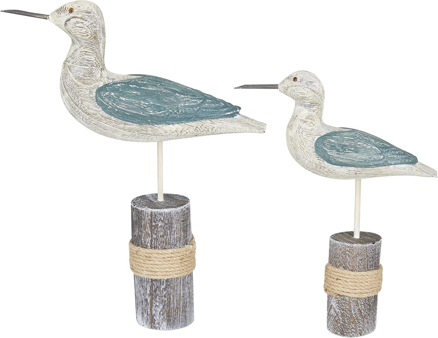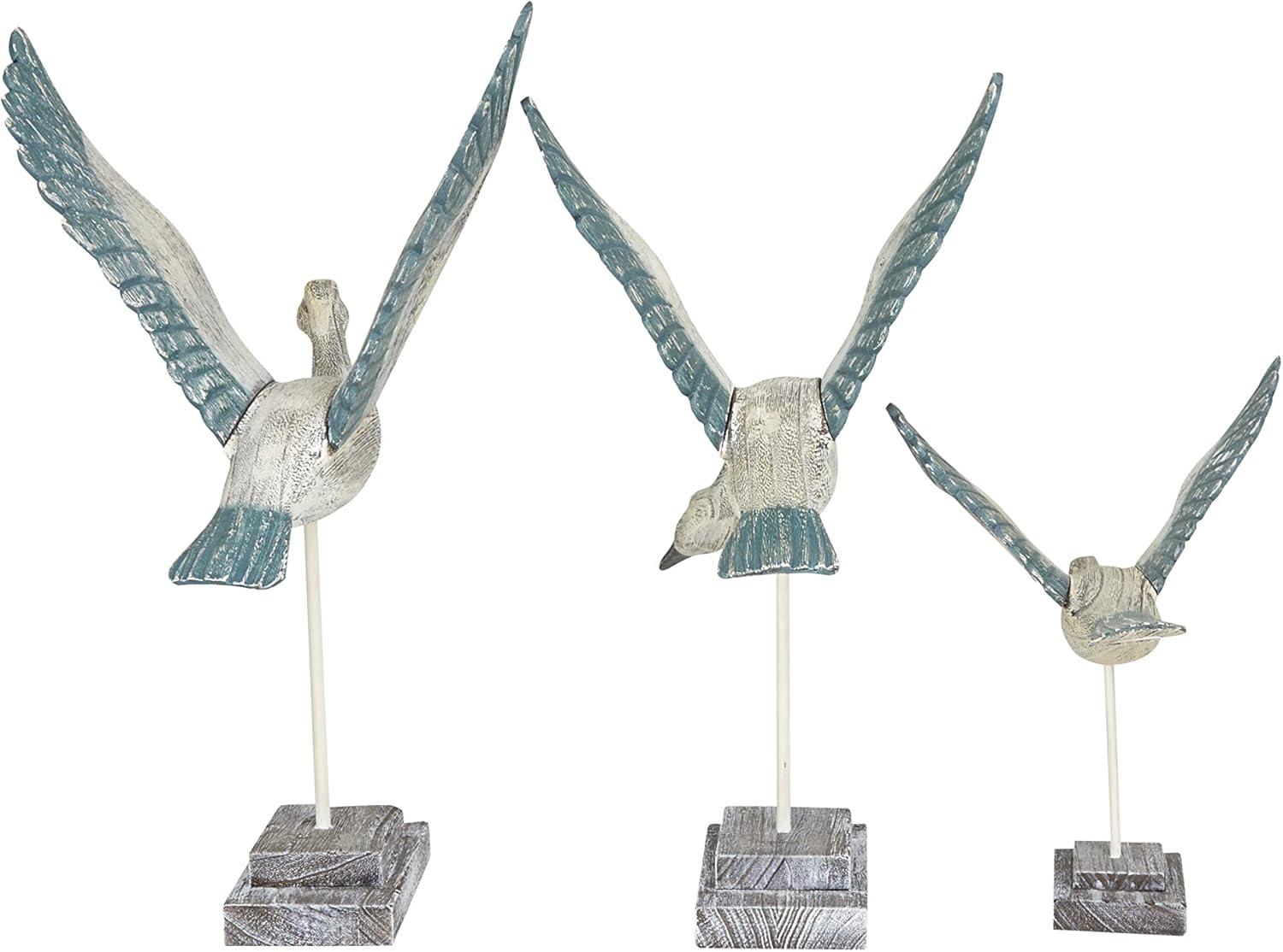 WHITE AND BLUE HOME DECOR FIGURINES: Set of bird sculptures feature a white matte finish with blue coral patterns and brown bases, embodying a coastal charm and relaxed aesthetic
