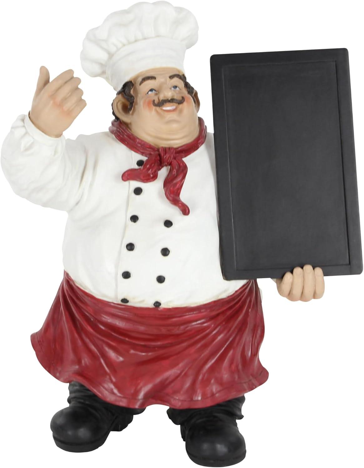 CHEF RECTANGLE SCULPTURE Two whimsical kitchen sculptures depict a chef holding a chalkboard sign, adding a playful touch to your kitchen