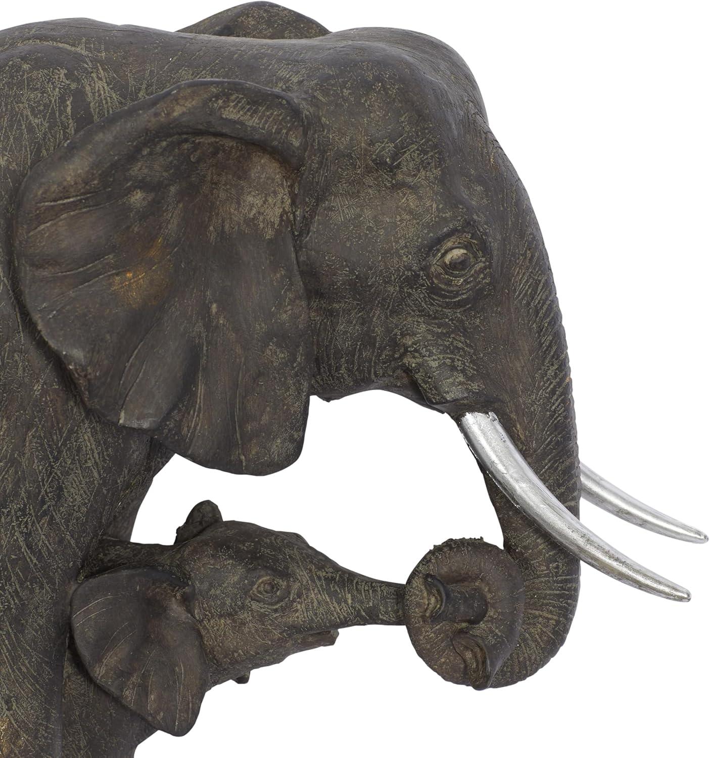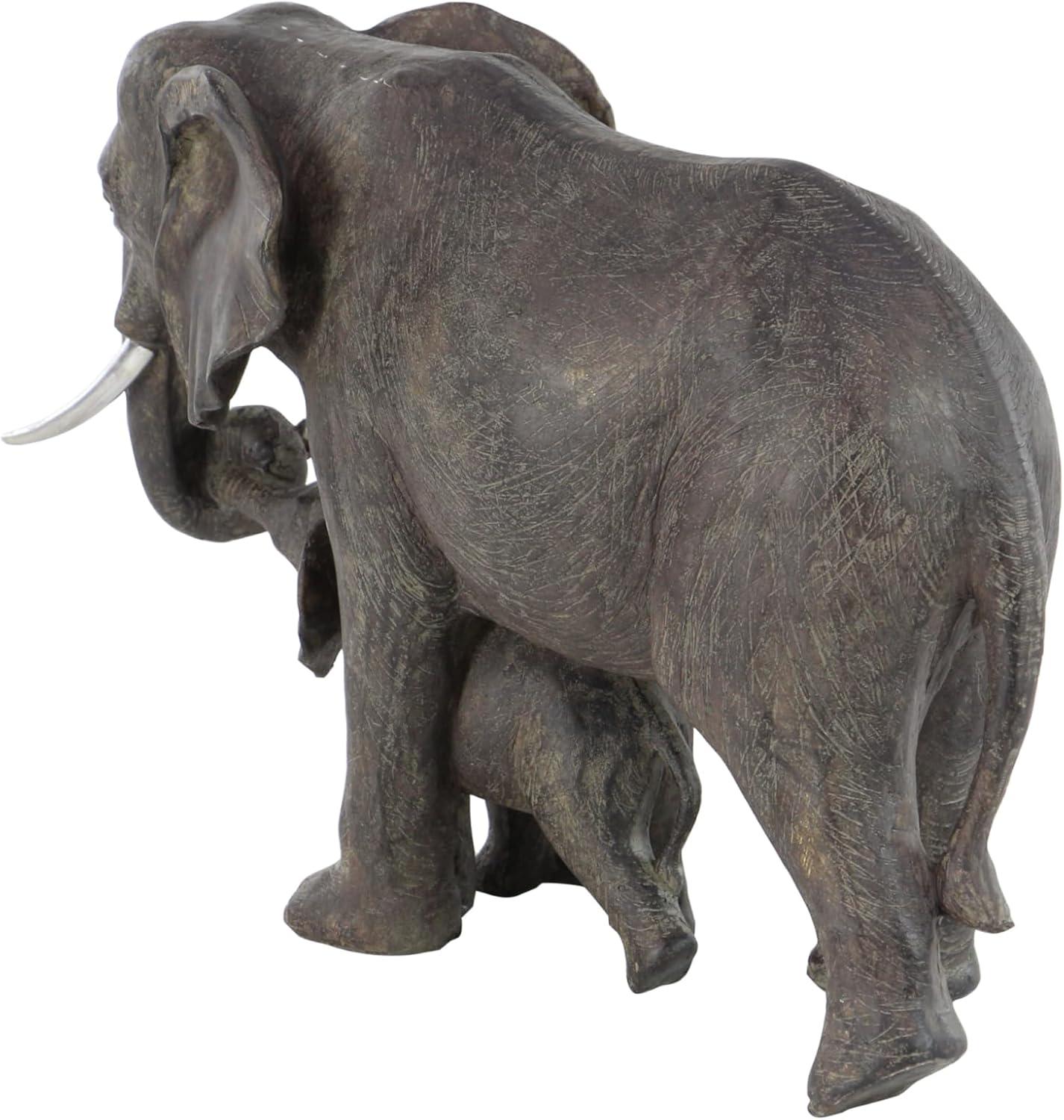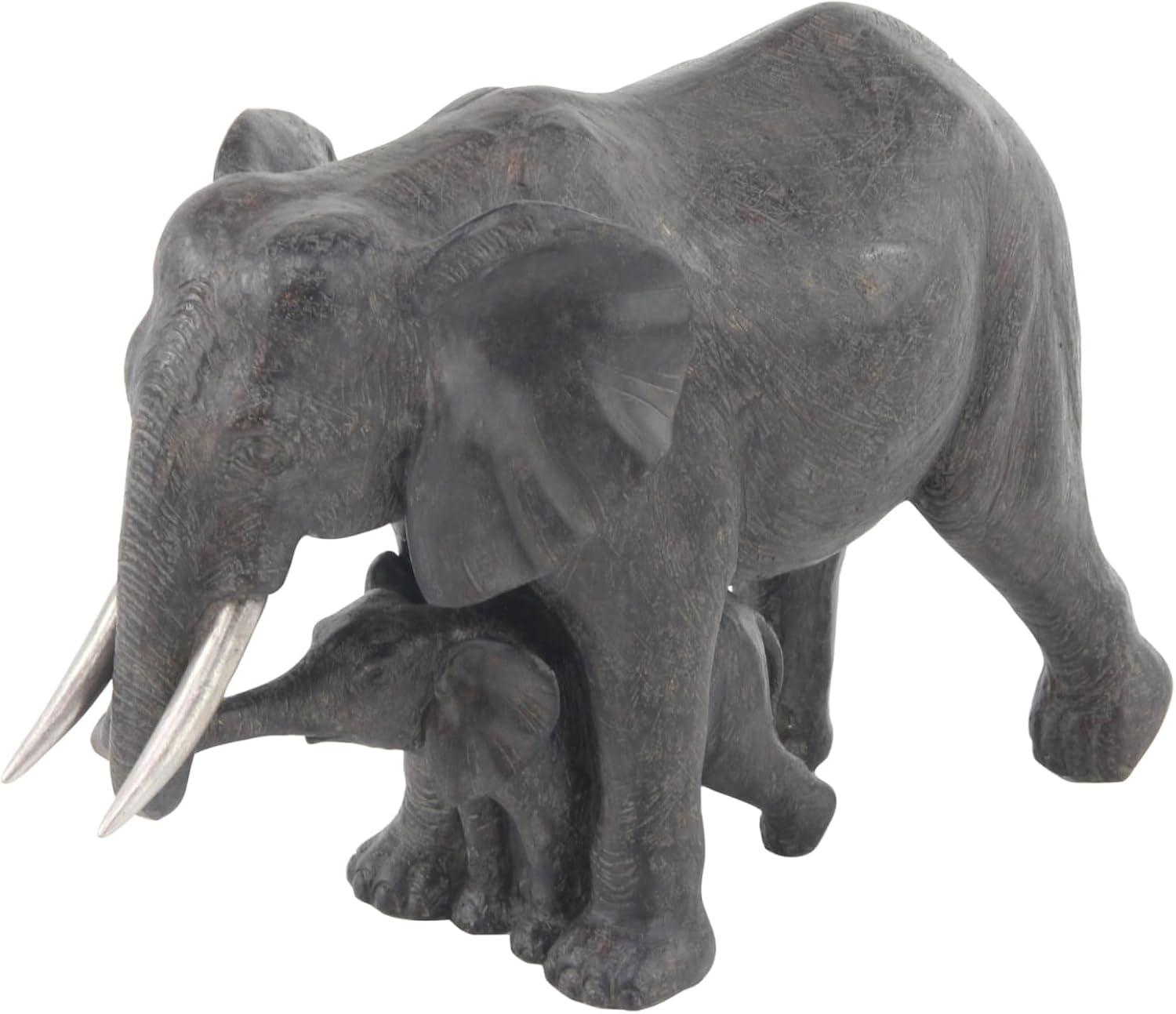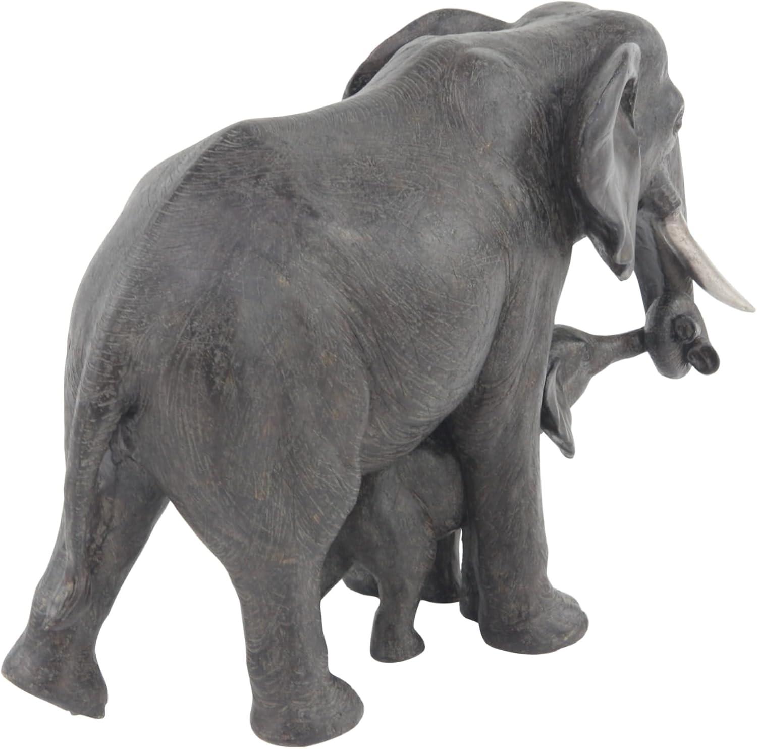 Deco 79 Polystone Elephant Decorative Sculpture Home Decor Statue, Accent Figurine 20" x 7" x 13", Gray