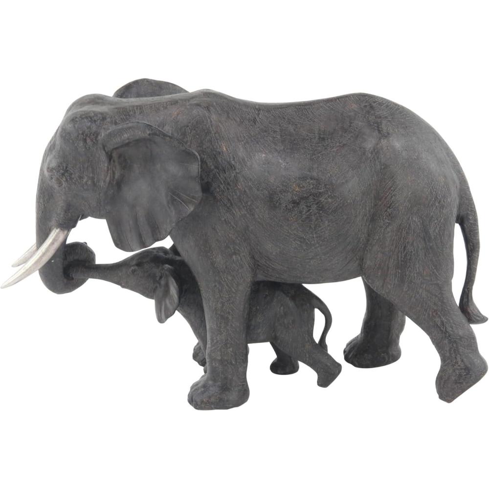 Deco 79 Polystone Elephant Decorative Sculpture Home Decor Statue, Accent Figurine 20″ x 7″ x 13″, Gray