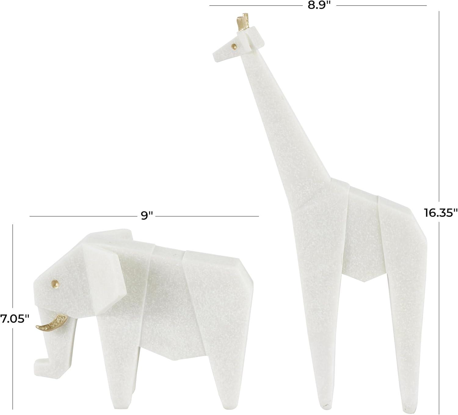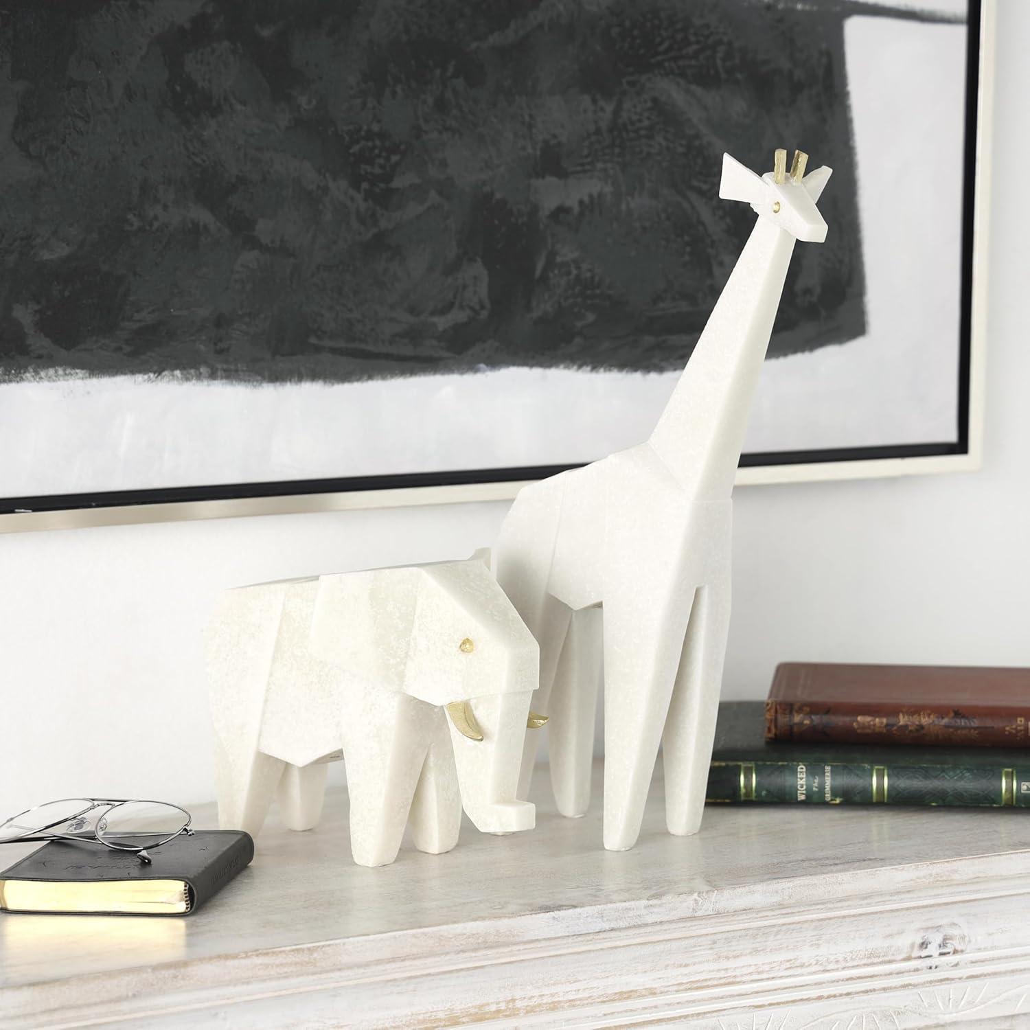 ELEPHANT, GIRAFFE ASYMMETRICAL ACCENT STATUES: Polystone set of 2 sculptures showcases an abstract cubist-inspired design, creating visually dynamic pieces of art that complement modern and eclectic styles