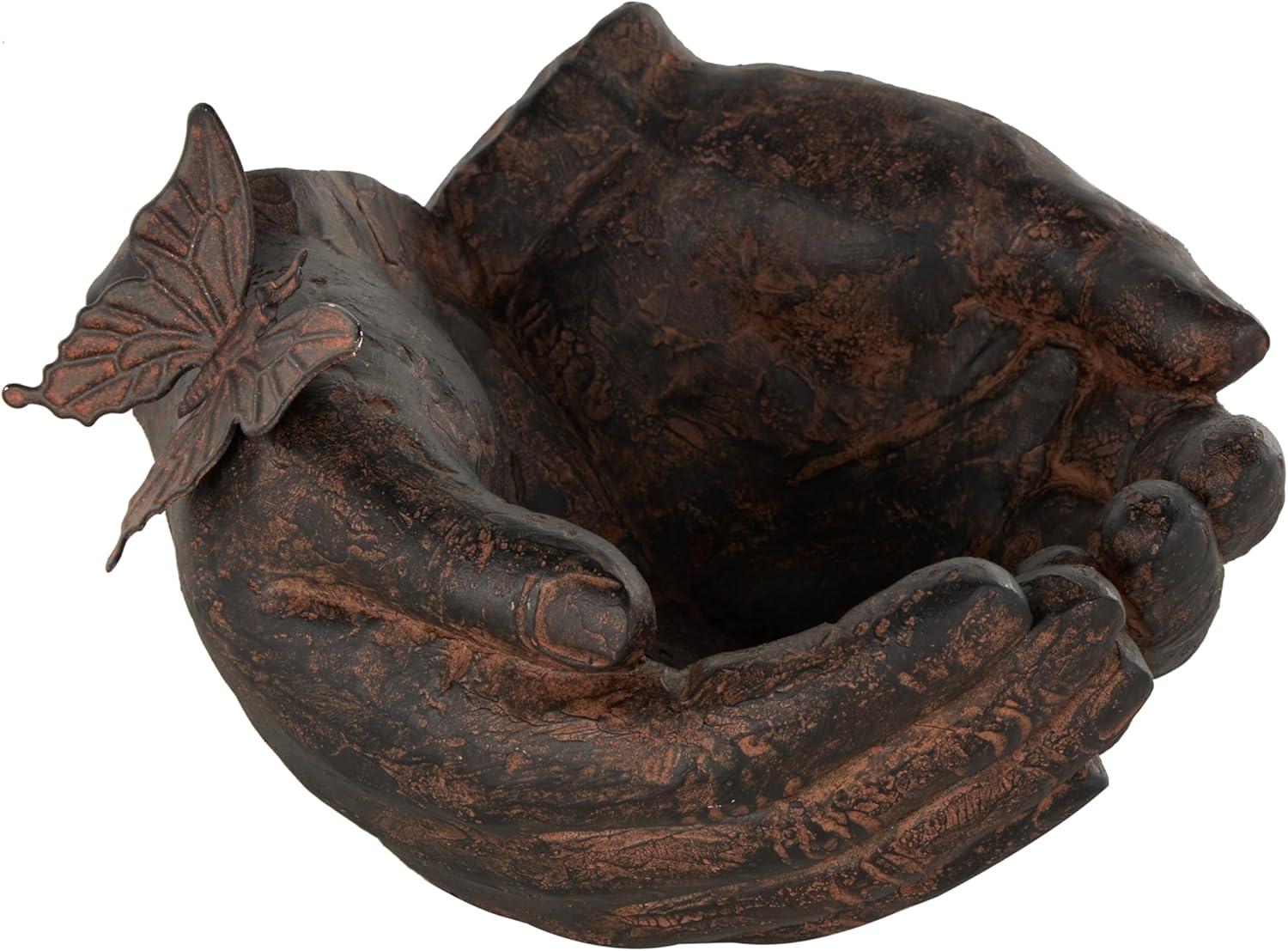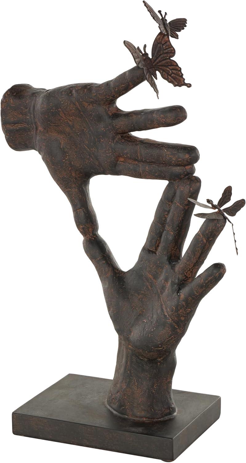 Deco 79 Polystone Hands Decorative Sculpture Open Home Decor Statue, Accent Figurine 15″ x 16″ x 7″, White(Dark Brown)