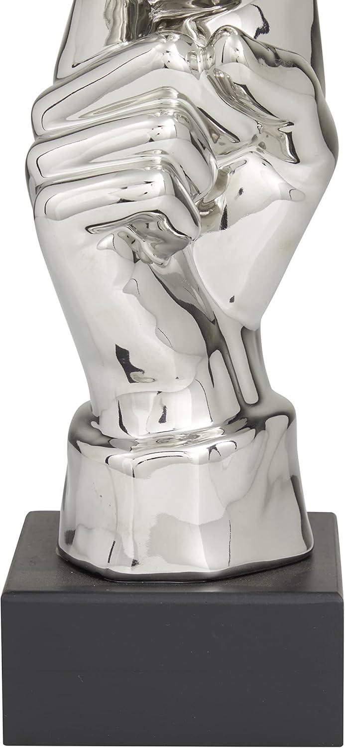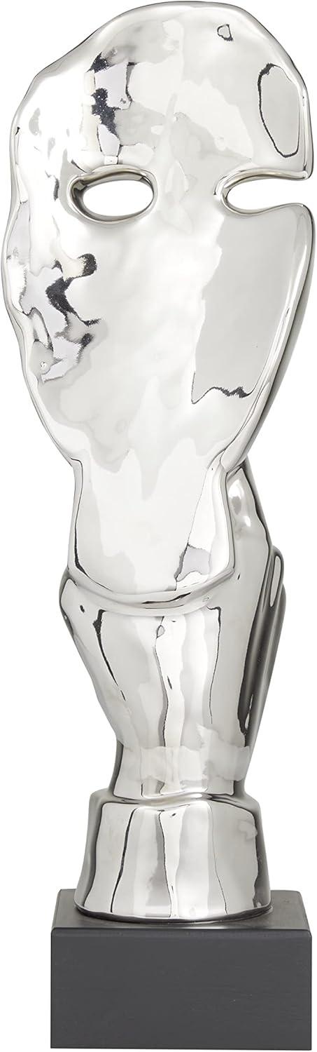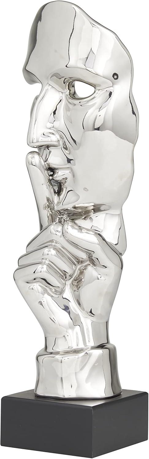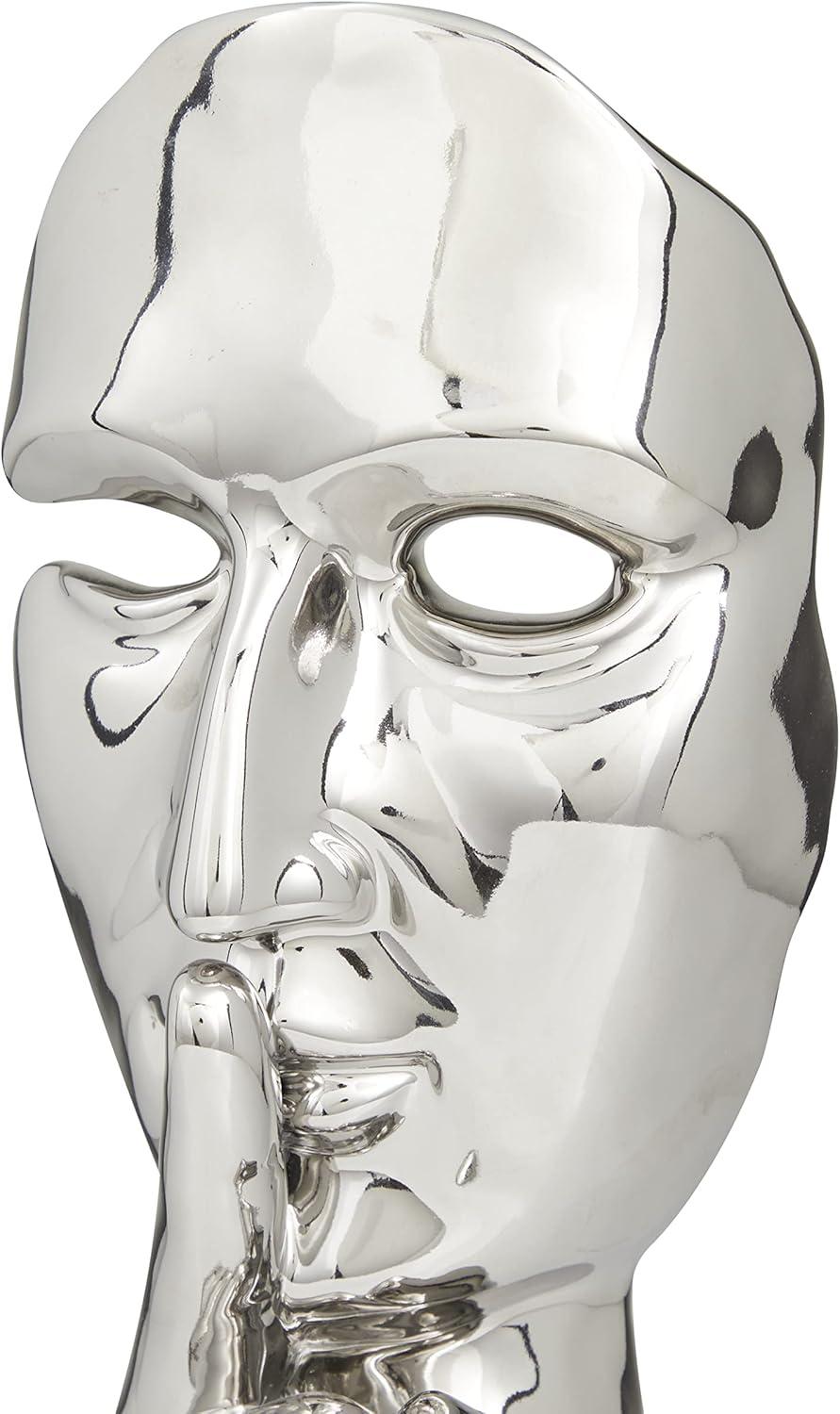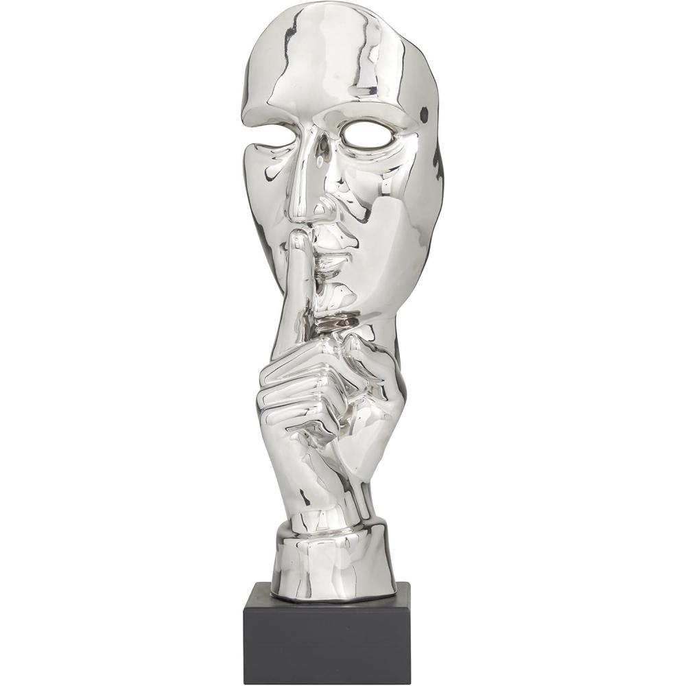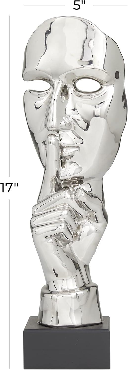 Deco 79 Polystone Mask Decorative Sculpture Quiet Gesture Home Decor Statue, Accent Figurine 6″ x 5″ x 17″, Gold(Silver)