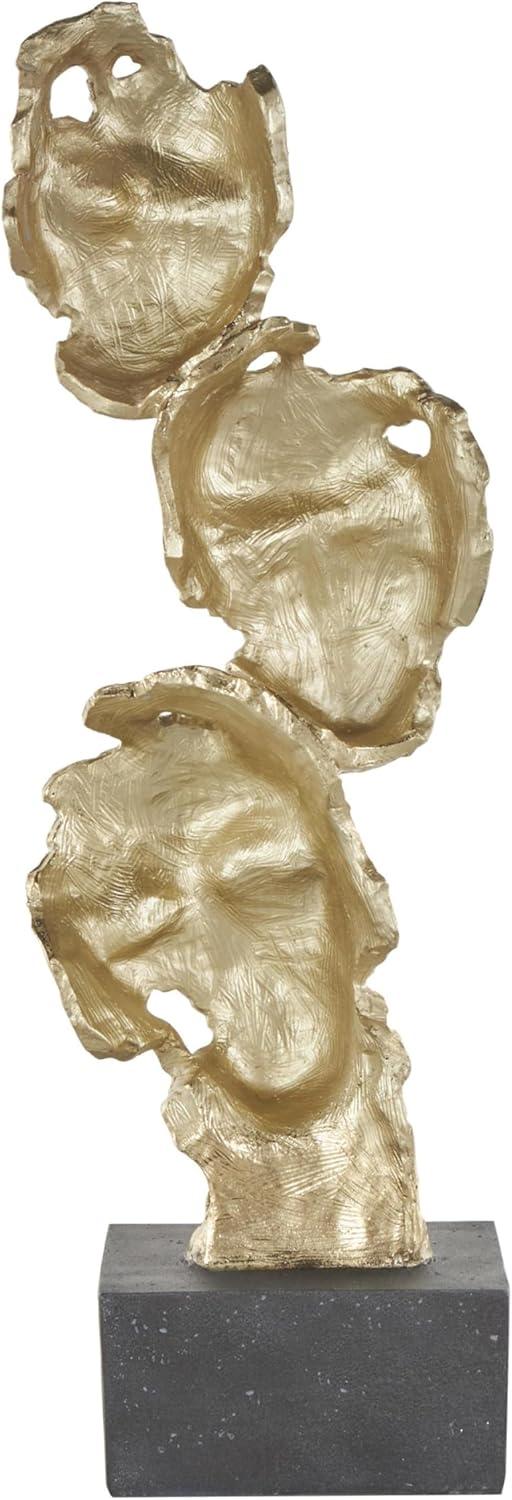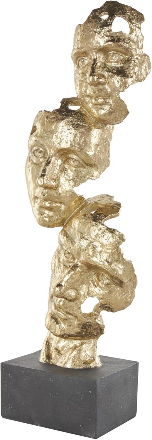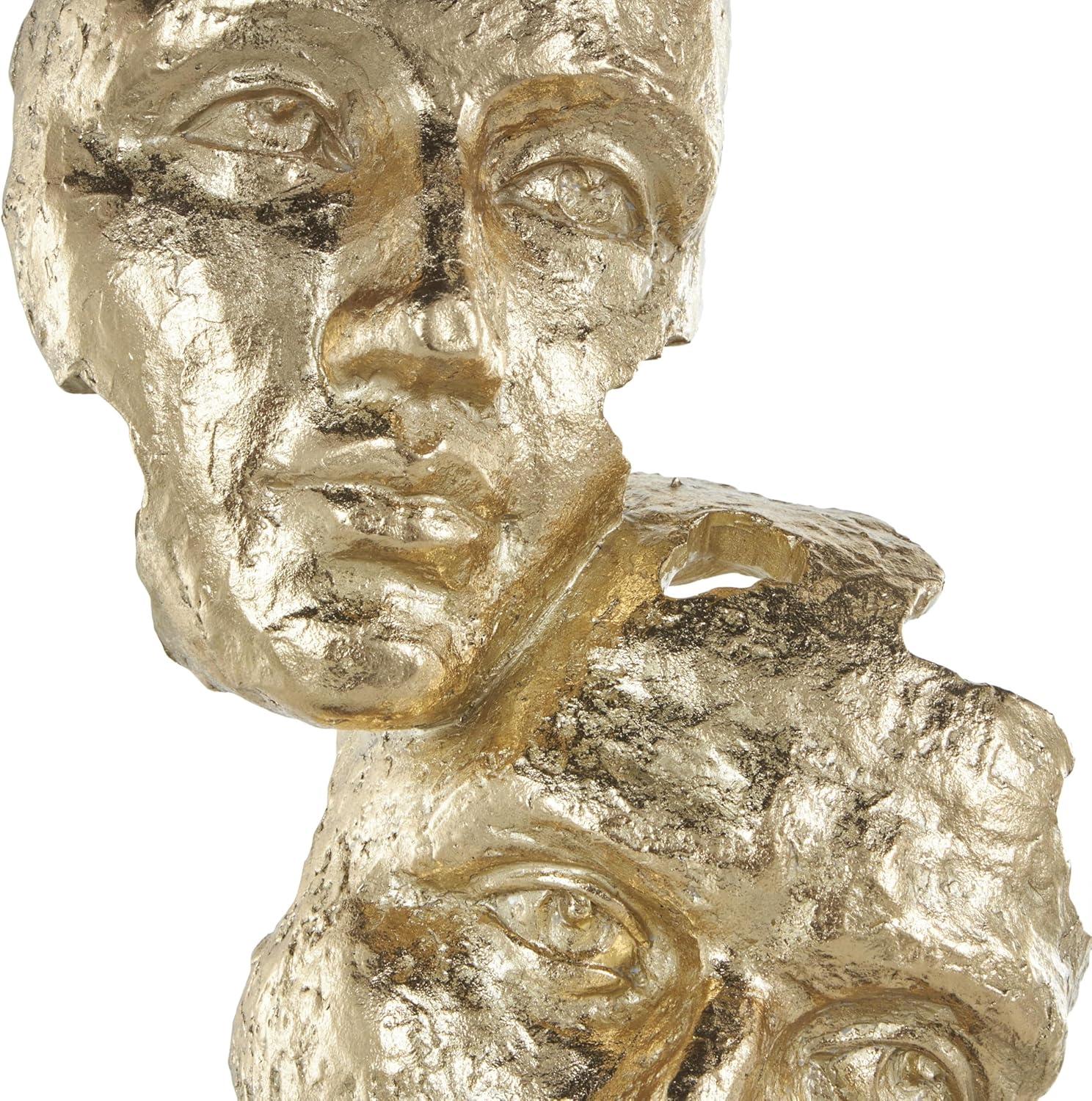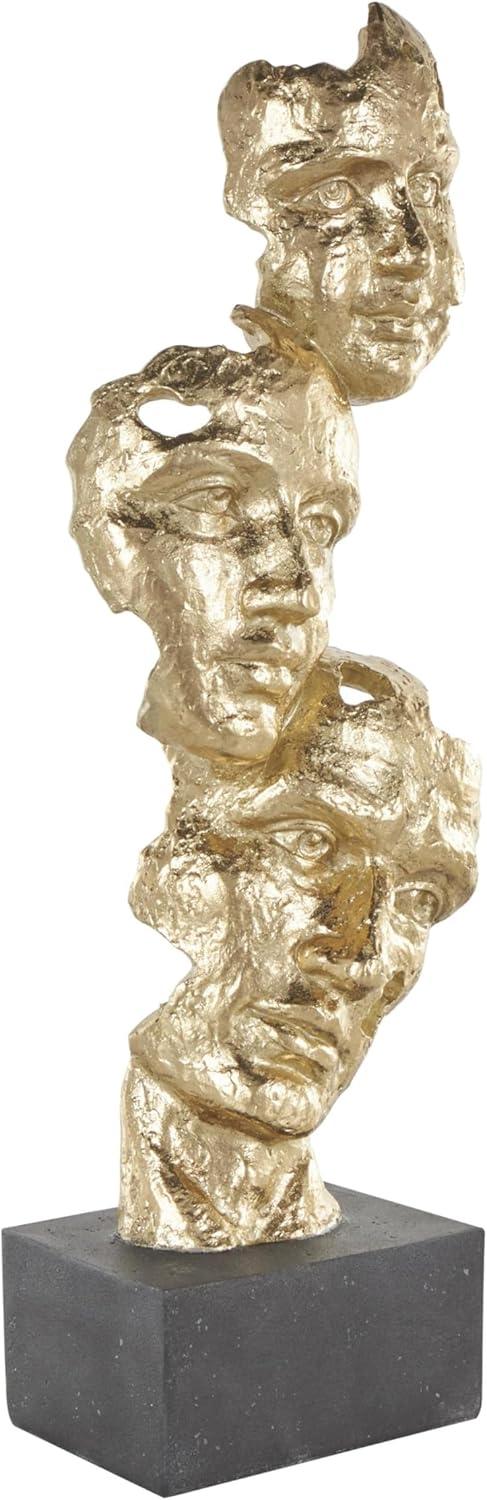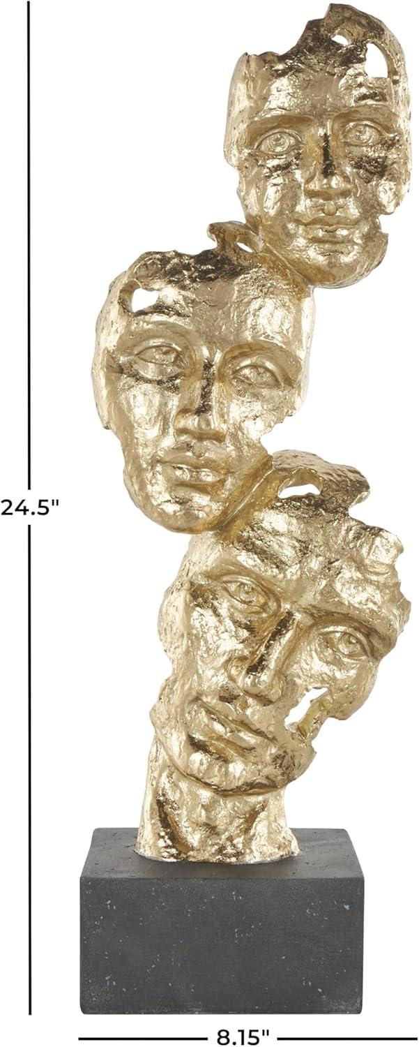GOLD AND BLACK TEXTURED FINISH: Mask stacked face cutout sculpture with black block base showcases a luxurious palette of rich gold and deep black, with a glossy finish that enhances its visual appeal