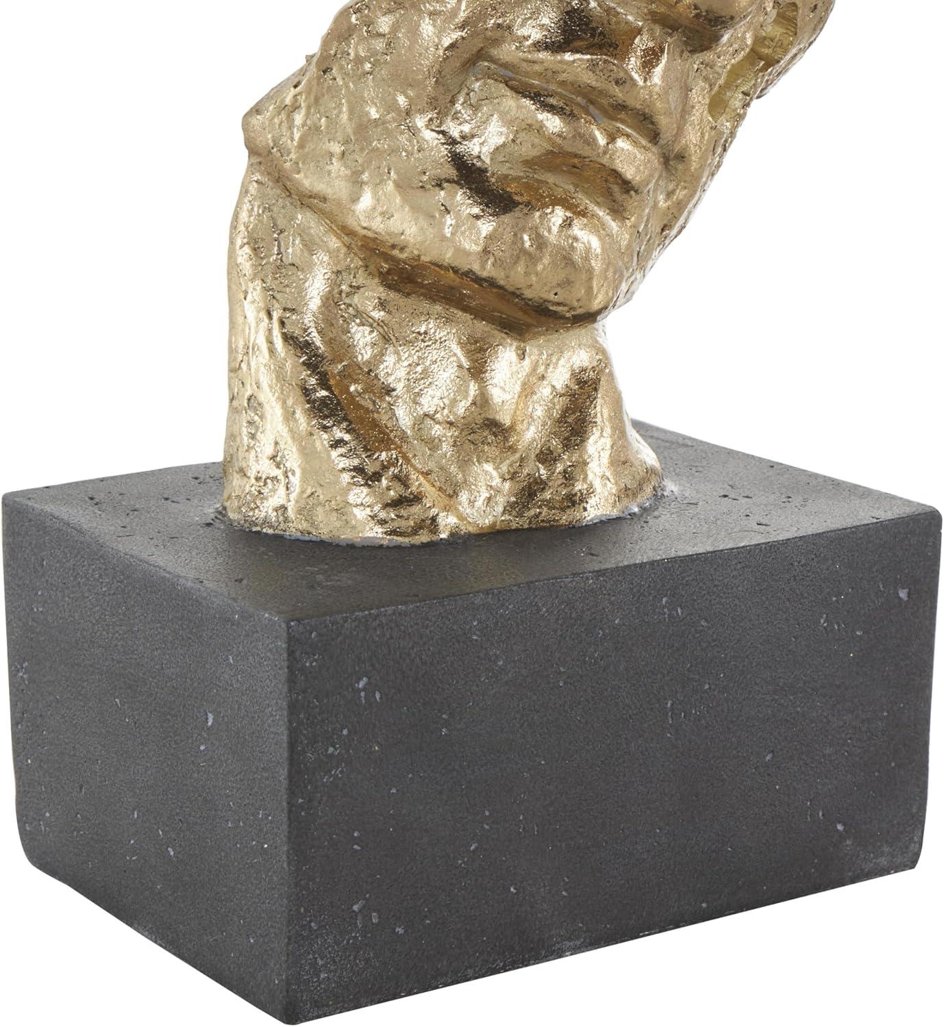Display this sculpture as a centerpiece for your coffee table or placed on a bookshelf or mantel to add an artistic touch to any room. Designed with felt or rubber stoppers at the base that prevent scratching furniture and table tops, as well as sliding around. This item ships in 1 carton. Please note that this item is for decorative use only. Polystone sculpture makes a great gift for any occasion. Suitable for indoor use only. This item ships fully assembled in one piece. This is a single gold colored statue. Traditional style.