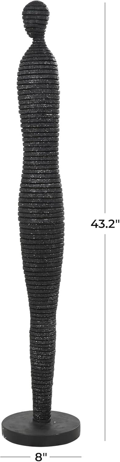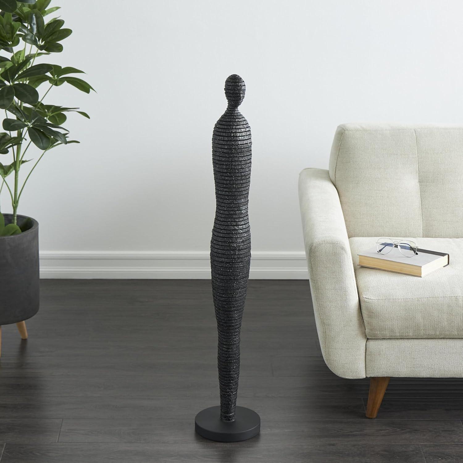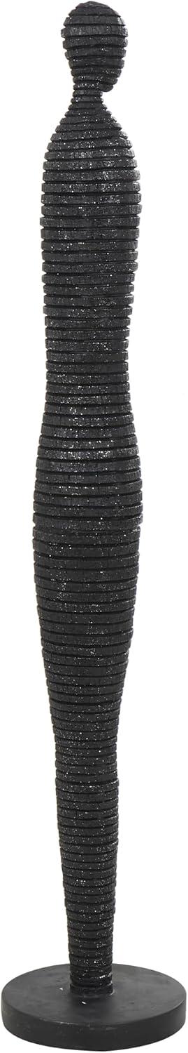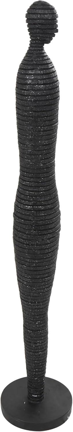 Deco 79 Polystone People Decorative Sculpture Tall Slim Figure Home Decor Statue with Ribbed Body and Glitter Accents, Accent Figurine 8" x 8" x 43", Black