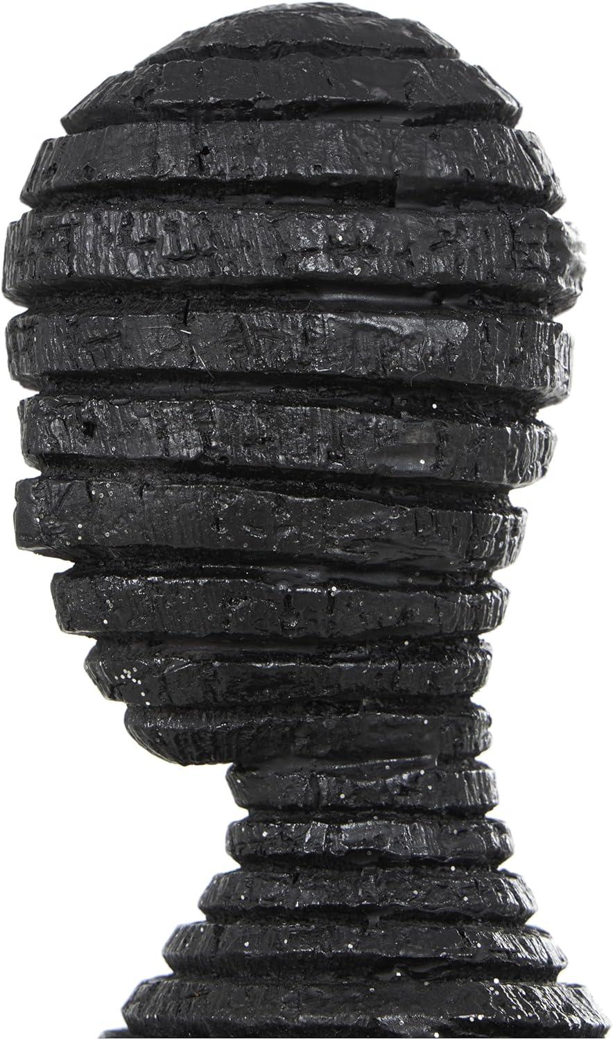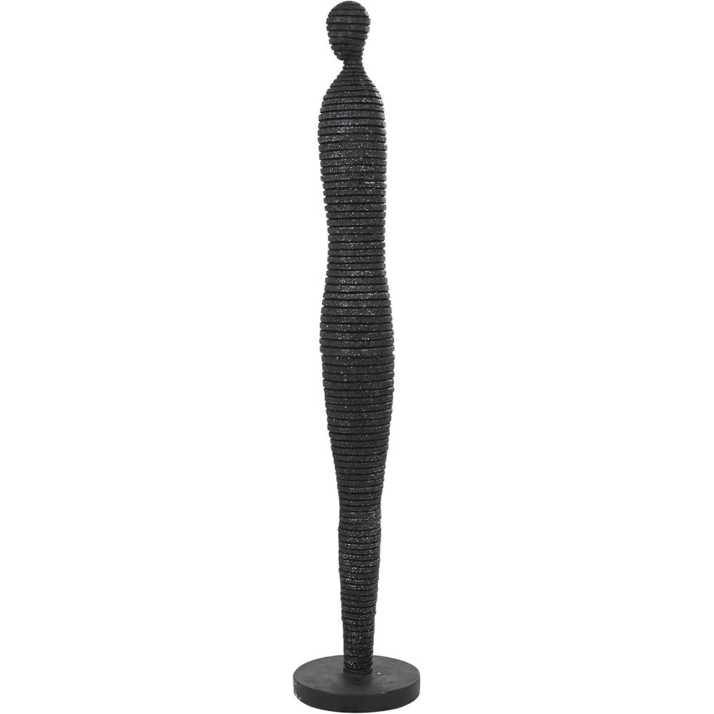 This contemporary accent statue is crafted from molded and carved resin and stone powder materials and finished with painted glitter accents. The textured black home decor figurine has an abstract and slender form, with a round base and ribbed body that adds texture and dimension to its design. Wipe clean with a dry cloth. Add height and a sculptural element to your decor by placing this people home decor statue in an empty corner in the entryway, living room, or hallway. Designed with felt or rubber stoppers at the base that prevent scratching furniture and table tops, as well as sliding around. This item ships in 1 carton. Please note that this item is for decorative use only. Suitable for indoor use only. This item ships fully assembled in one piece. This is a single black colored statue. Contemporary style.