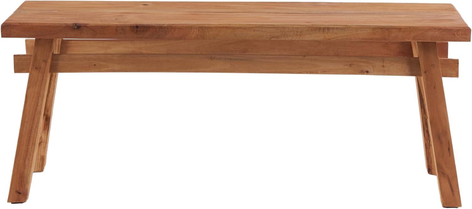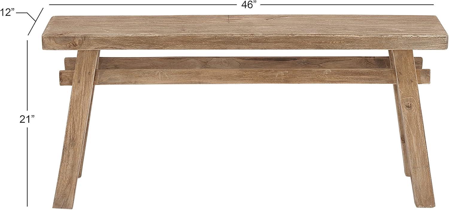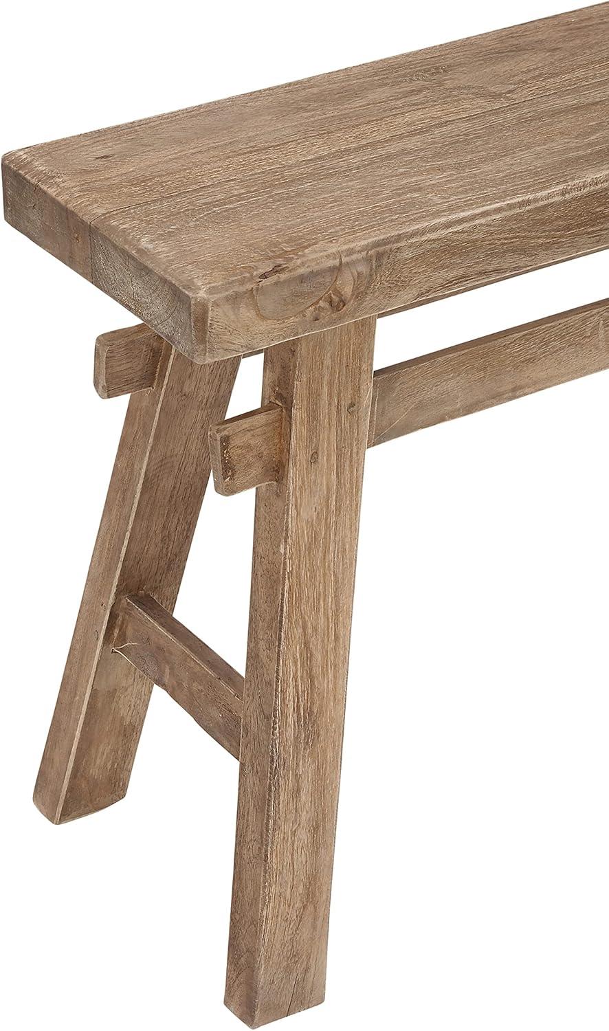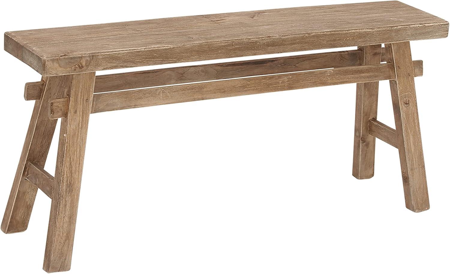 So take a load off and relax on this decorative bench. A small piece of furniture that make a big difference to give your home an instance refresh. Brown wooden bench seat has a simple design that can be amplified by cushion pillows, woven throw and natural seagrass basket underneath. This item ships in 1 carton. Due to the handmade nature of this item, no two will be alike, there will be slight differences in shape, size, and color. Suitable for indoor use only. This item ships fully assembled in one piece. Maximum weight limit is 400 lbs. Made in Indonesia. Can accommodate 2 people. This is a single brown colored entryway bench. Rustic style.