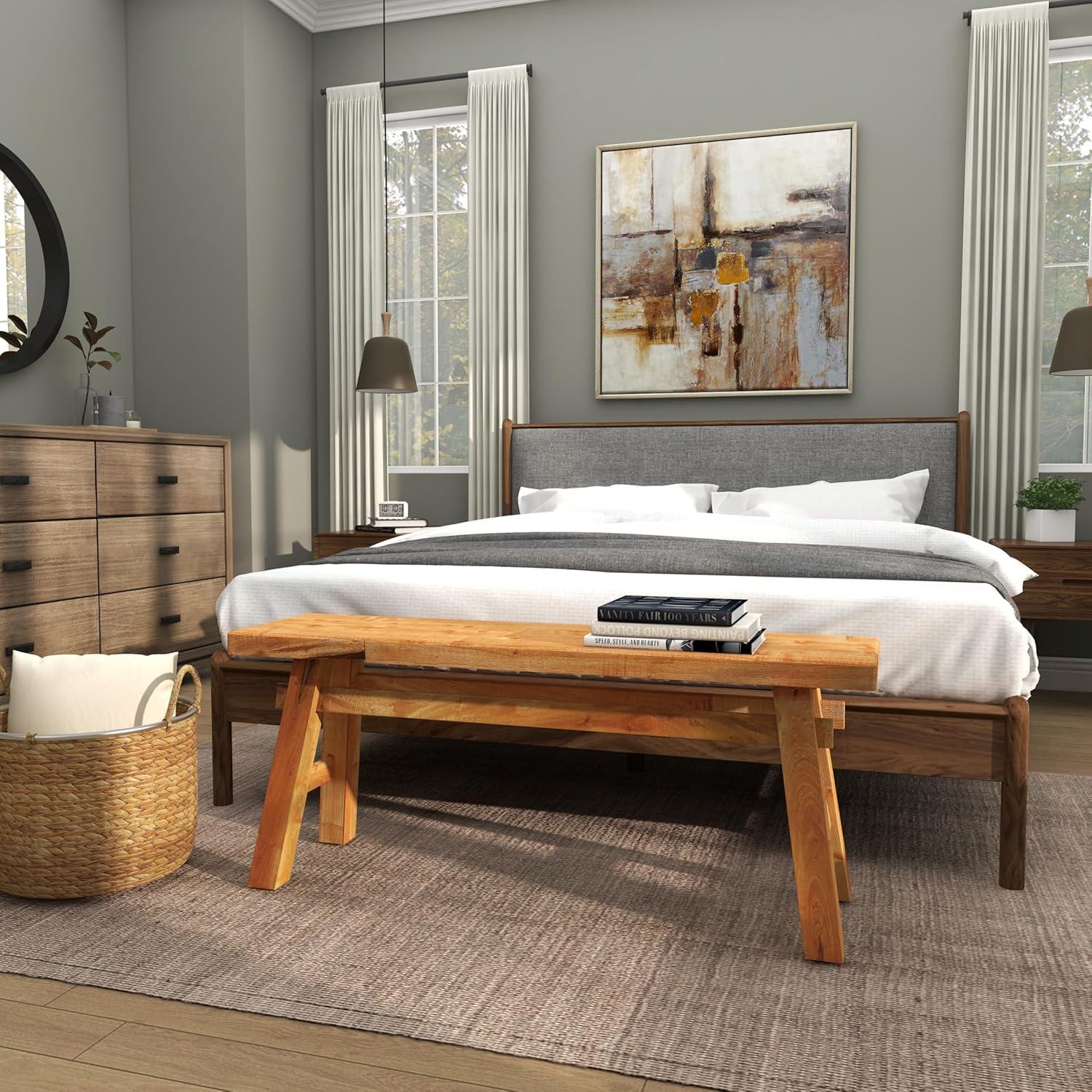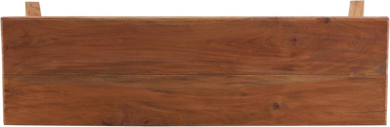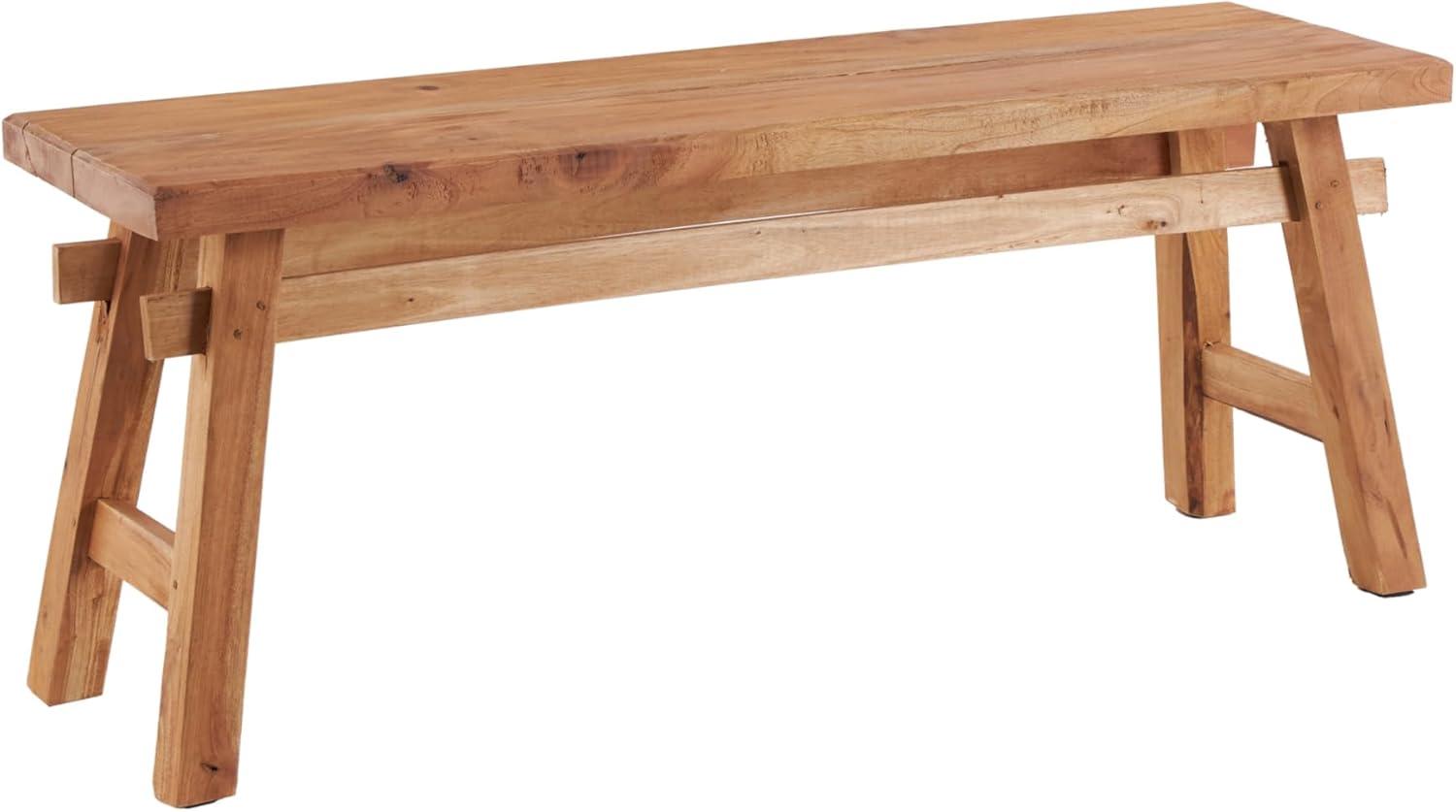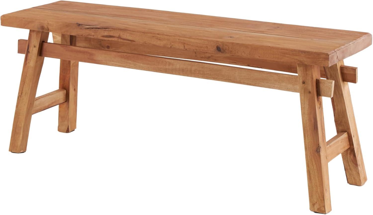 So take a load off and relax on this decorative bench. A small piece of furniture that make a big difference to give your home an instance refresh. Brown wooden bench seat has a simple design that can be amplified by cushion pillows, woven throw and natural seagrass basket underneath. This item ships in 1 carton. Due to the handmade nature of this item, no two will be alike, there will be slight differences in shape, size, and color. Suitable for indoor use only. This item ships fully assembled in one piece. Maximum weight limit is 400 lbs. Made in Indonesia. Can accommodate 2 people. This is a single brown colored entryway bench. Rustic style.