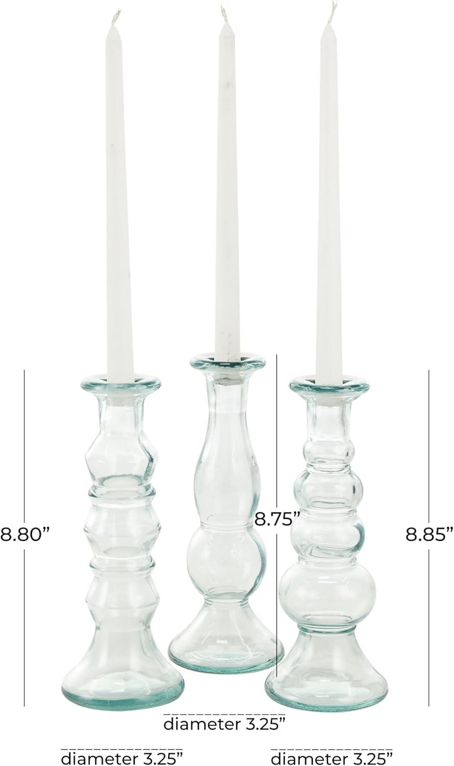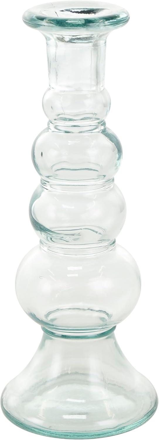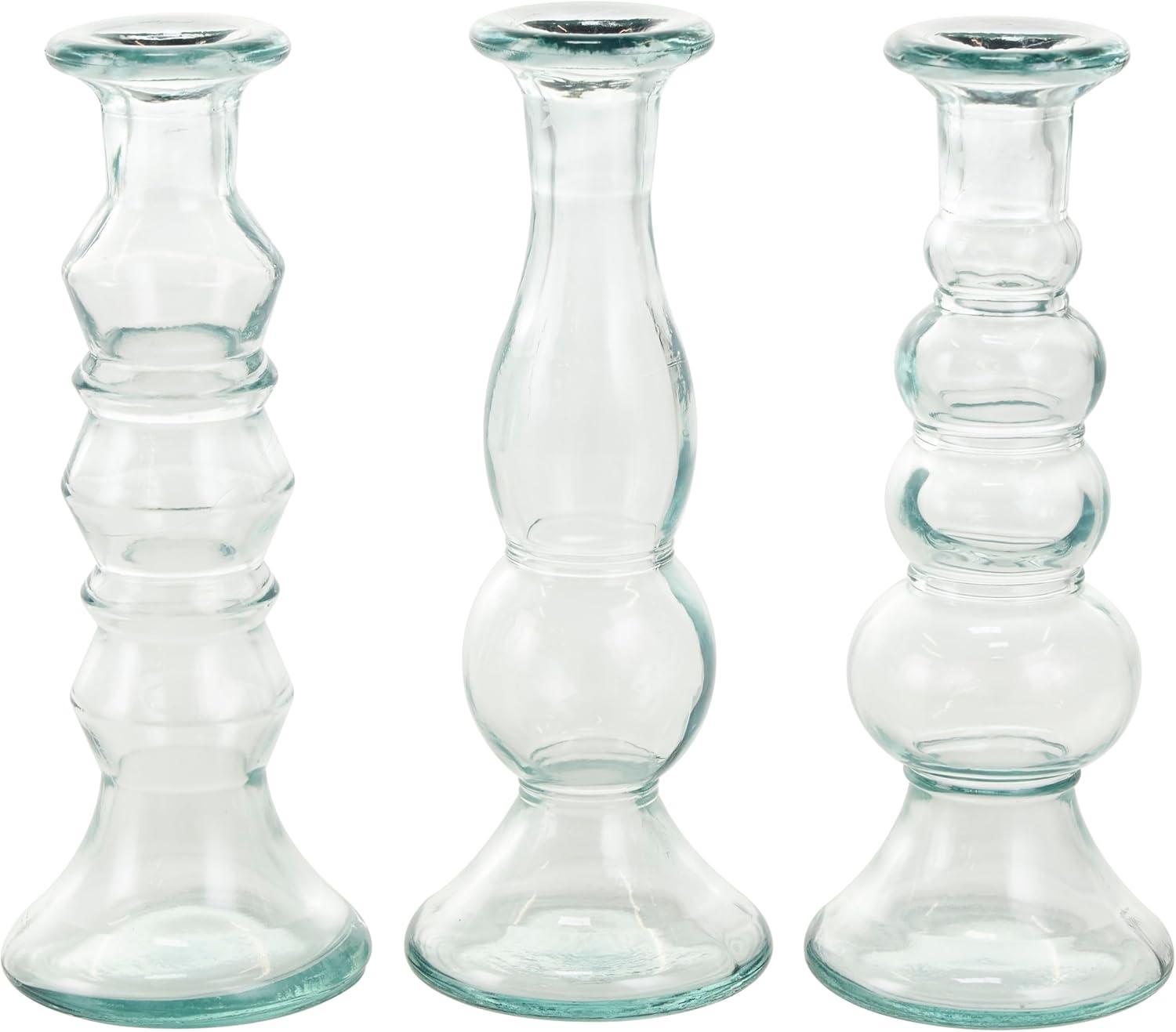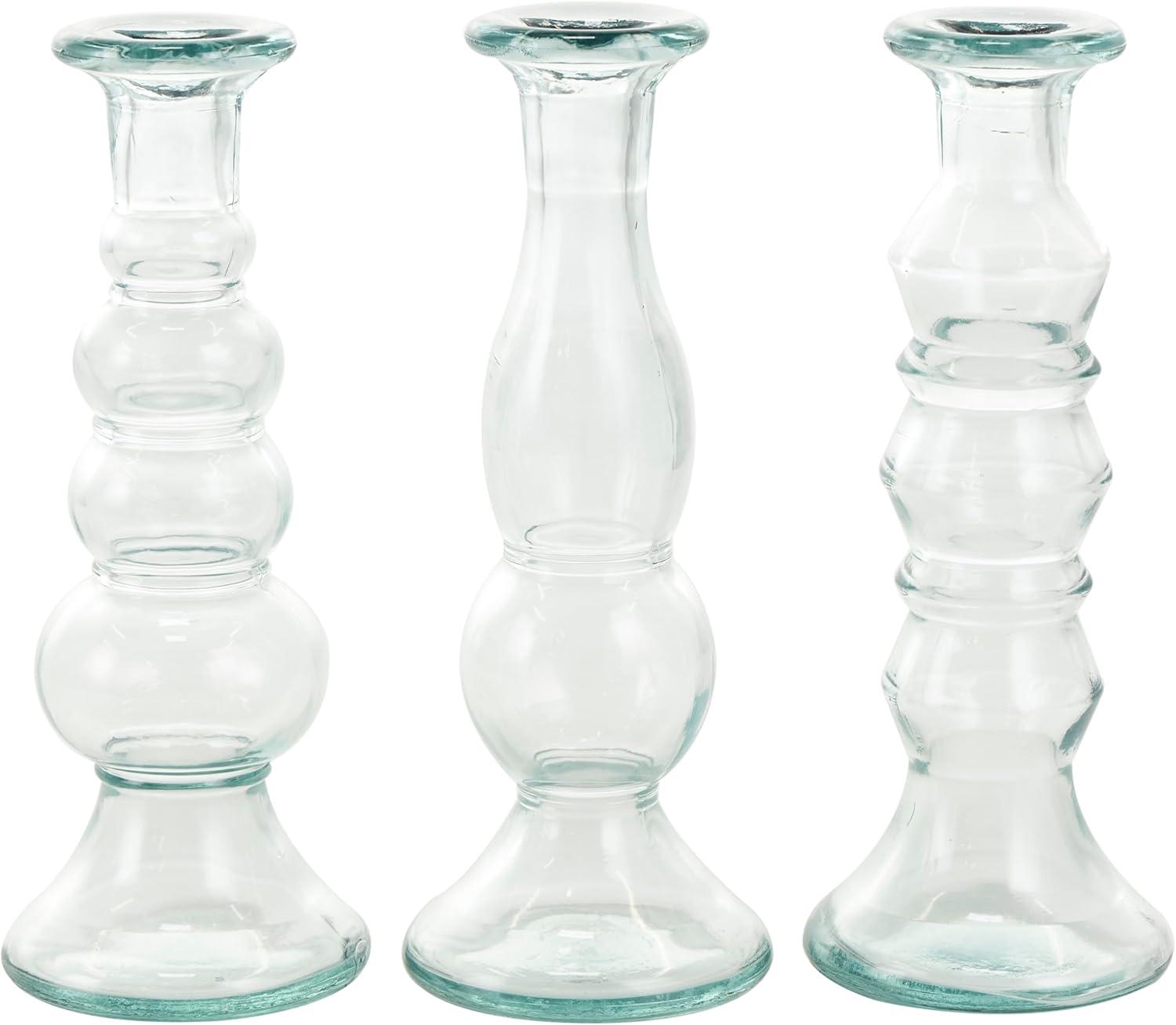 To use the item, simply place the candles in each holder and light them for a warm and inviting atmosphere. Designed with felt or rubber stoppers at the base that prevent scratching furniture and table tops, as well as sliding around. Can hold 3 taper candles, not included. This item ships in 1 carton. Recycled glass candle holder makes a great gift for any occasion. Suitable for indoor use only. This item ships fully assembled in one piece. Made in Spain. This clear colored candle stand comes as a set of 3. Contemporary style.