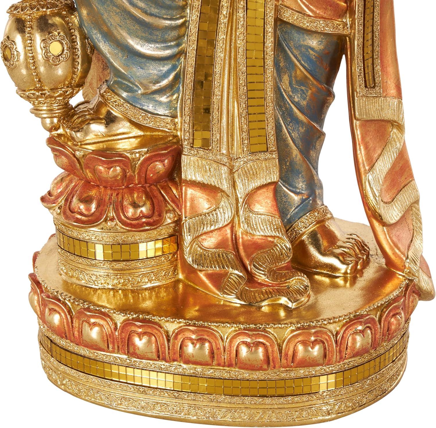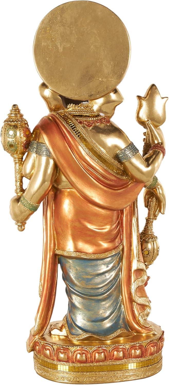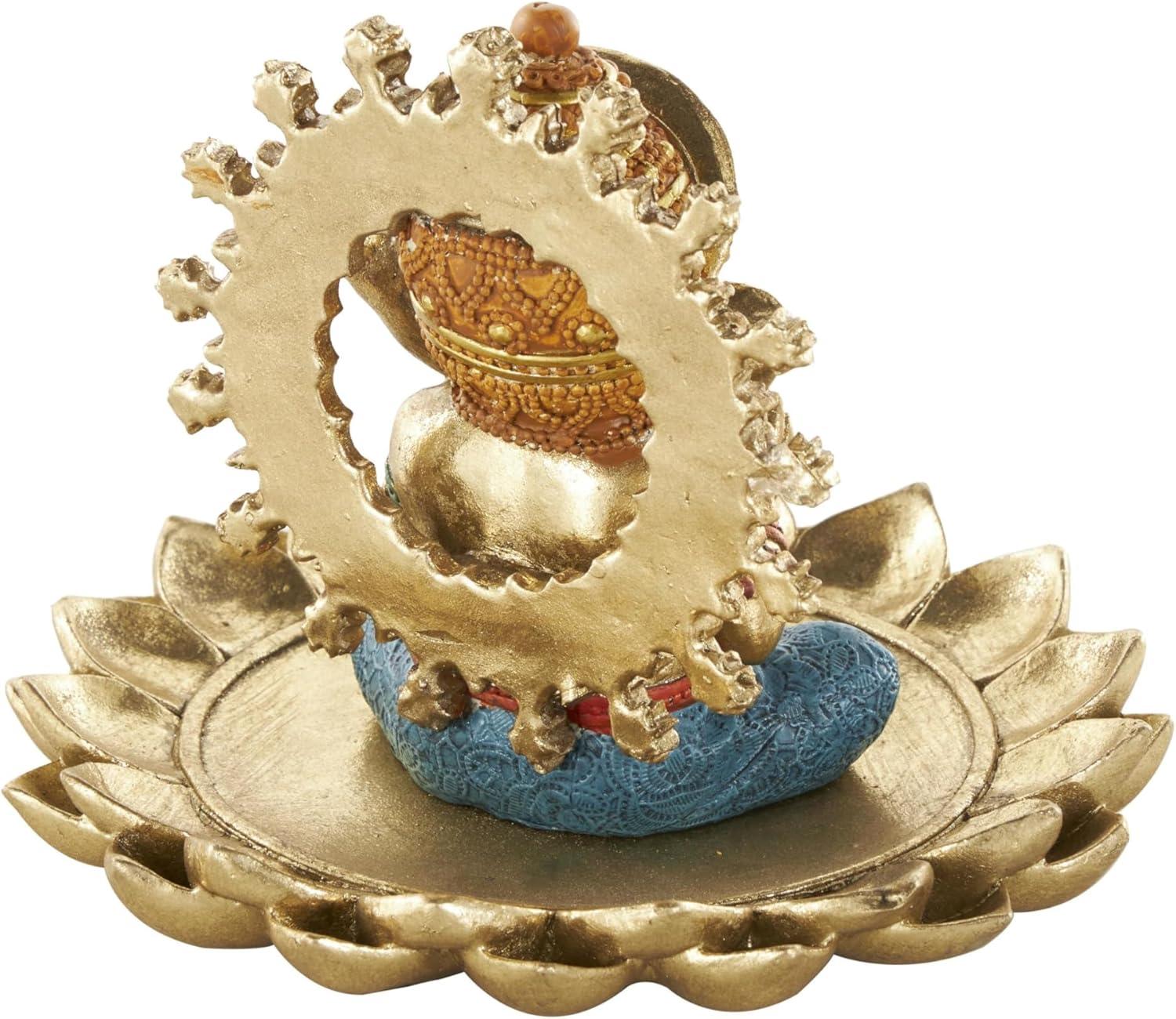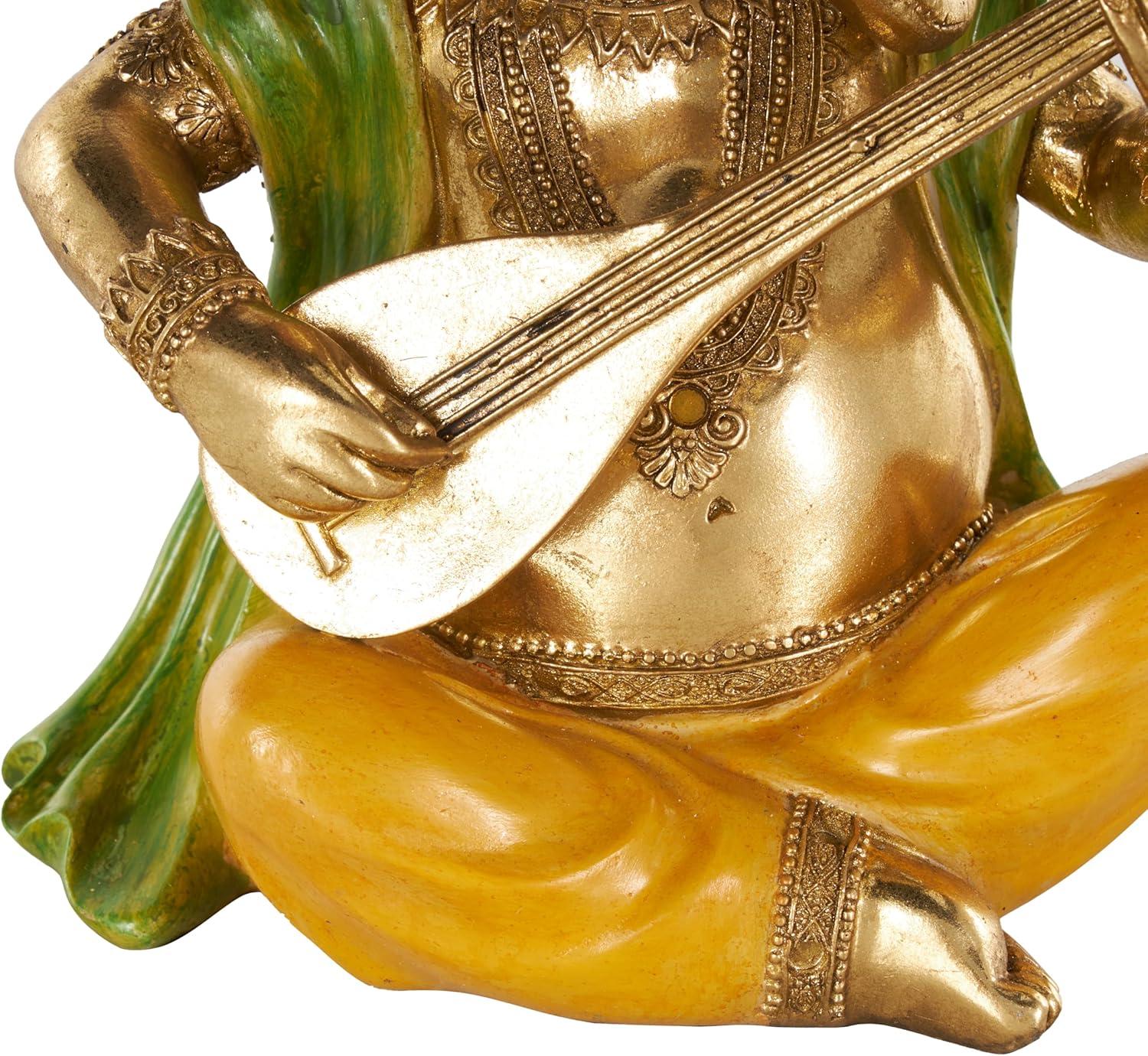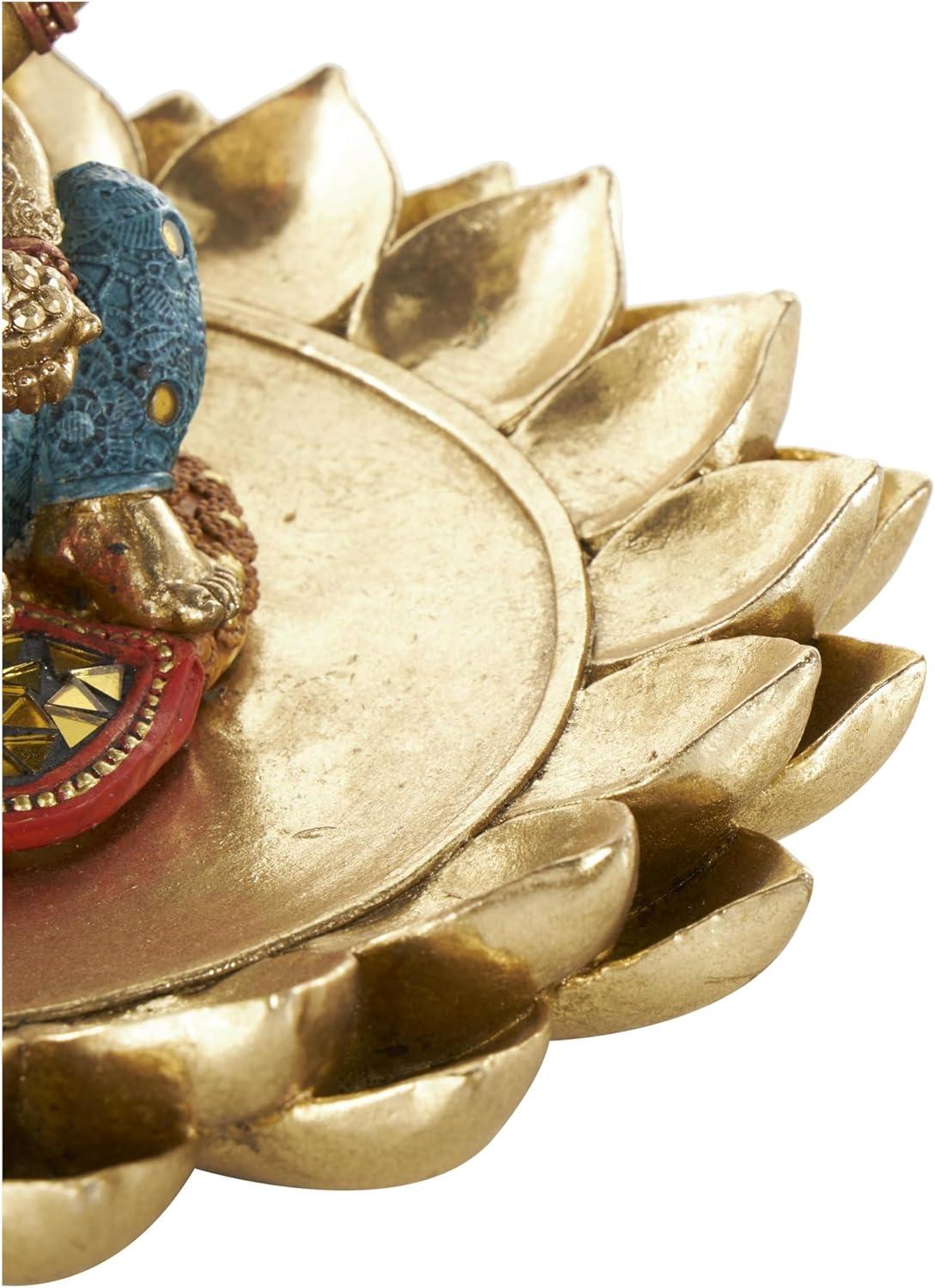 This traditional accent statue is expertly crafted by molding premium resin into the intricate form of Ganesh, then finished with a satin gold coating to enhance its traditional beauty. Satin gold home decor figurine is shaped like a Ganesh with scroll patterns that captures the essence of traditional design. Wipe clean with a dry cloth. This Ganesh home decor statue is perfect for adding a touch of tradition to your living room or bedroom. Designed with felt or rubber stoppers at the base that prevent scratching furniture and table tops, as well as sliding around. This item ships in 1 carton. Please note that this item is for decorative use only. Resin sculpture makes a great gift for any occasion. Suitable for indoor use only. This item ships fully assembled in one piece. This is a single gold colored statue. Traditional style.