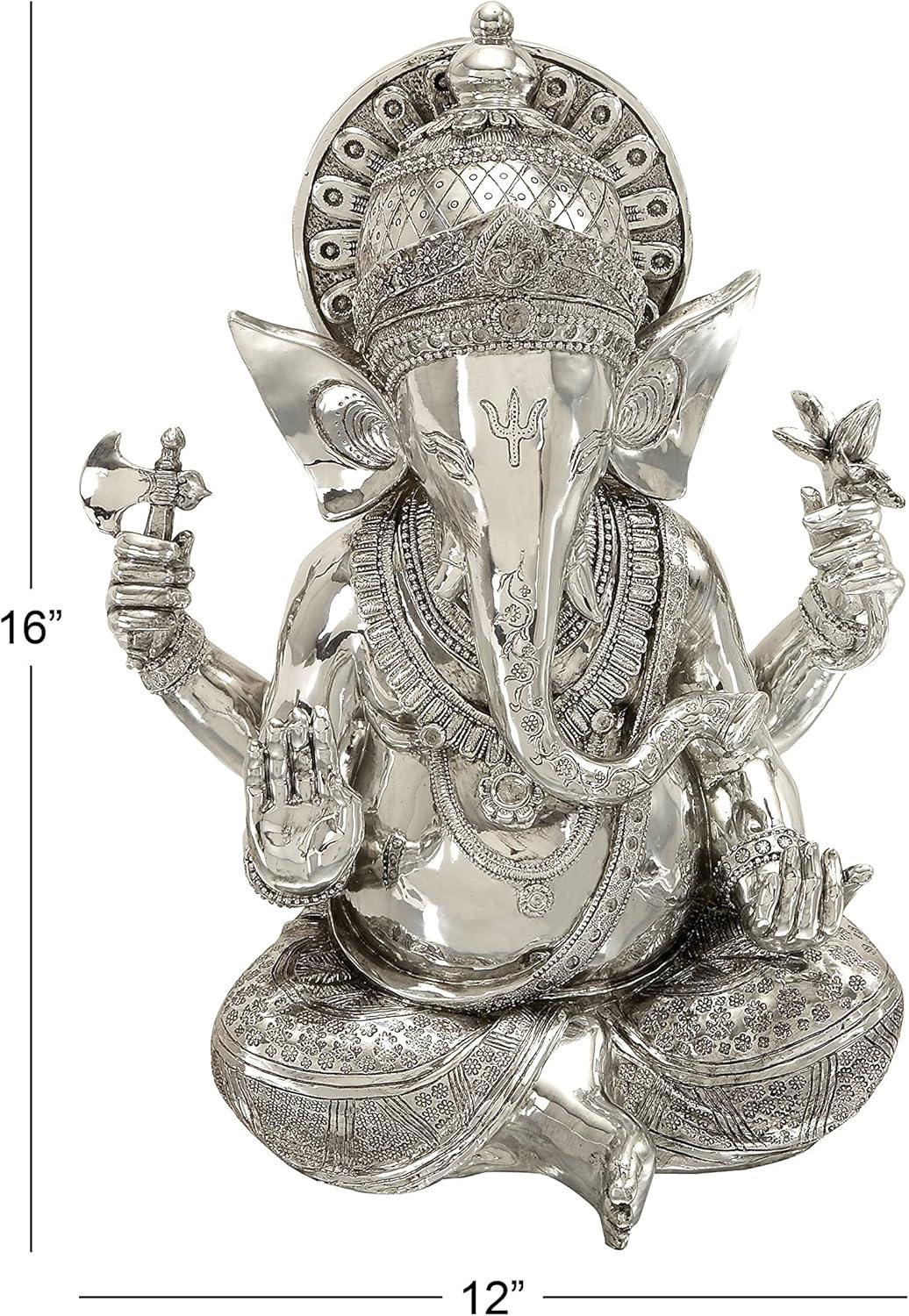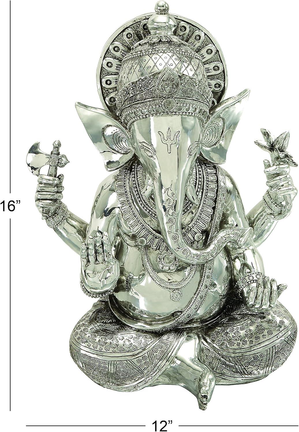 Deco 79 Resin Ganesh Decorative Sculpture Musician Home Decor Statue with Green, Yellow, and Teal Accents, Accent Figurine 9″ x 6″ x 11″, Gold(Silver)