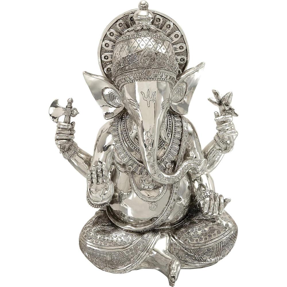 This traditional accent statue is expertly crafted by molding premium resin into the intricate form of Ganesh, then finished with a satin gold coating to enhance its traditional beauty. Satin gold home decor figurine is shaped like a Ganesh with scroll patterns that captures the essence of traditional design. Wipe clean with a dry cloth. This Ganesh home decor statue is perfect for adding a touch of tradition to your living room or bedroom. Designed with felt or rubber stoppers at the base that prevent scratching furniture and table tops, as well as sliding around. This item ships in 1 carton. Please note that this item is for decorative use only. Resin sculpture makes a great gift for any occasion. Suitable for indoor use only. This item ships fully assembled in one piece. This is a single gold colored statue. Traditional style.
