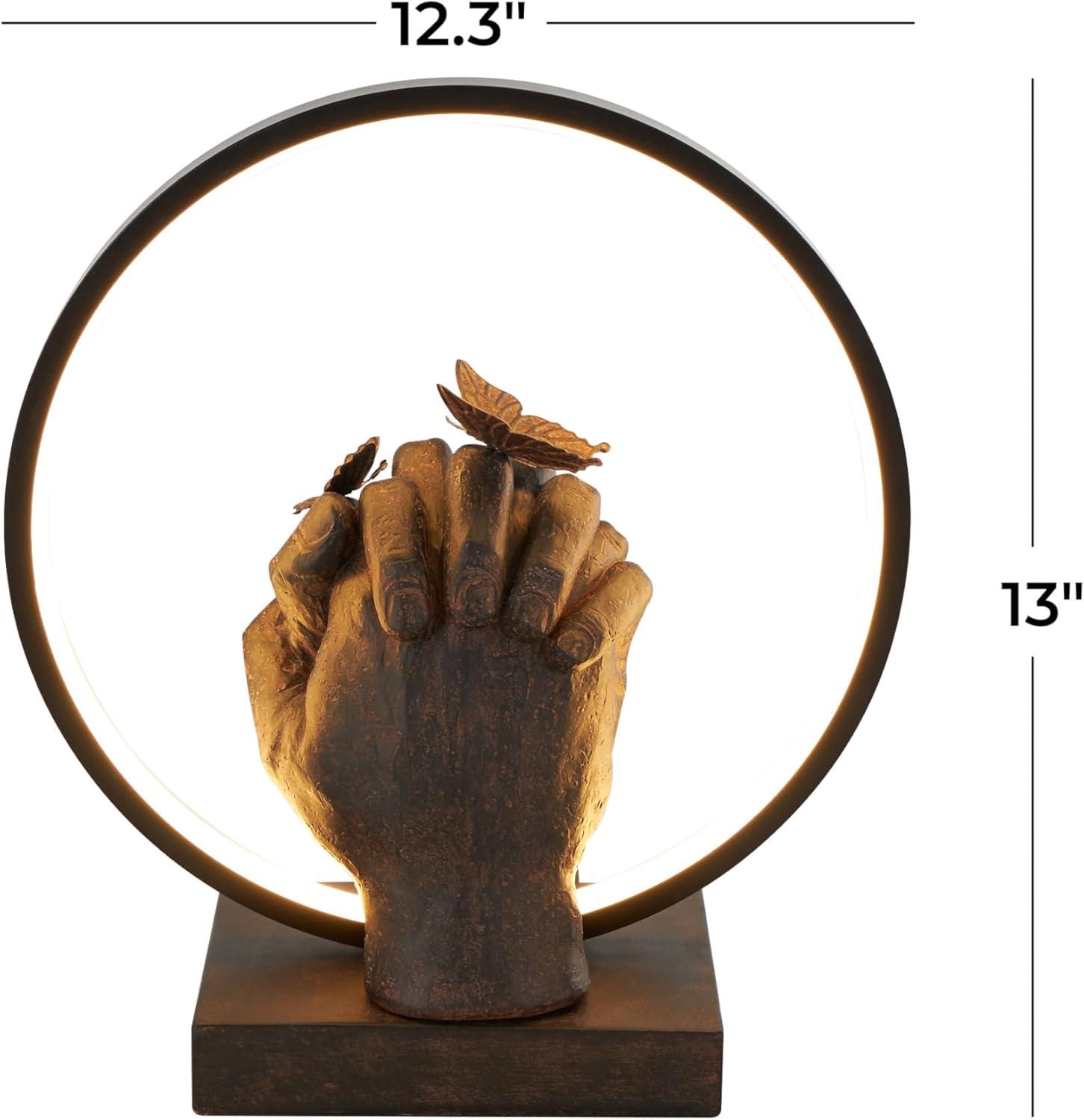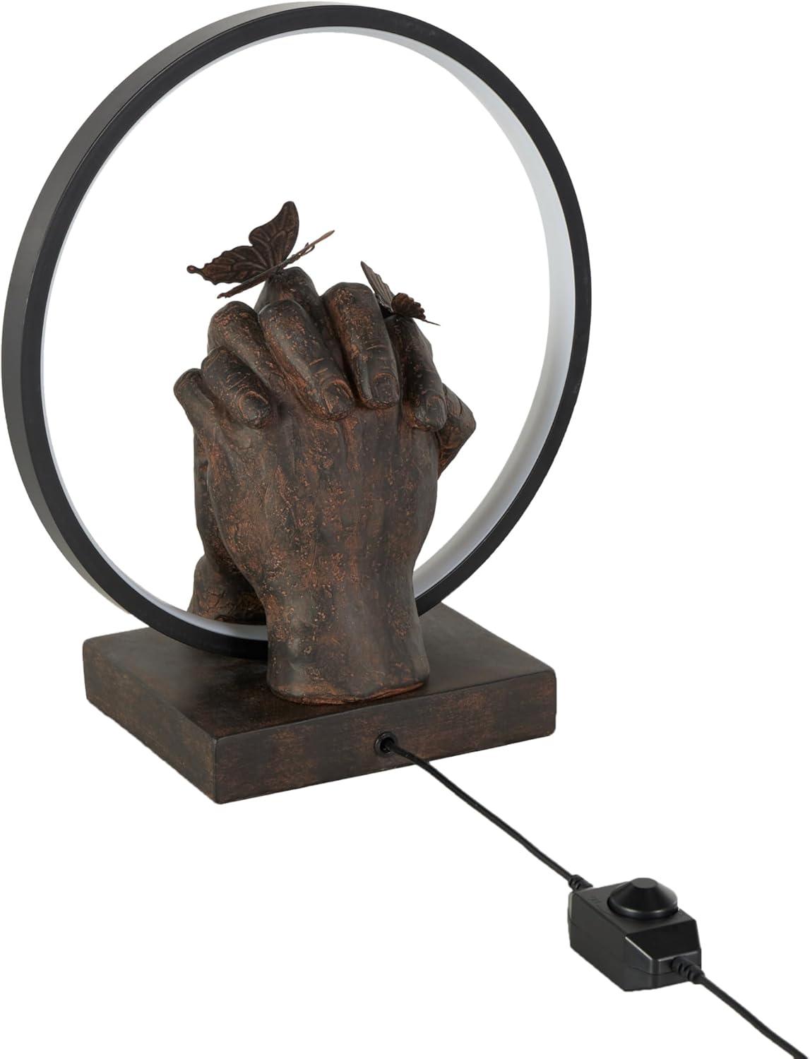 HANDS ROUND LIVING ROOM TABLE LAMP: This resin accent lamp includes intricate butterfly accents and hands holding figures on the base which makes it stand out