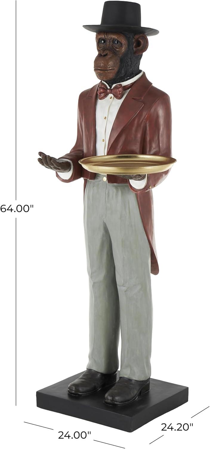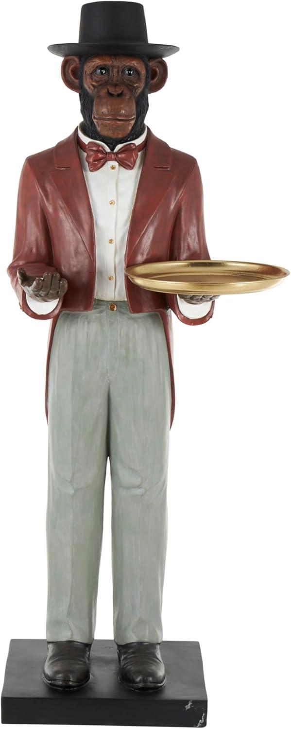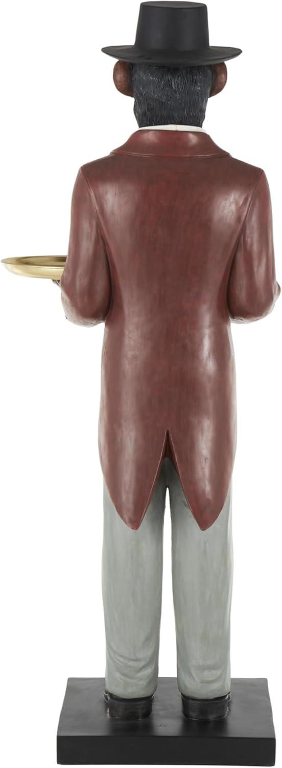 Deco 79 Resin Monkey Decorative Sculpture Tall Waiter Home Decor Statue with Gold Accent and Square Base, Accent Figurine 24" x 24" x 64", Red(Red)