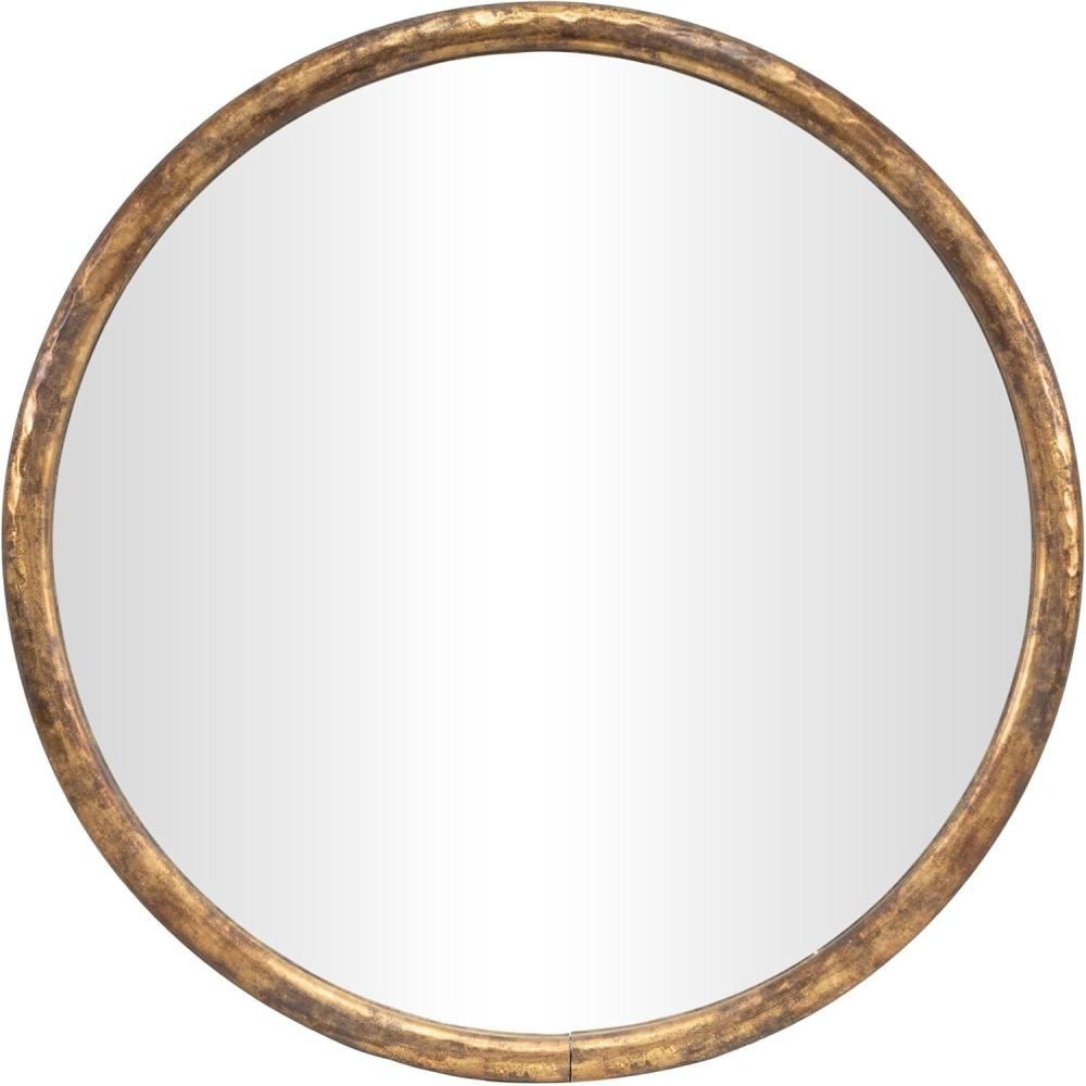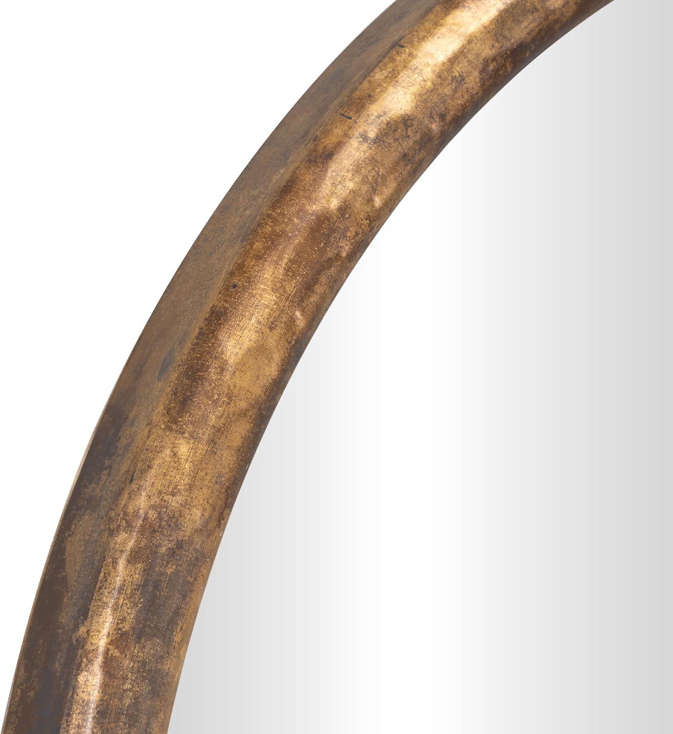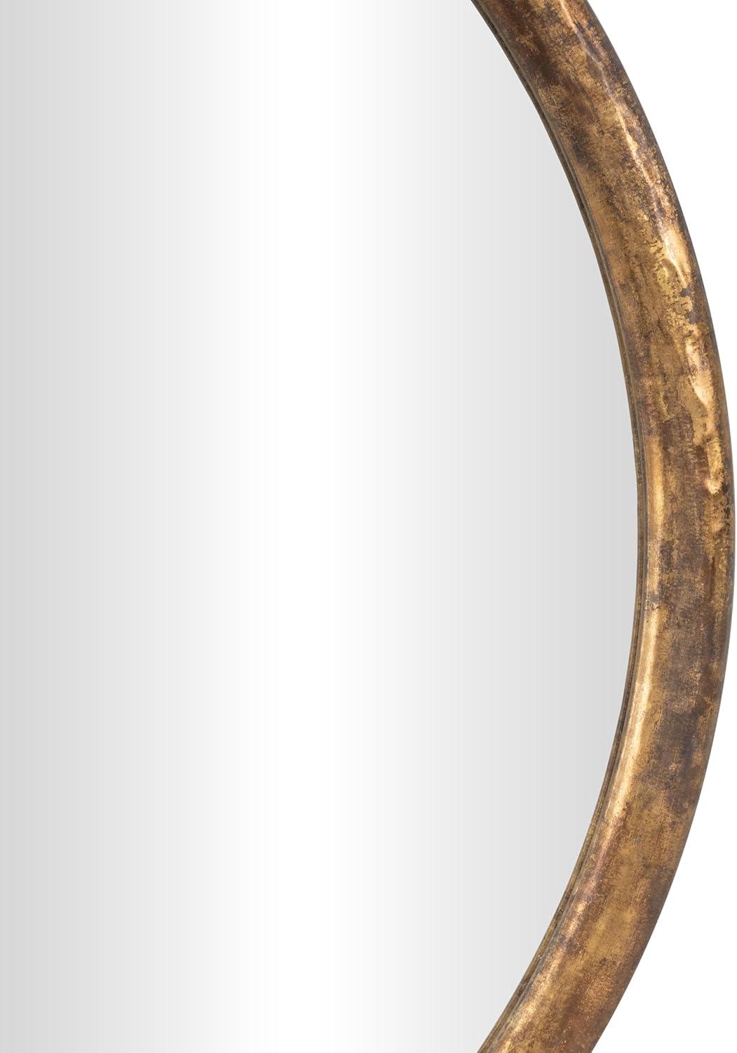 GOLD AND MIRROR MIRROR FOR WALL: This round hanging wall mirror boasts a weathered gold finish that adds a touch of elegance to any room