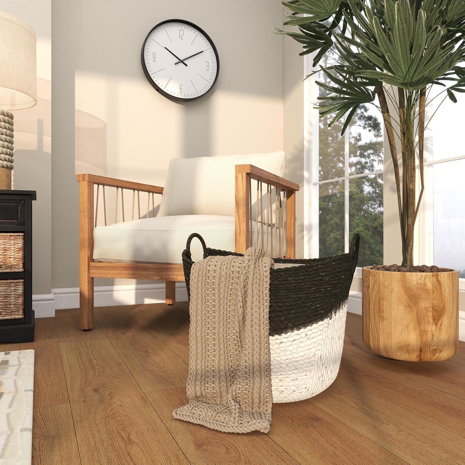 FEATURES RECTANGLE STORAGE BASKET: Short oval storage basket set showcases a wide round basket designed with hand-braided body patterns and easy-carry inner ring handles