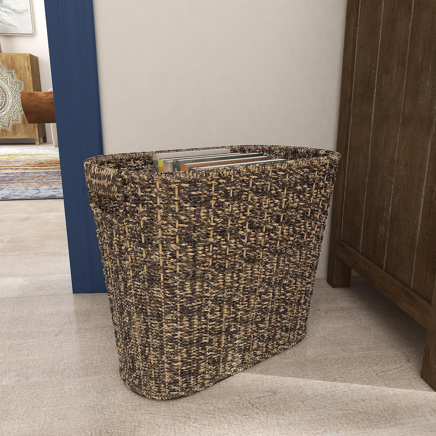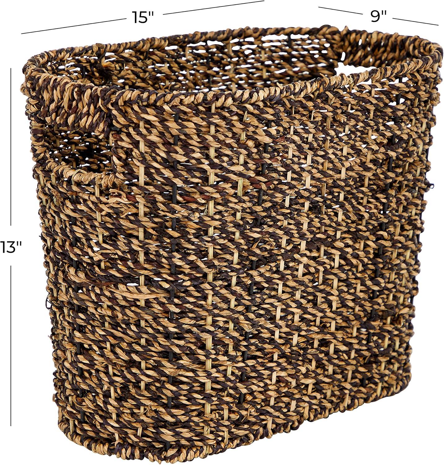 Deco 79 Seagrass Handmade Woven Single Slot Magazine Holder with Light Brown Accents, 15" x 9" x 13", Brown(White)